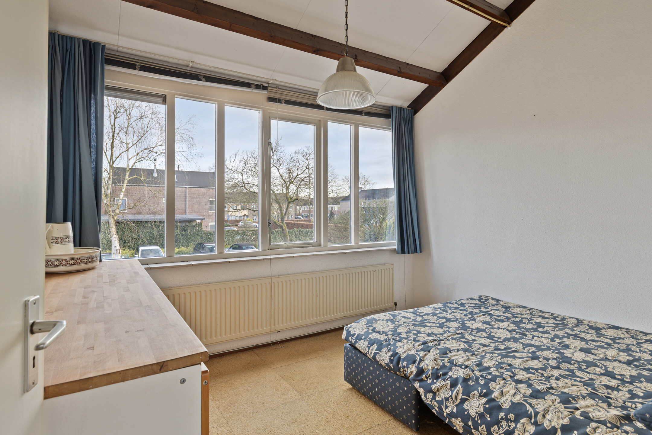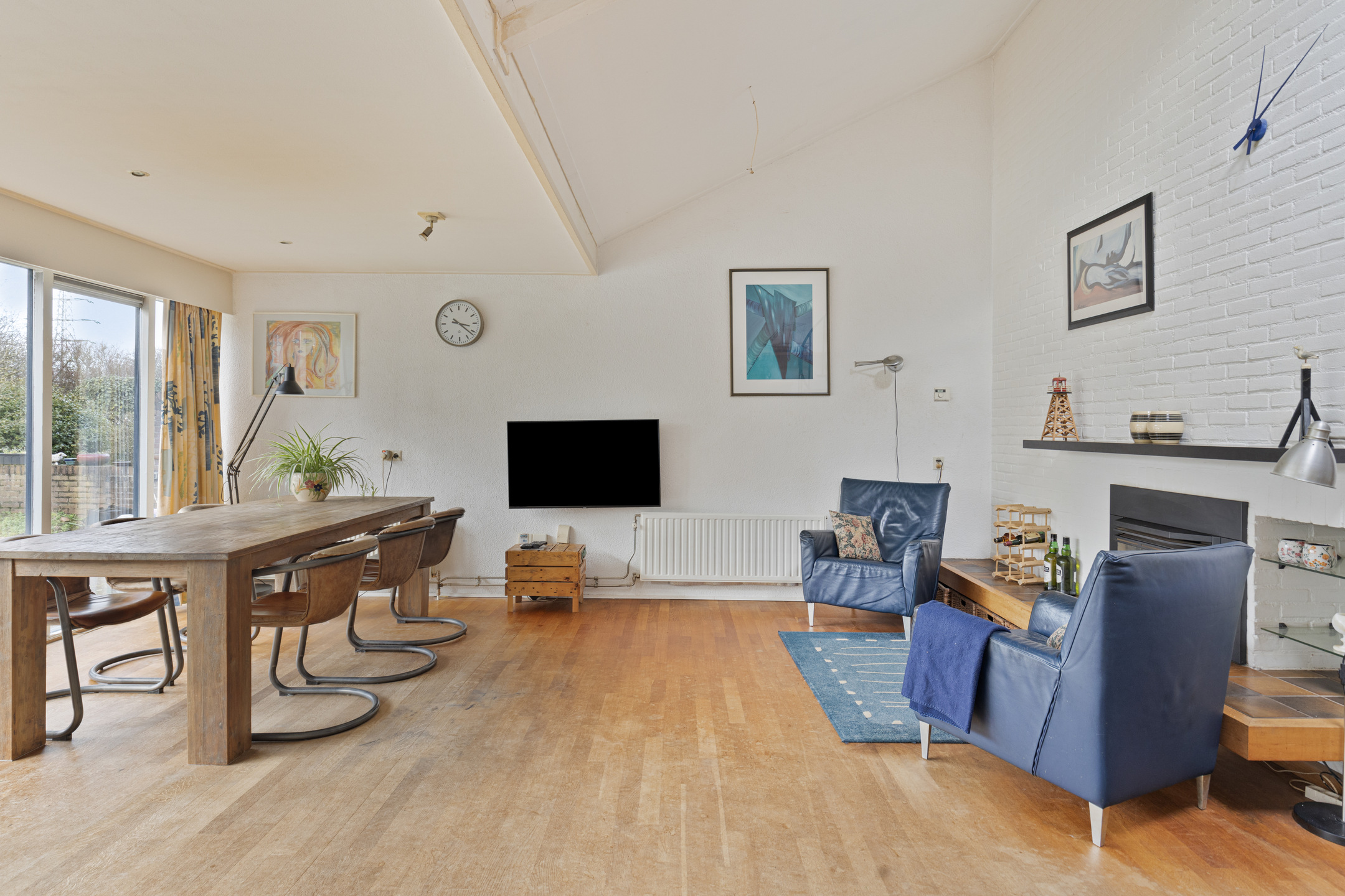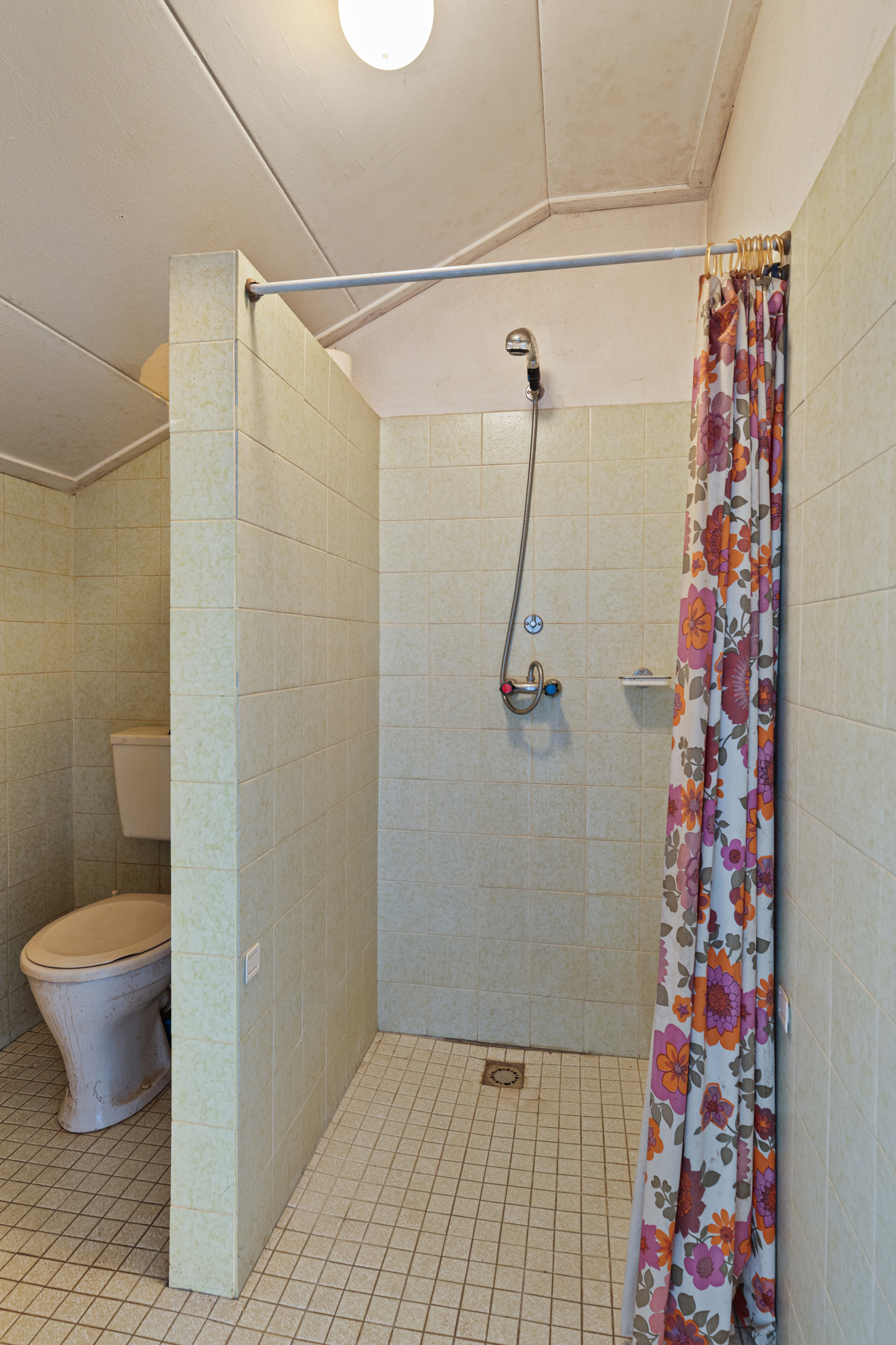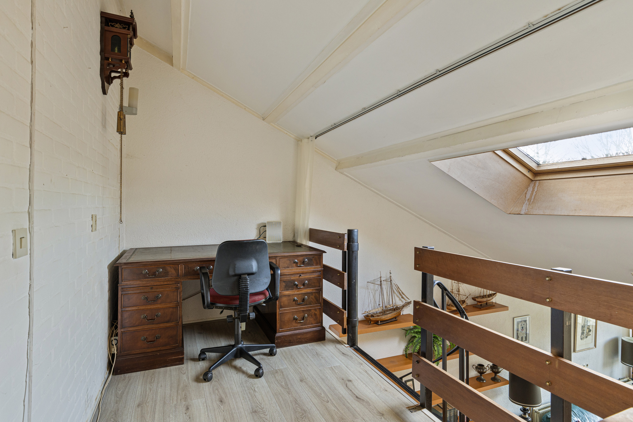 1e Verdieping: ruime (open) overloop / vide met zicht op de woonkamer. Twee slaapkamers ter grootte van circa 9,5 m² en 11 m², waarvan één met vlizotrap naar de bergvliering. Tweede gedateerde badkamer met wastafel, toilet en inloopdouche. Berging met verwarmings-opstelling.