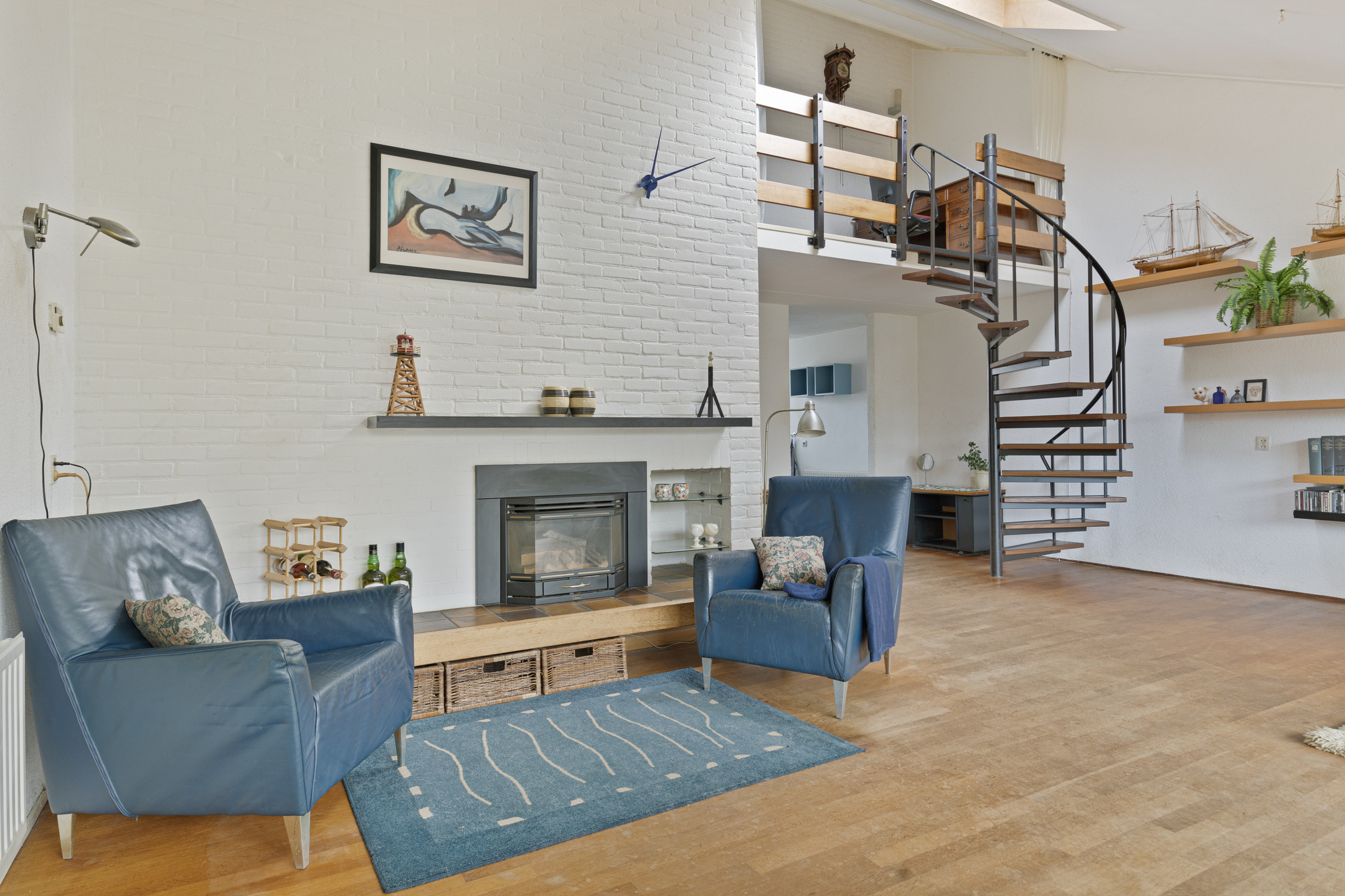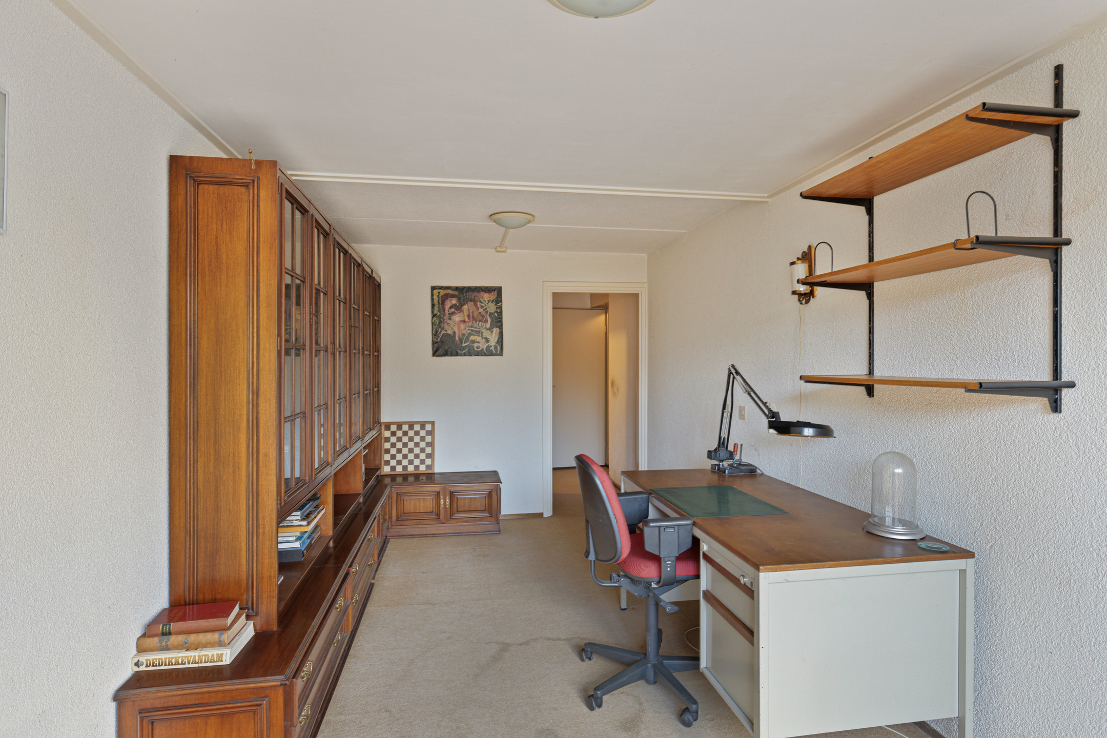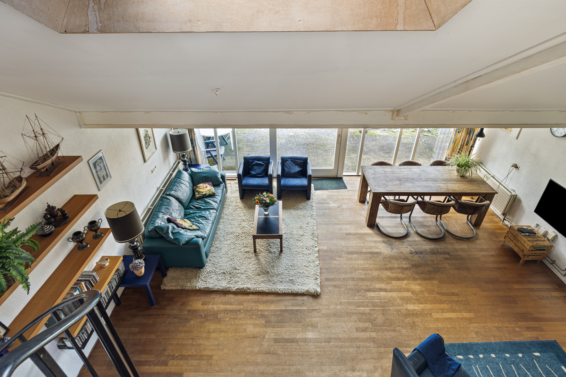 1e Verdieping: ruime (open) overloop / vide met zicht op de woonkamer. Twee slaapkamers ter grootte van circa 9,5 m² en 11 m², waarvan één met vlizotrap naar de bergvliering. Tweede gedateerde badkamer met wastafel, toilet en inloopdouche. Berging met verwarmings-opstelling.