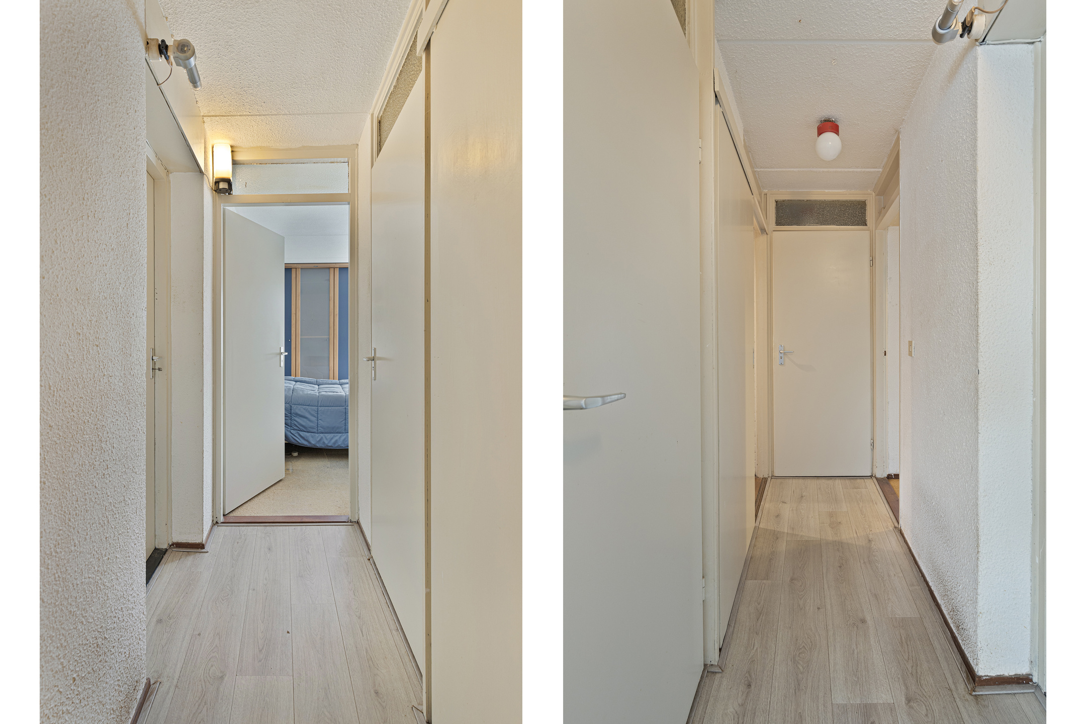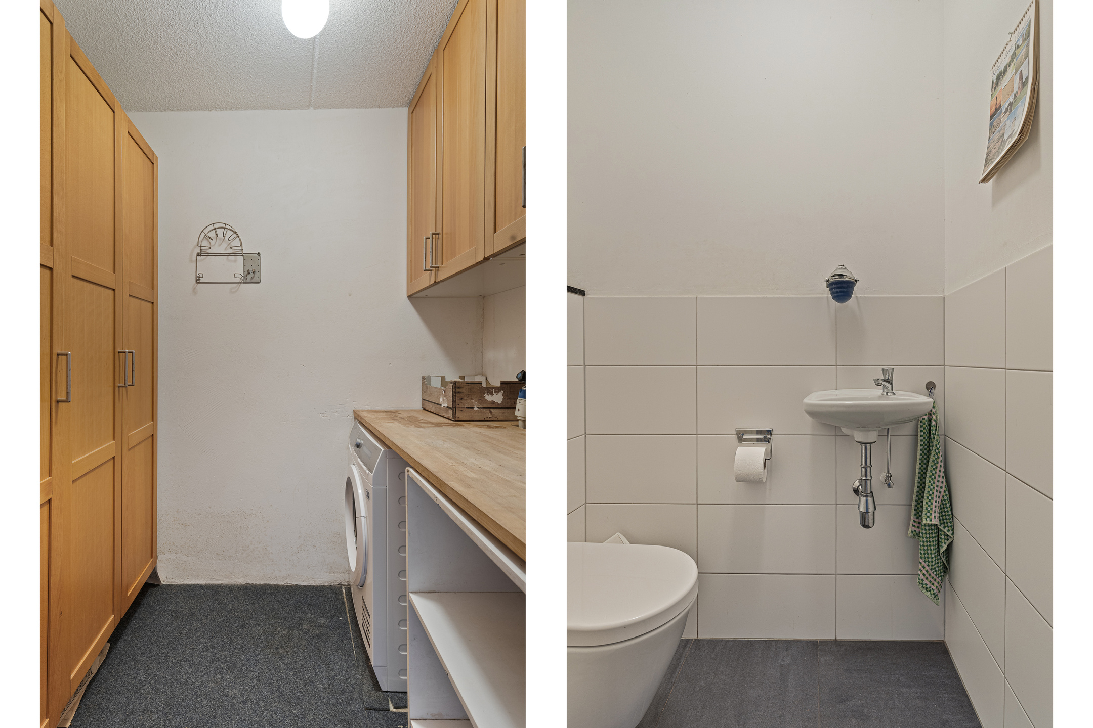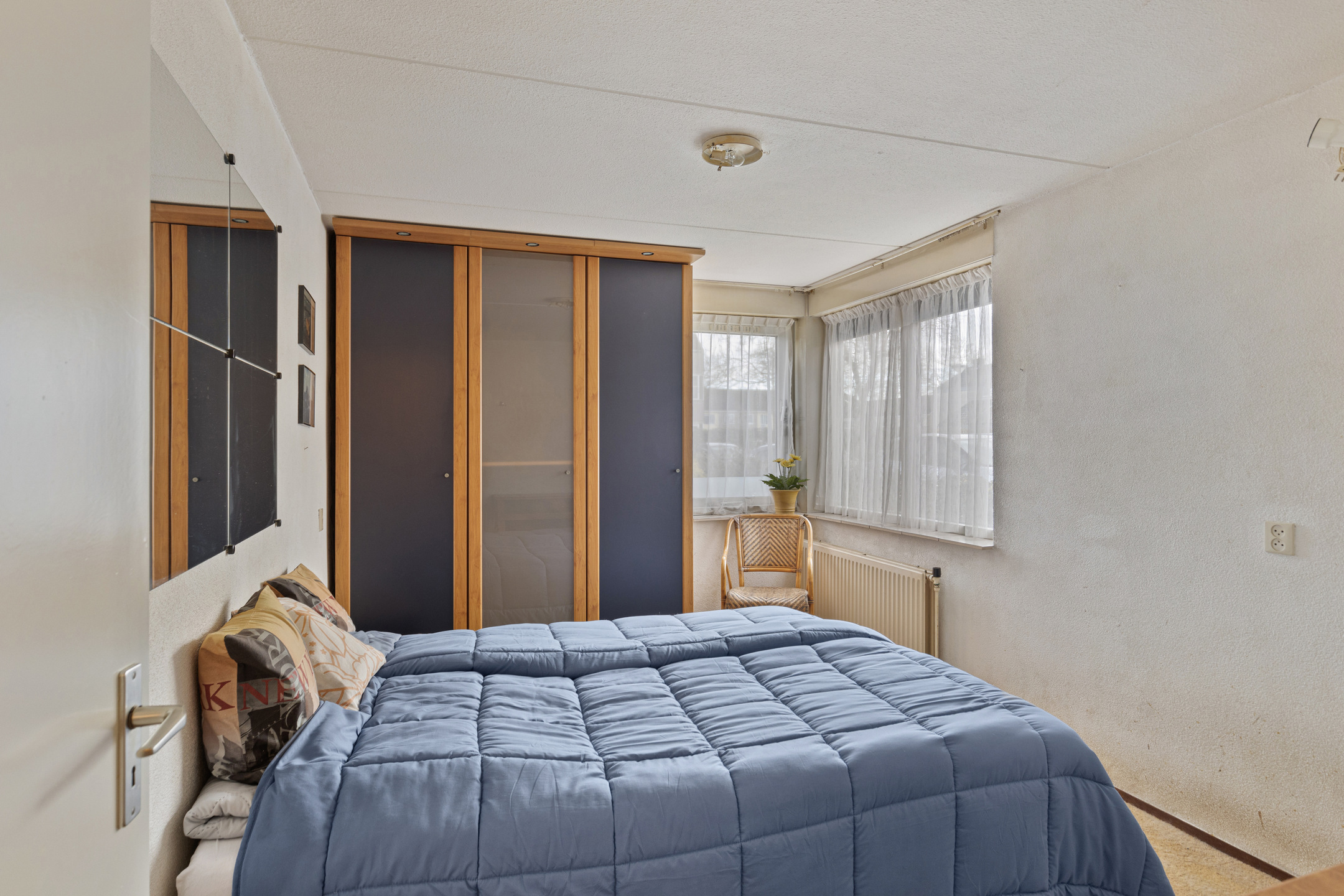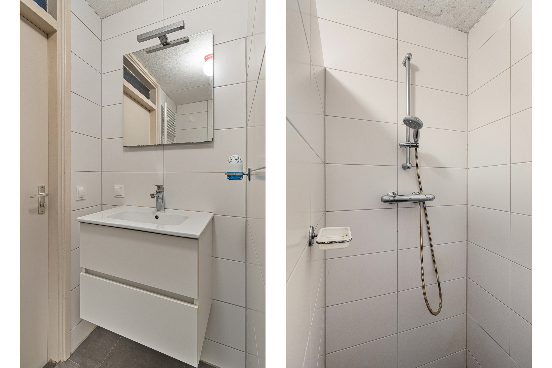 1e Verdieping: ruime (open) overloop / vide met zicht op de woonkamer. Twee slaapkamers ter grootte van circa 9,5 m² en 11 m², waarvan één met vlizotrap naar de bergvliering. Tweede gedateerde badkamer met wastafel, toilet en inloopdouche. Berging met verwarmings-opstelling.