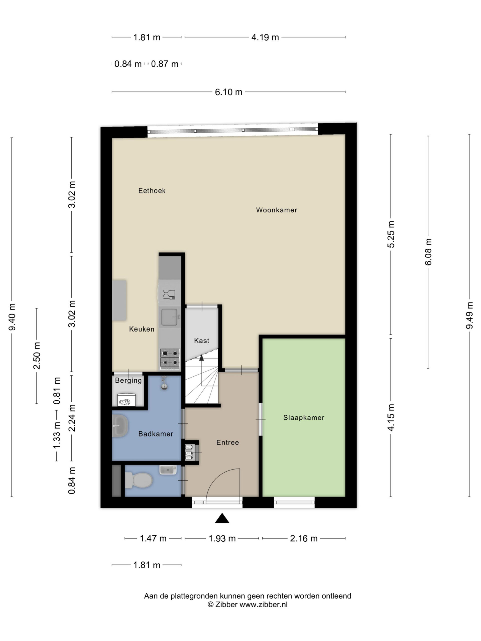 Begane grond: op de begane grond is een fietsenberging gesitueerd. Via een buitentrap bereikt u de voordeur van de woning op de 1e etage. Ook hier heeft u de beschikking over een bergruimte.