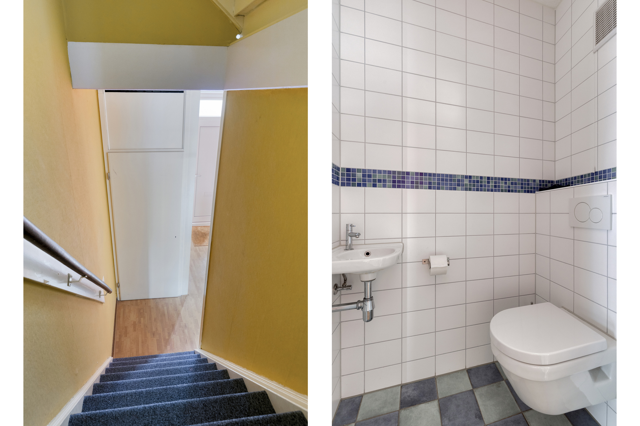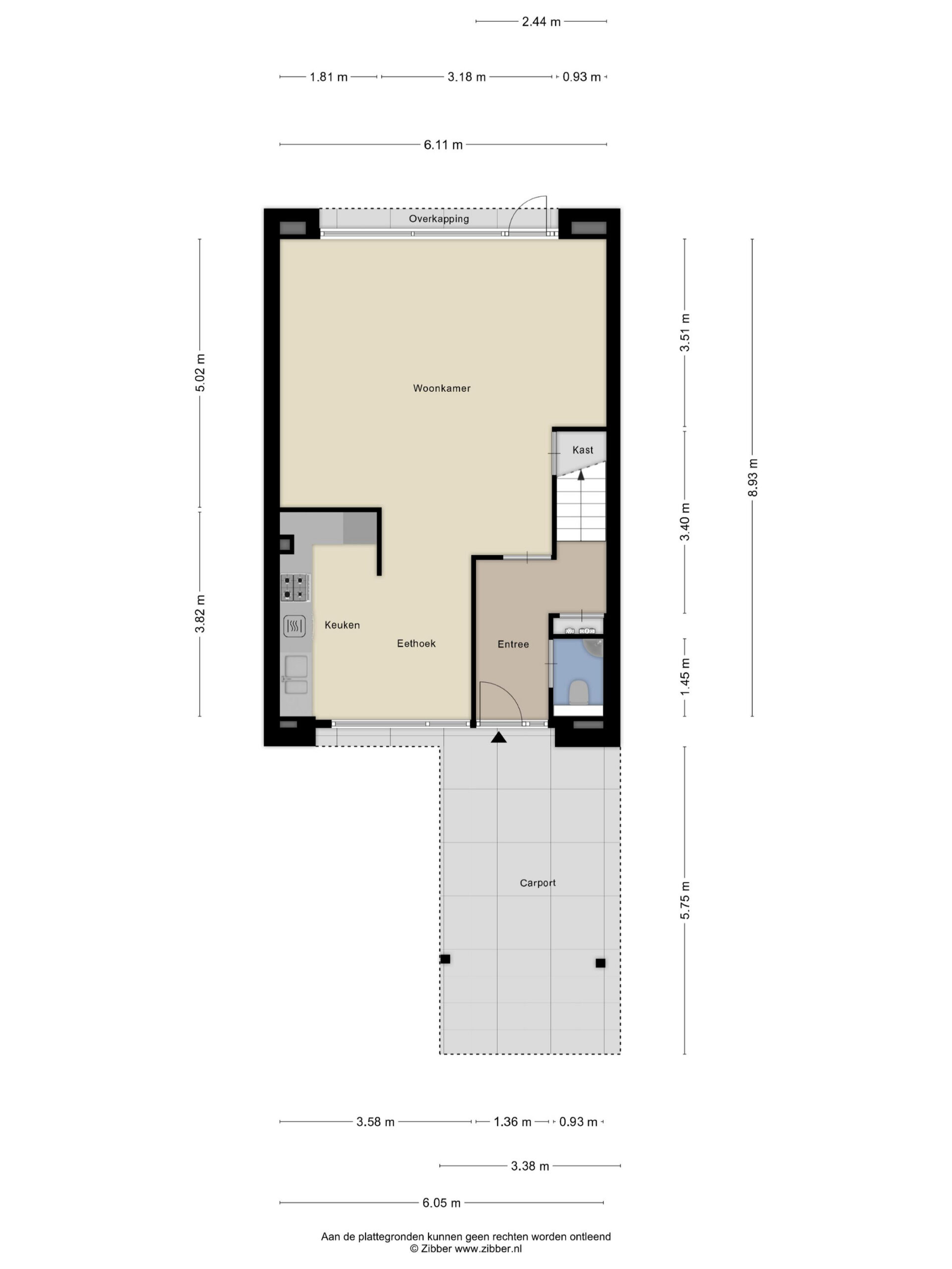 Begane grond: overdekte entree, hal met meterkast, trapopgang naar de 1e verdieping en toilet voorzien van wandcloset en fonteintje. Tuingerichte woonkamer voorzien van parketvloer en trapkast. Ruime half open woonkeuken aan de voorzijde, voorzien van 5-pits gasfornuis, afzuigkap, oven, koelkast, vriezer en vaatwasser.