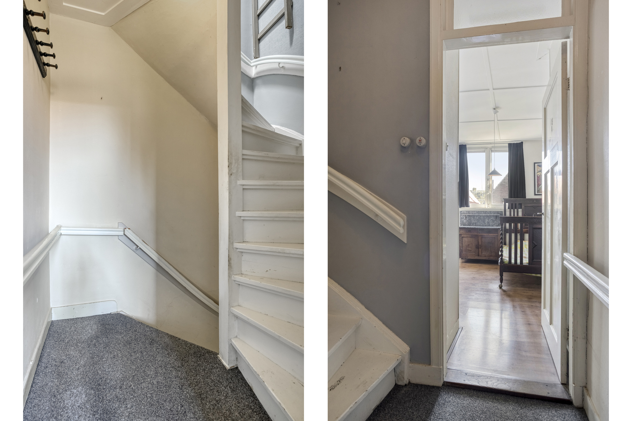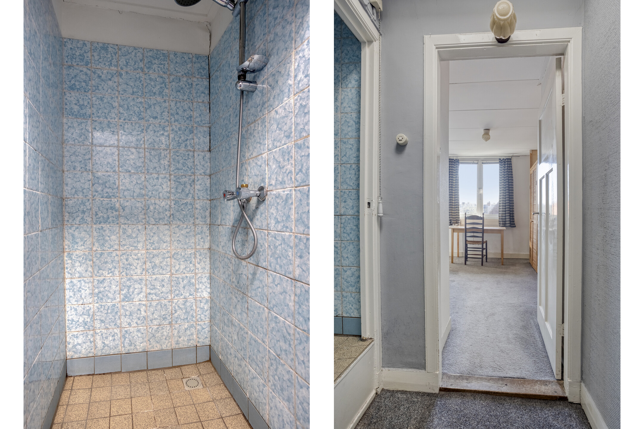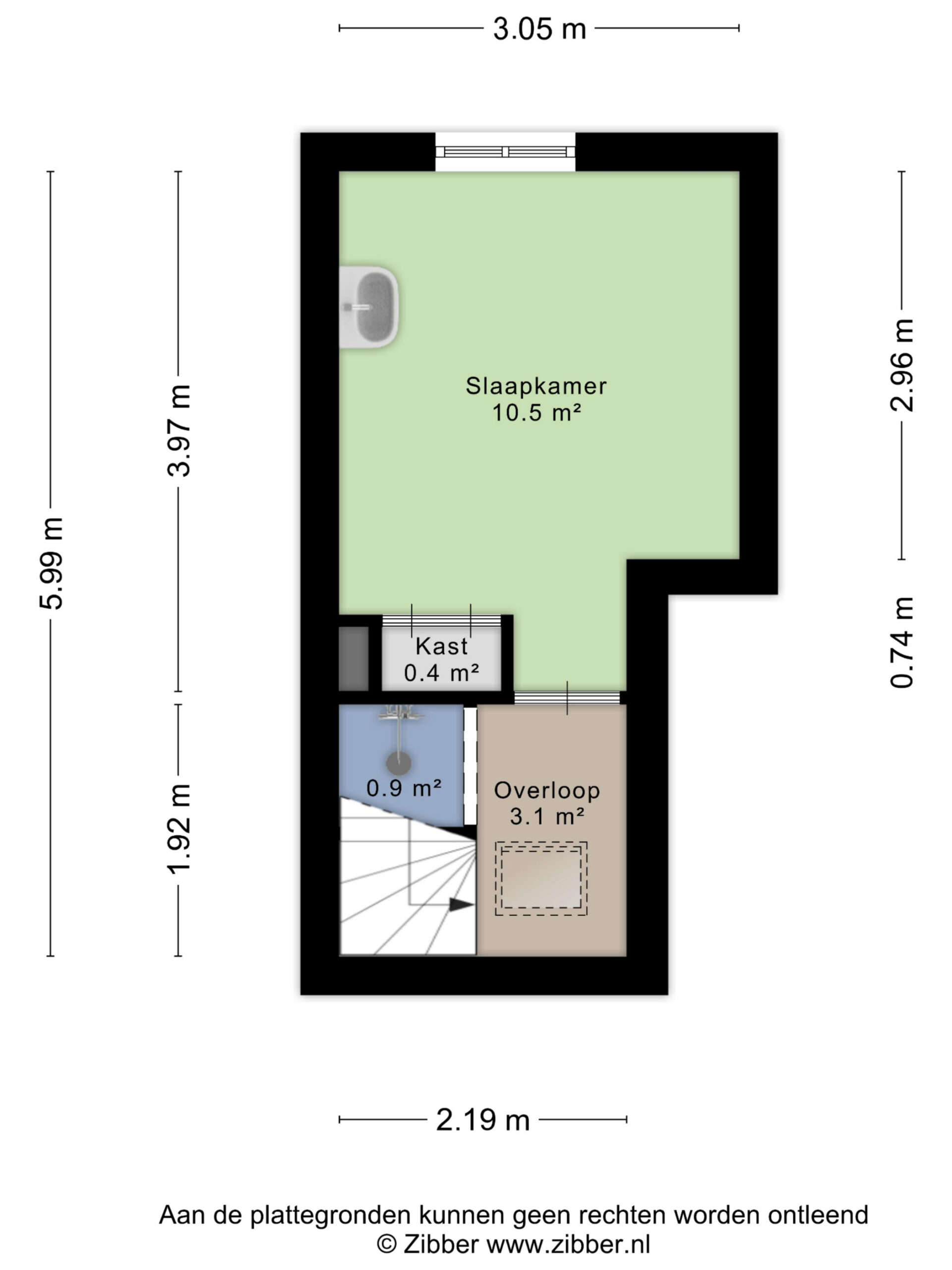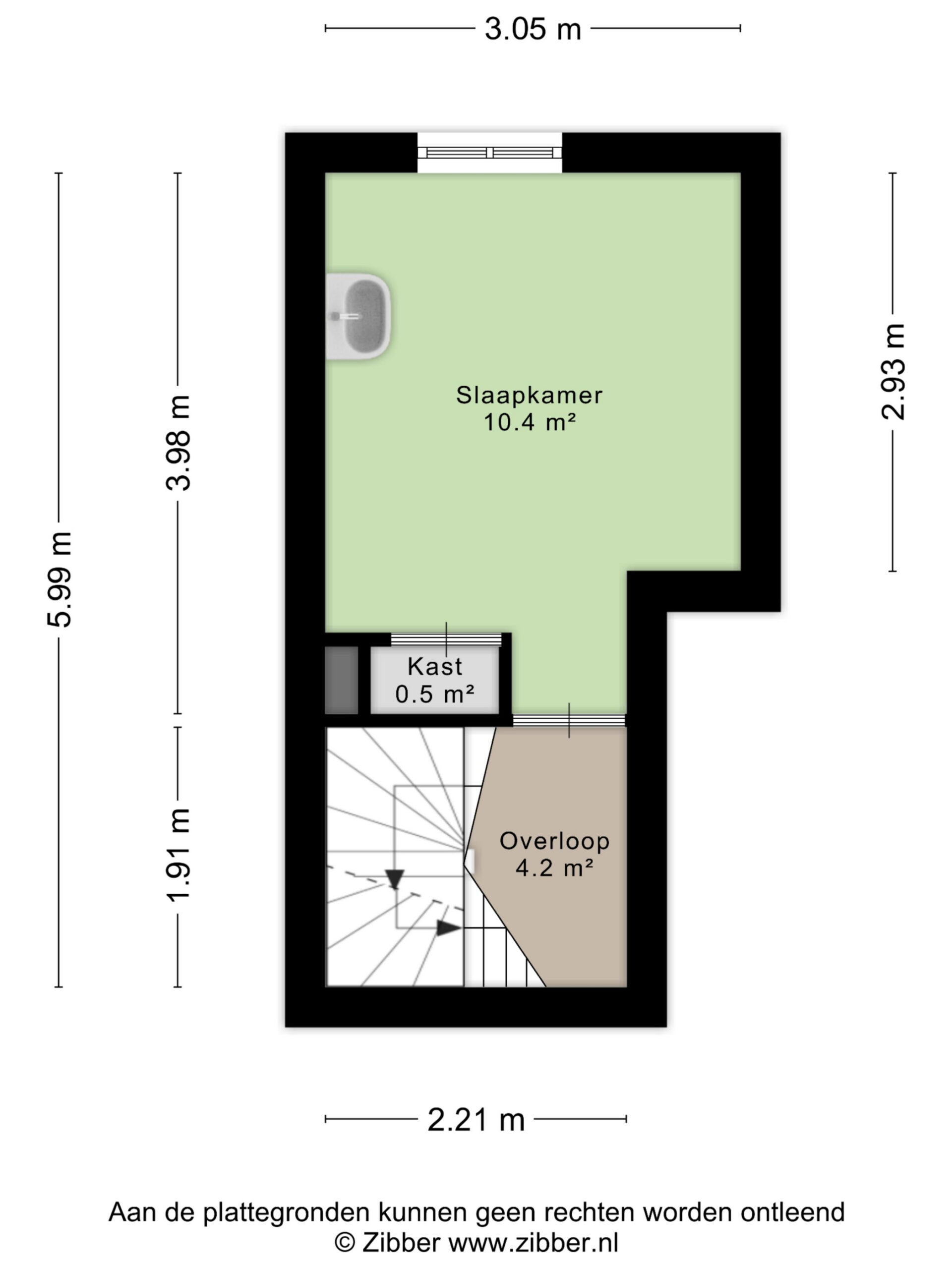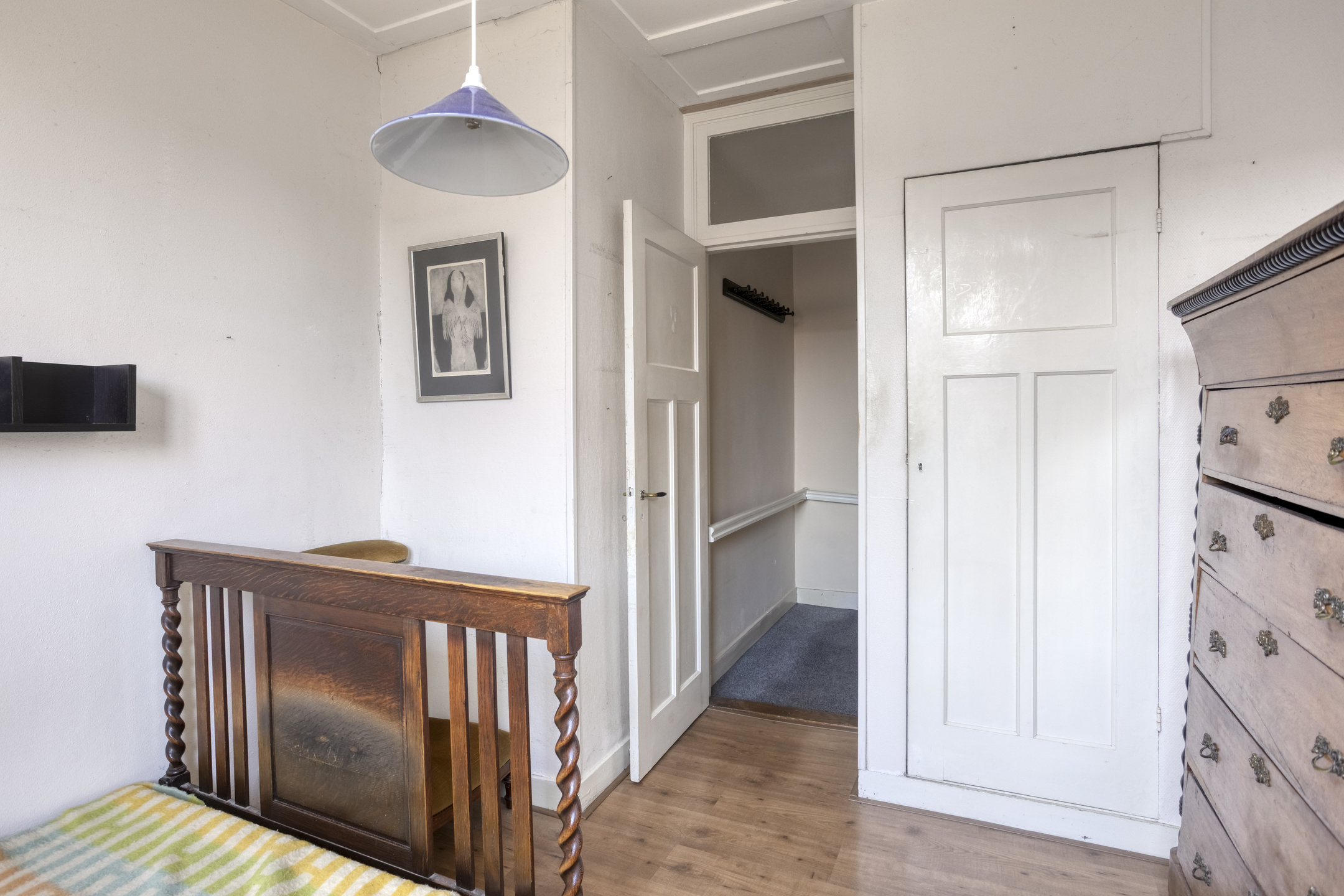 2e Verdieping: overloop met toegang tot de douche. Slaapkamer ter grootte van circa 10,5 m², tevens met vaste kast en wastafel.