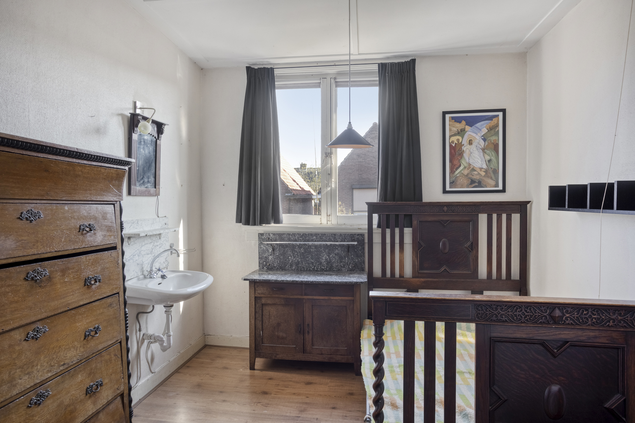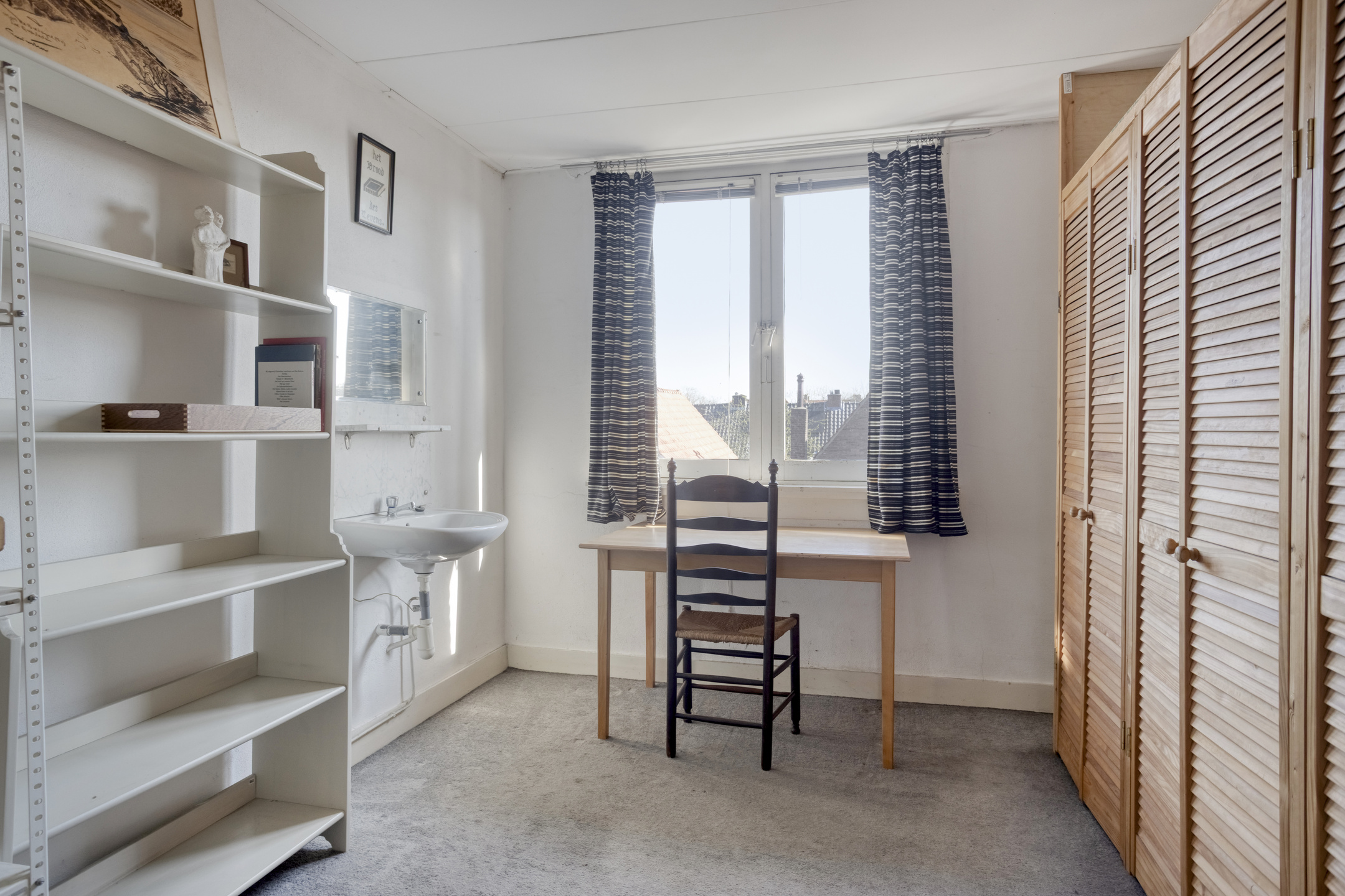 1e Verdieping: overloop. Slaapkamer ter grootte van circa 10,5 m² met vaste kast en eigen wastafel.