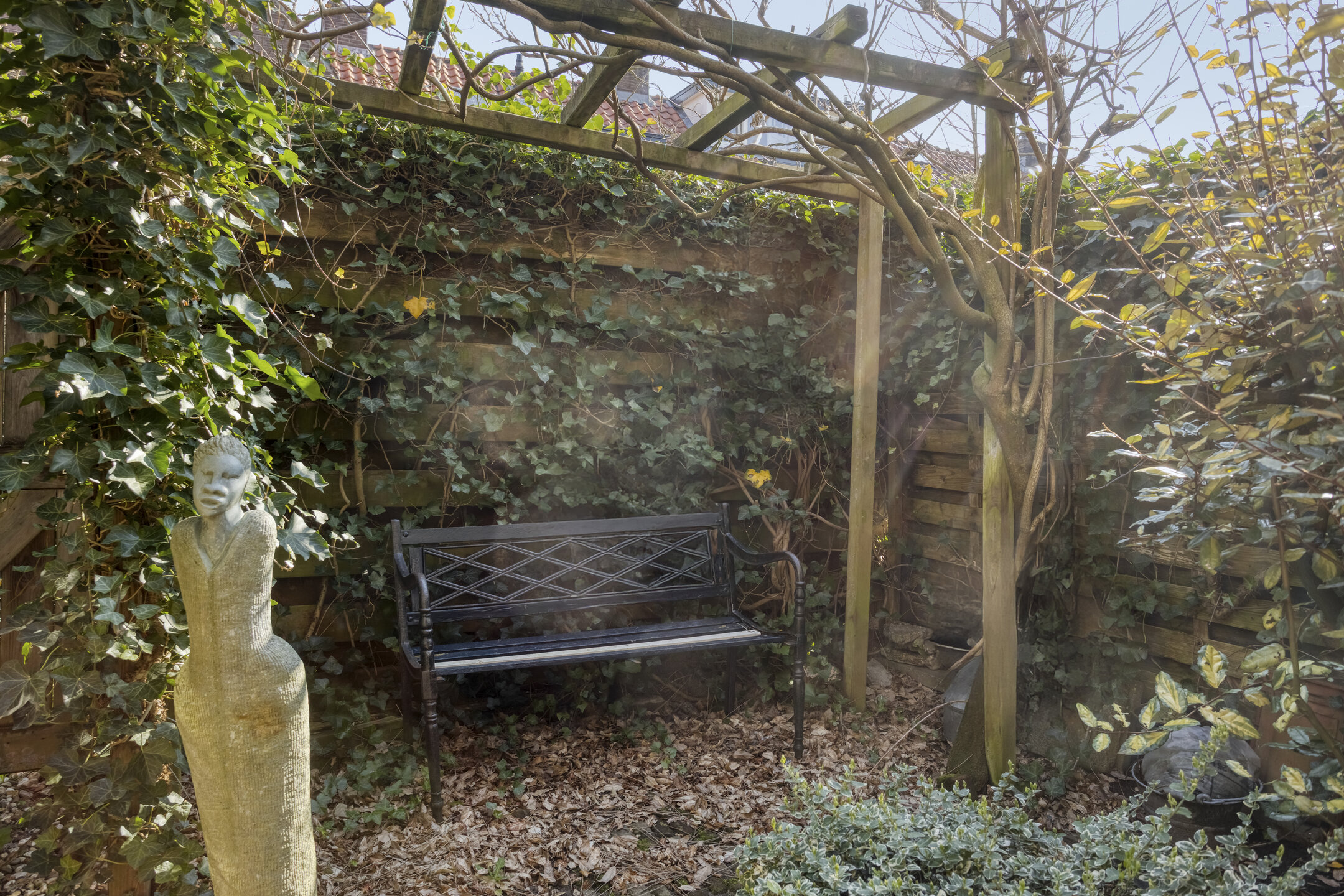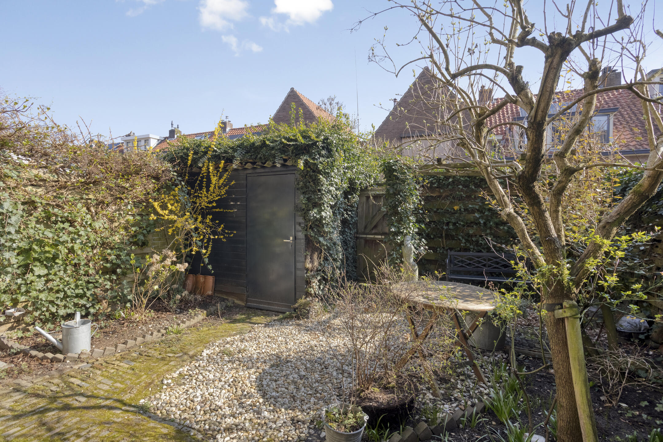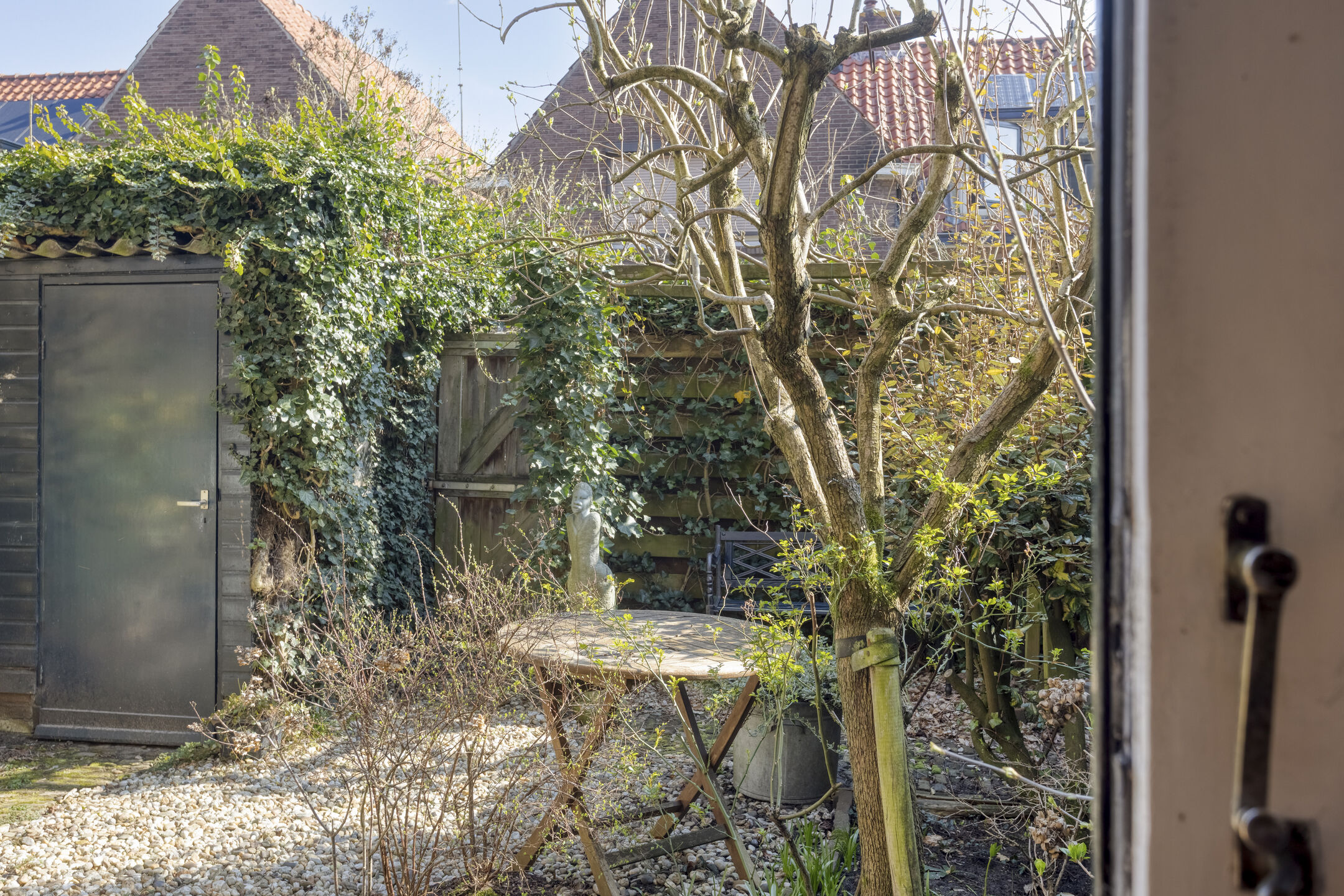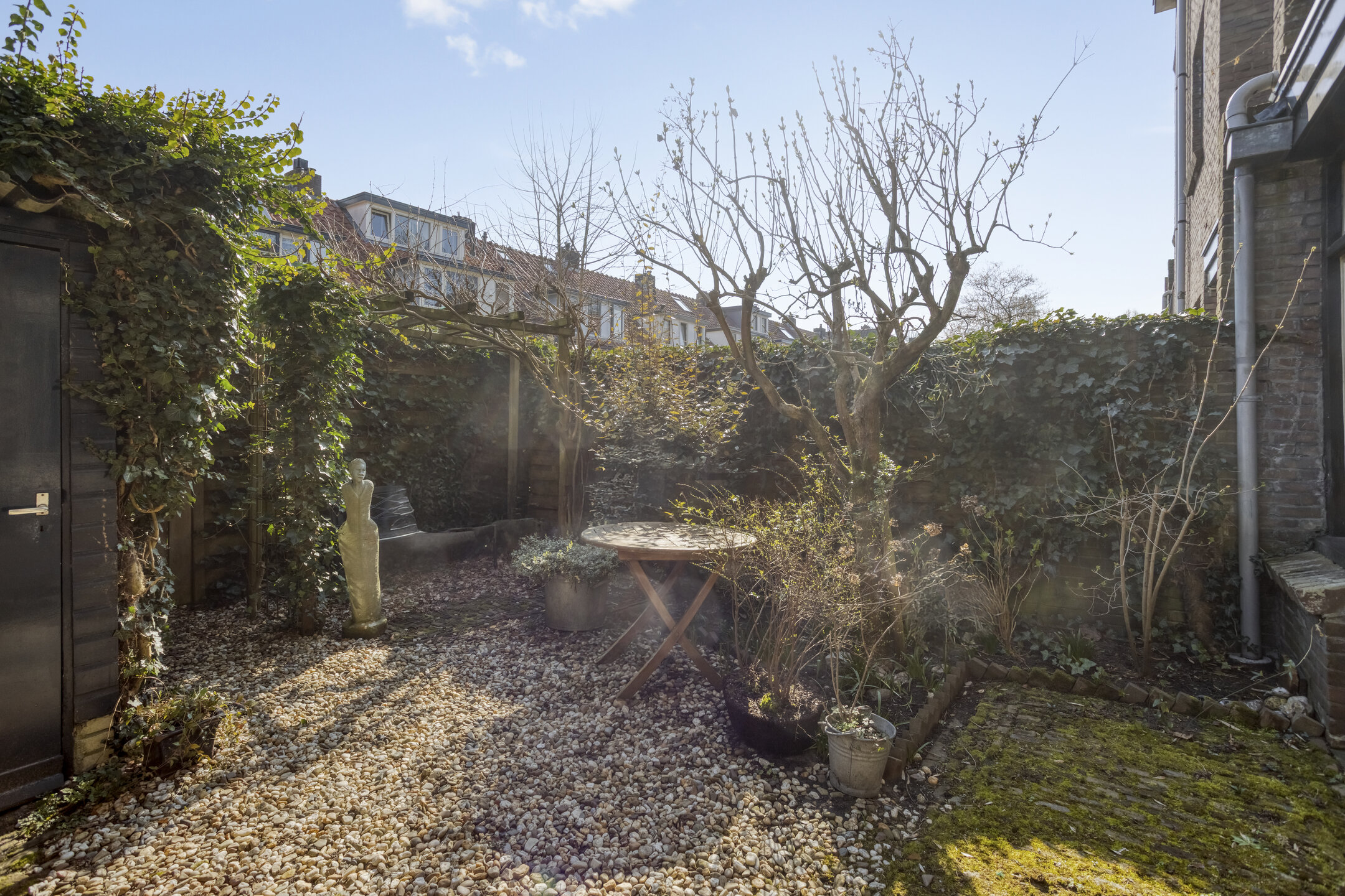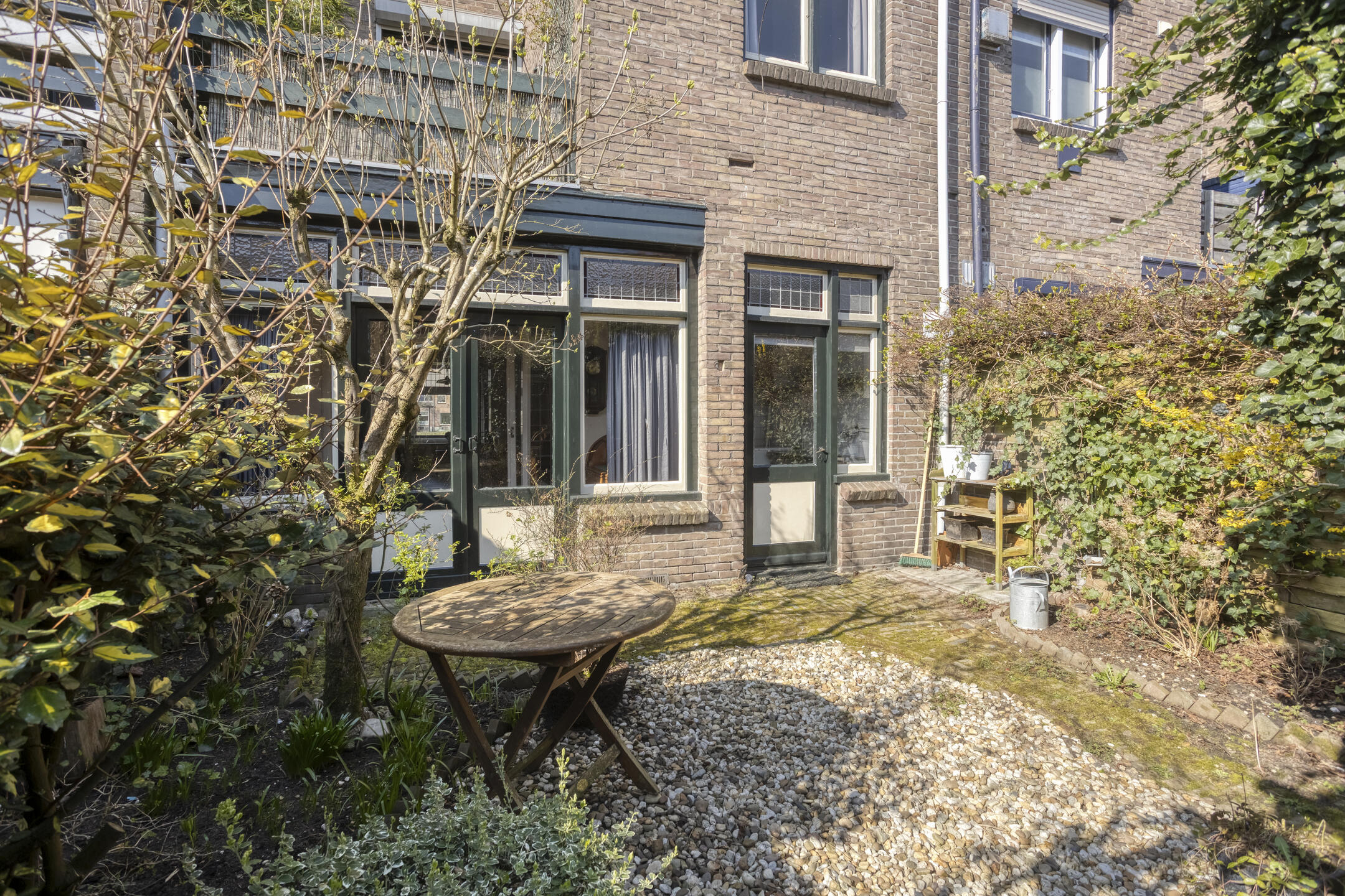 Sfeervolle stadstuin op het oosten met siergrind, borders, zitje en houten berging. De tuin is achterom te bereiken via het achterpad. Parkeren is mogelijk in de straat op de openbare parkeervoorzieningen.