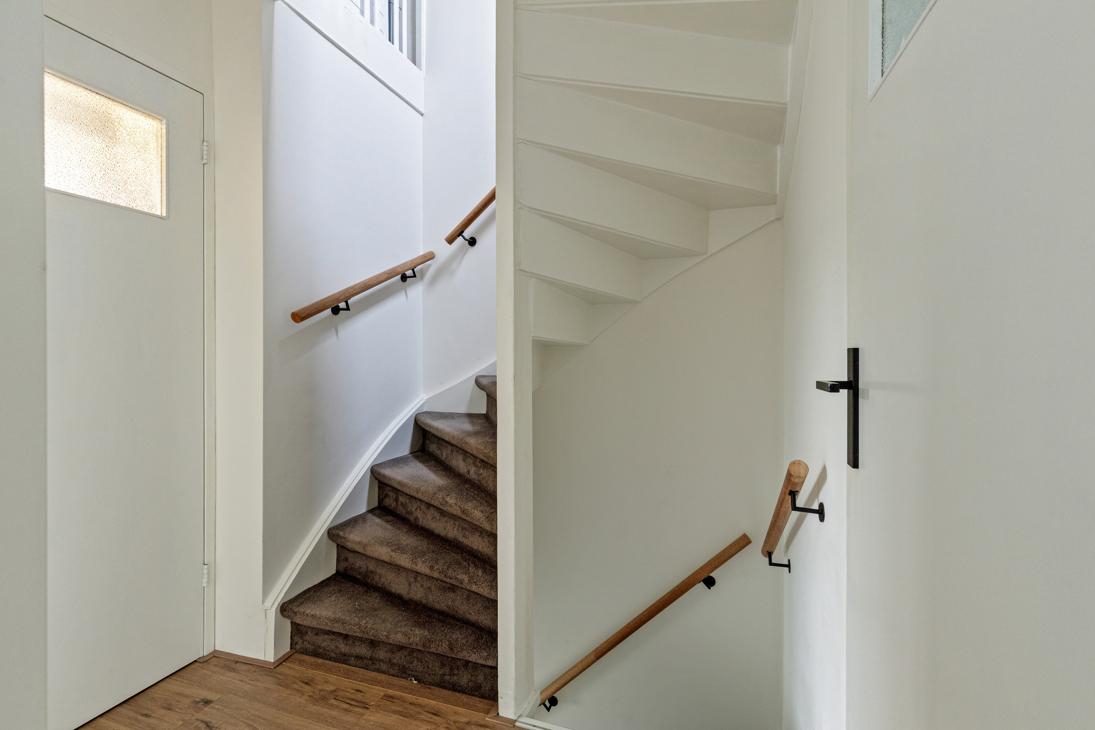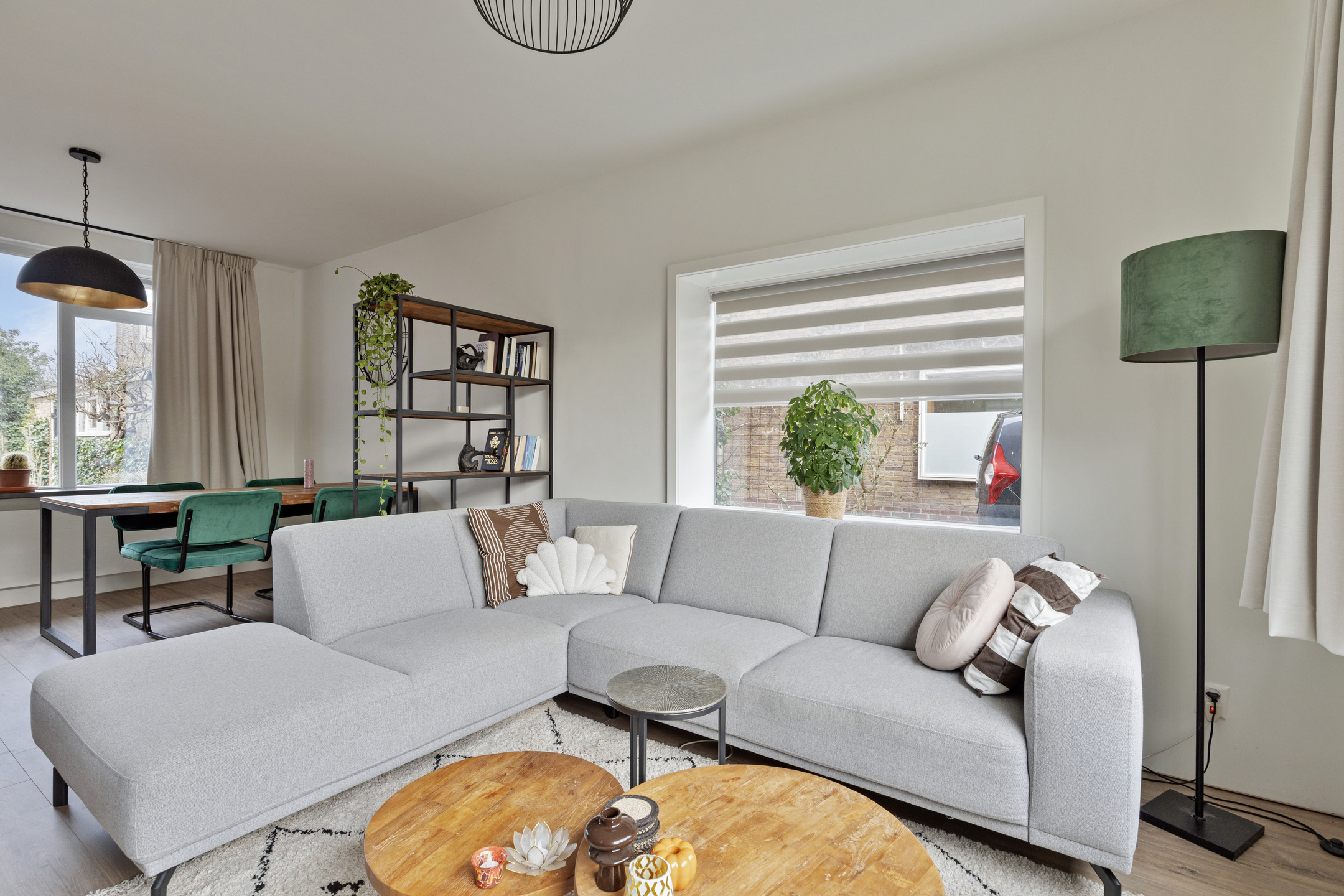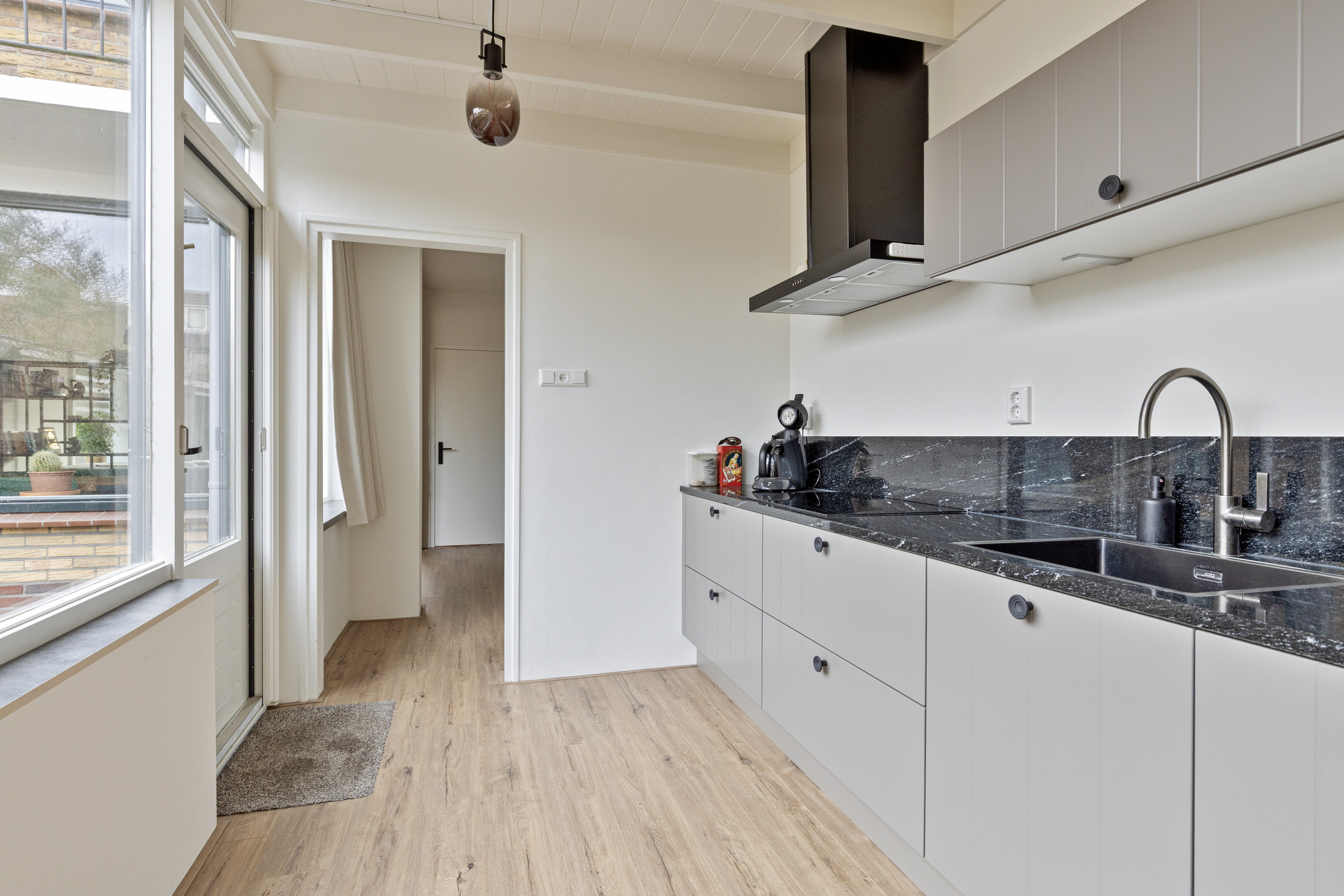 Begane grond: entree, hal met meterkast, toegang tot de kelder en trapopgang naar de 1e verdieping. Strak afgewerkte doorzonwoonkamer, volledig gestuukt met aparte eet/hobby hoek in de doorloop naar de keuken. Moderne keuken met tuindeur in de aanbouw, voorzien van inductiekookplaat, afzuigkap, oven, koel-vriescombinatie en vaatwasser. Tussenhal met cv-opstelplaats en toegang tot het toilet met fonteintje.