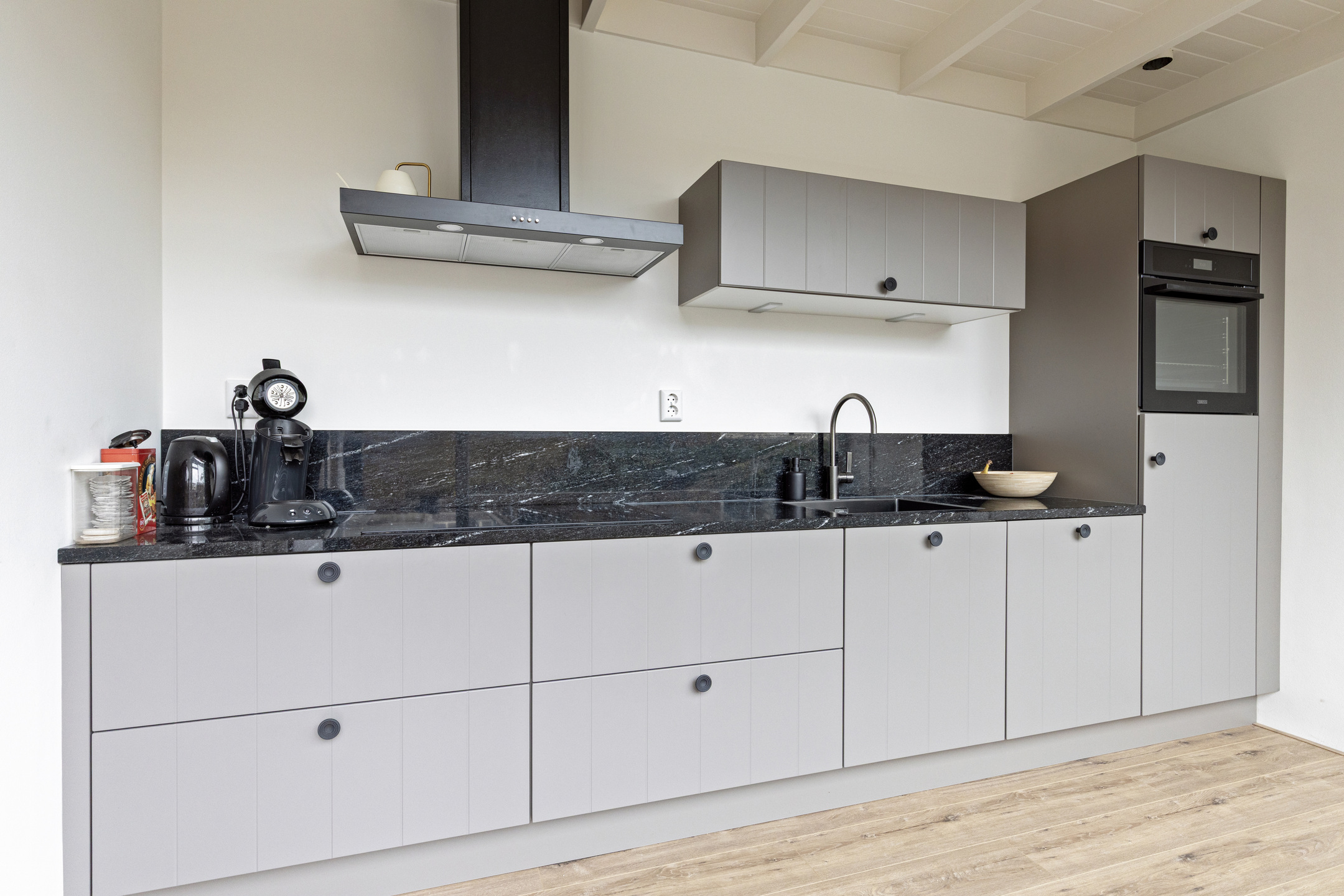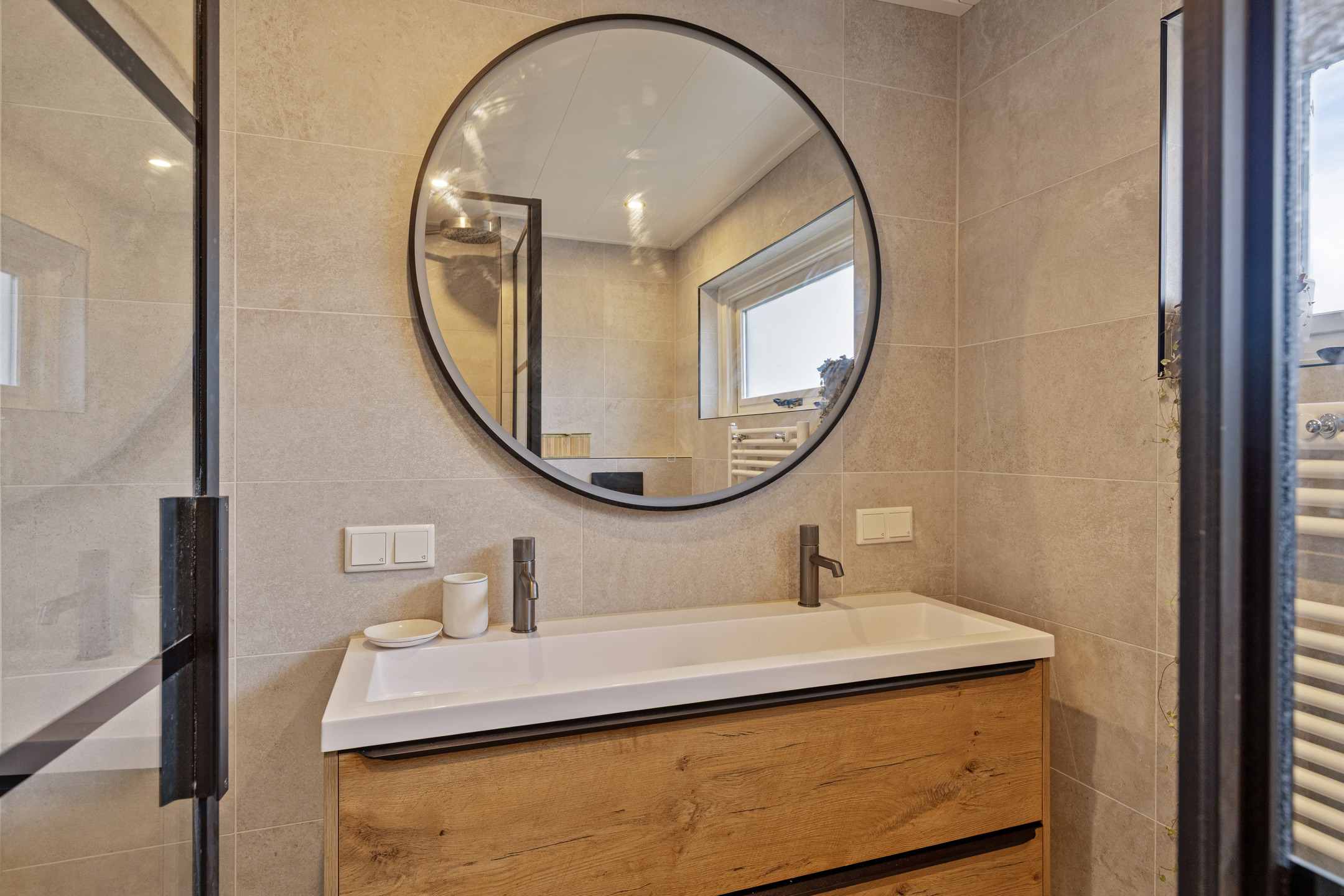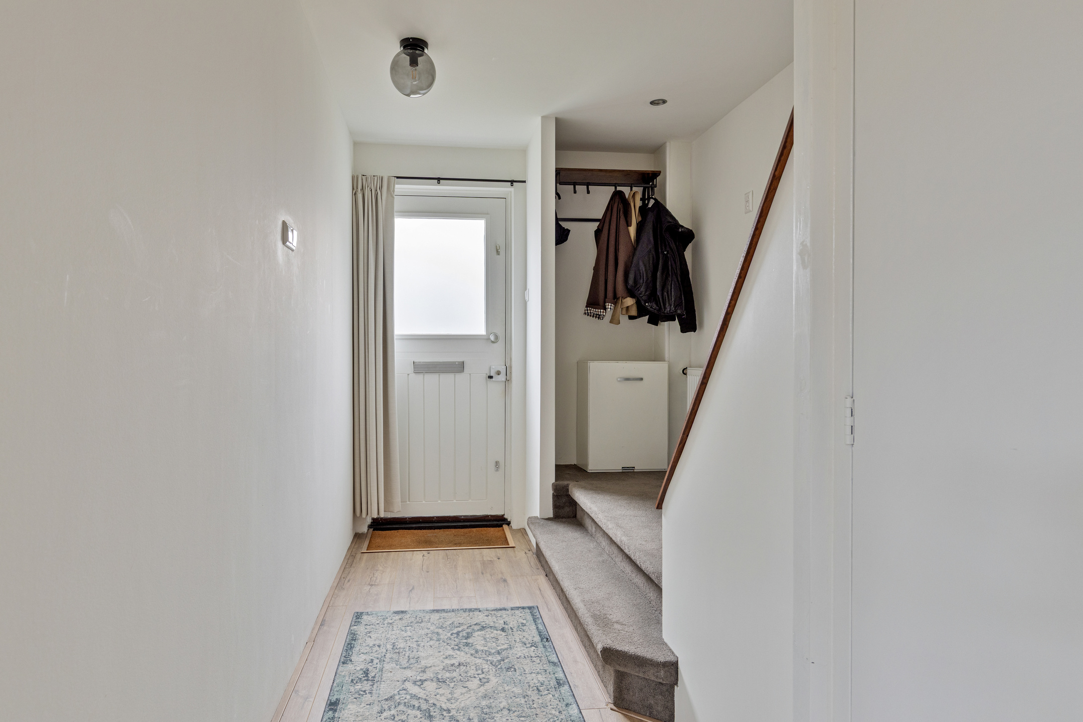 Begane grond: entree, hal met meterkast, toegang tot de kelder en trapopgang naar de 1e verdieping. Strak afgewerkte doorzonwoonkamer, volledig gestuukt met aparte eet/hobby hoek in de doorloop naar de keuken. Moderne keuken met tuindeur in de aanbouw, voorzien van inductiekookplaat, afzuigkap, oven, koel-vriescombinatie en vaatwasser. Tussenhal met cv-opstelplaats en toegang tot het toilet met fonteintje.