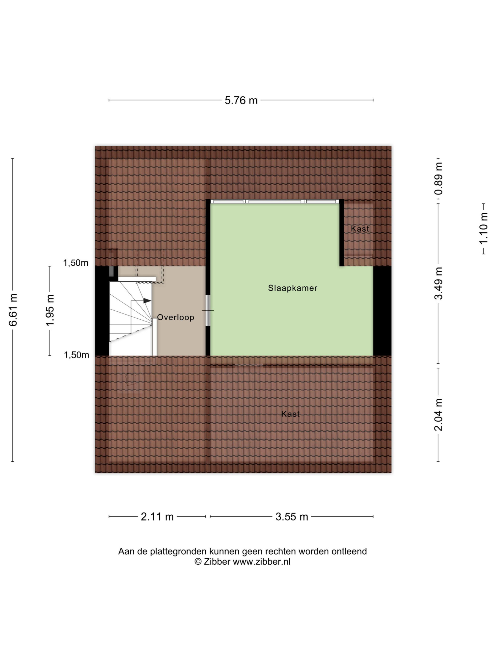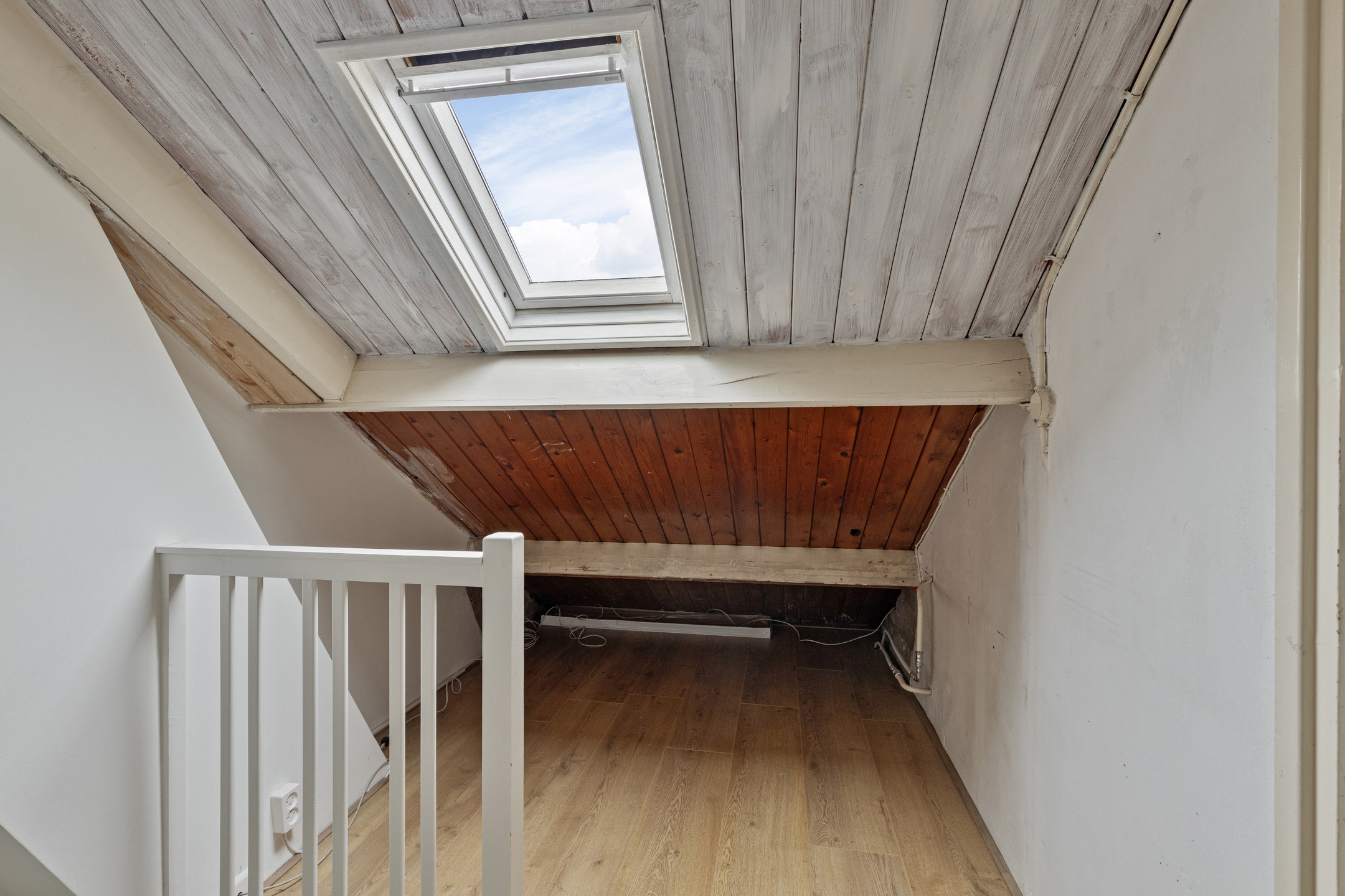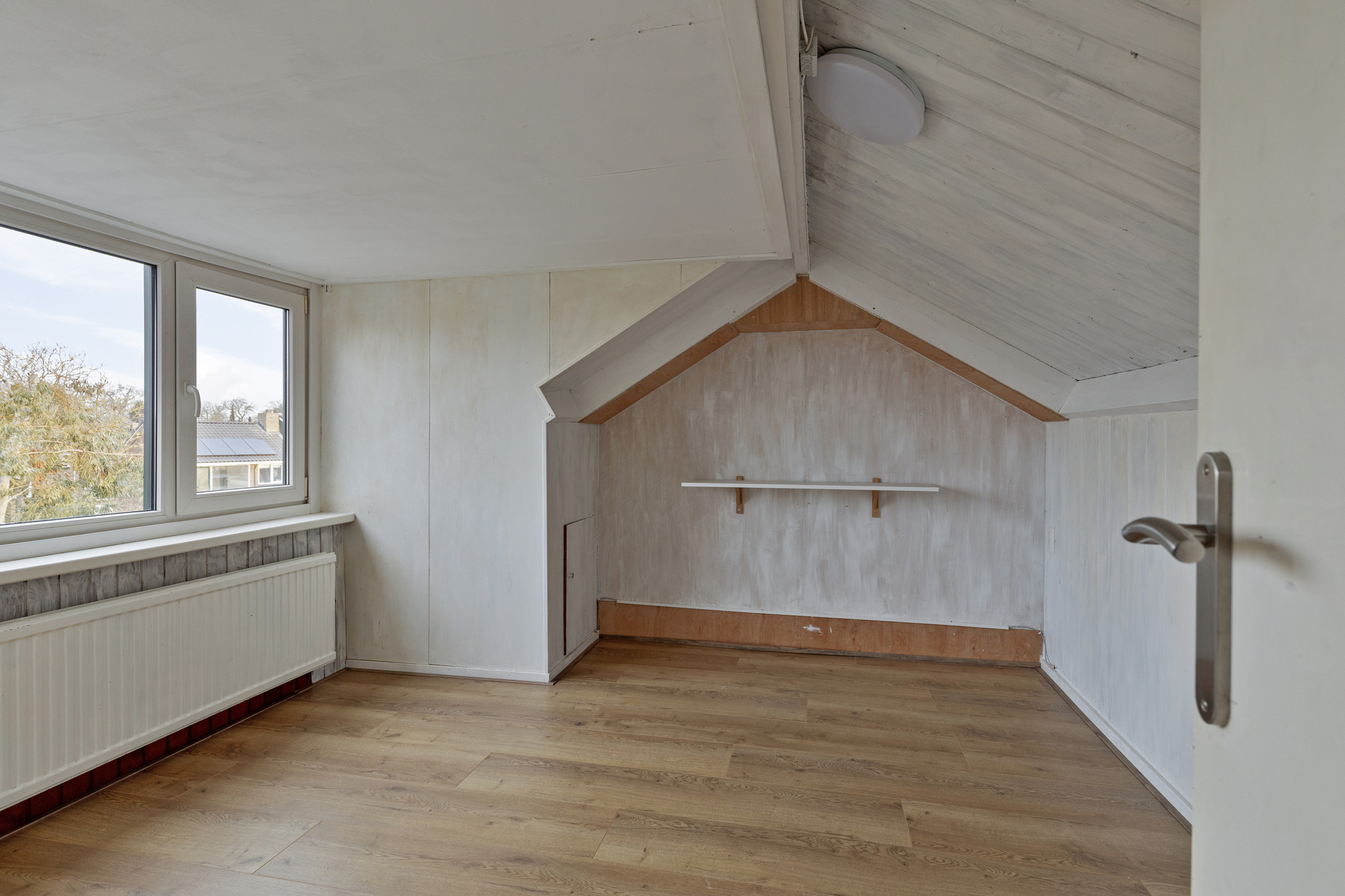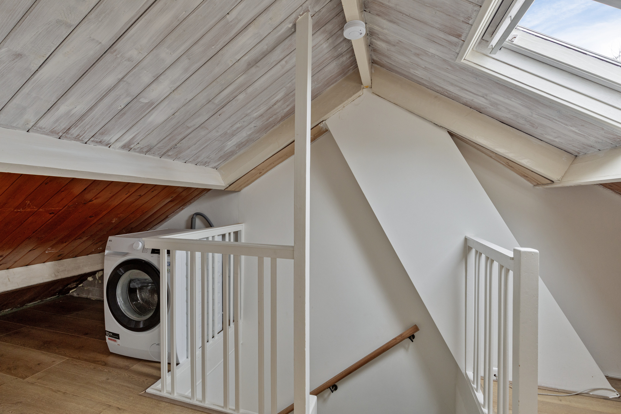 2e Verdieping: overloop met dakraam en wasmachine-aansluiting. Vierde slaapkamer met dakkapel, ter grootte van circa 11 m², met toegang tot de bergruimte onder de kap.