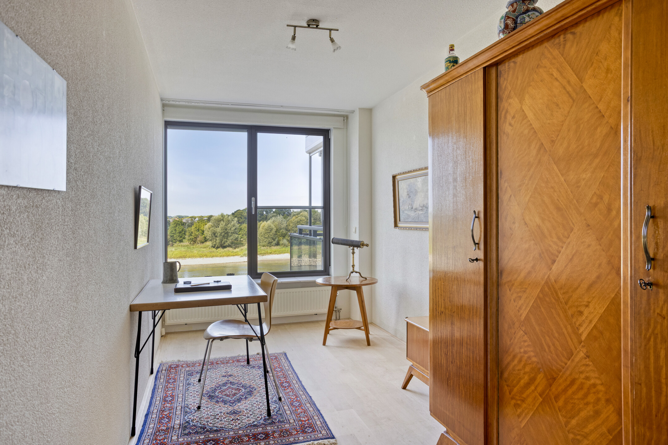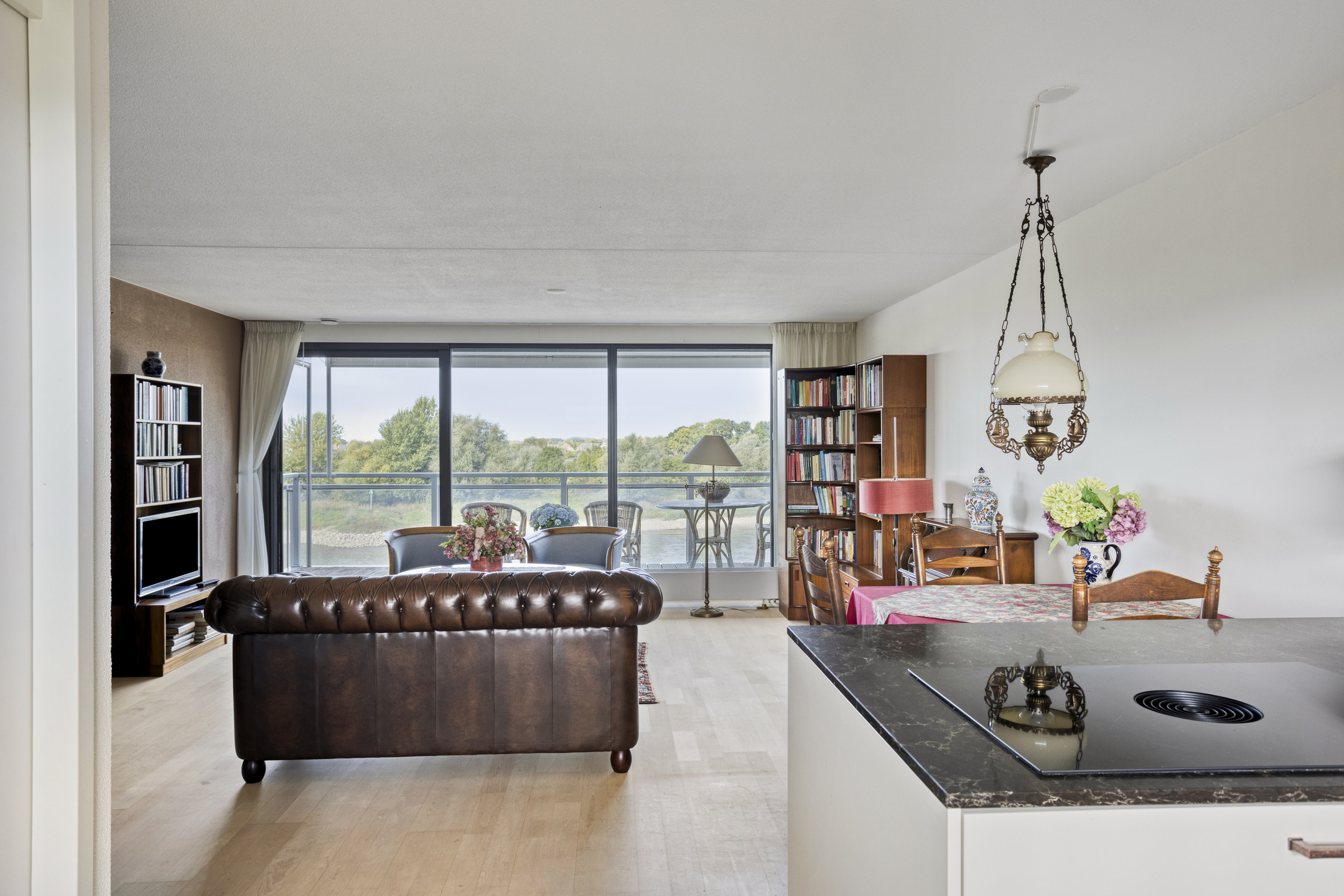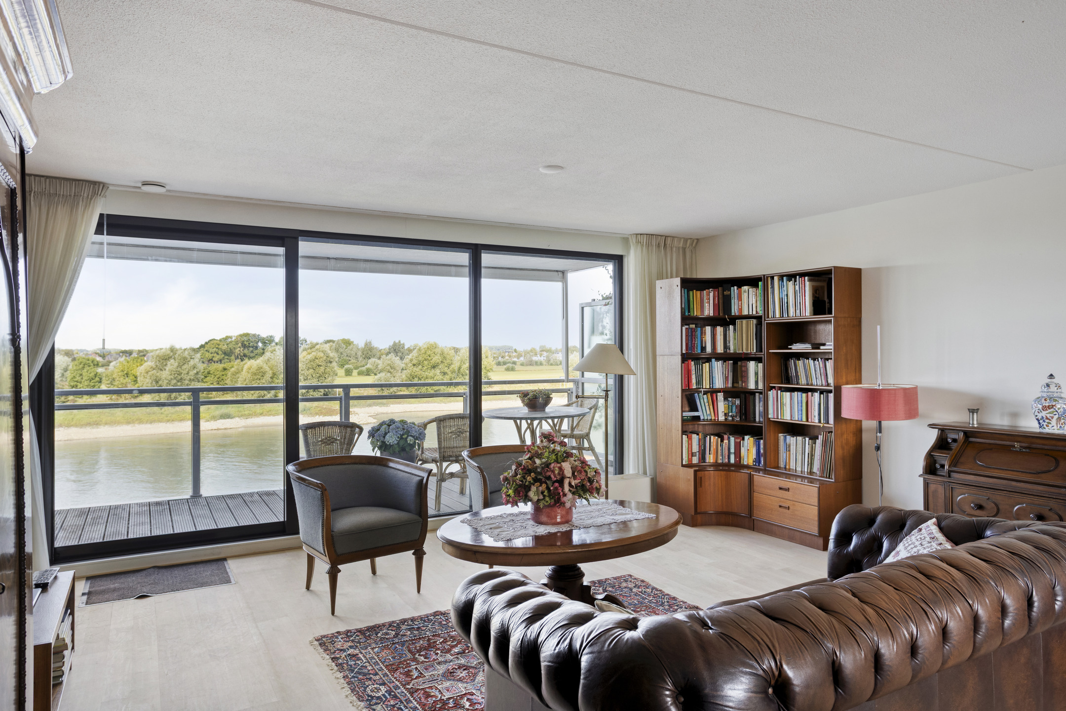 Woonverdieping (2e verdieping): entree met meterkast, hal met vaste kast t.b.v. cv- en wtwinstallatie, gastentoilet voorzien van wandcloset en fonteintje. Prettige woon-/eetkamer met toegang tot het balkon op het westen, welke prachtig uitzicht biedt over rivier de IJssel. Dit balkon is voorzien van elektrisch bedienbare screens. Moderne keuken voorzien van (Bora) inductieplaat met geïntegreerde afzuiging, vaatwasser, oven en koel-vriescombinatie. Bijkeuken met ruimte voor extra koelkast/vriezer en wasmachine-aansluiting. Twee nette slaapkamers ter grootte van circa 9,5 m² en 12,5 m², beide met zicht over rivier de IJssel. De grote slaapkamer beschikt tevens over vaste kasten. Goed afgewerkte badkamer voorzien van ruime inloopdouche, wastafelmeubel, wandcloset en handdoekenradiator.