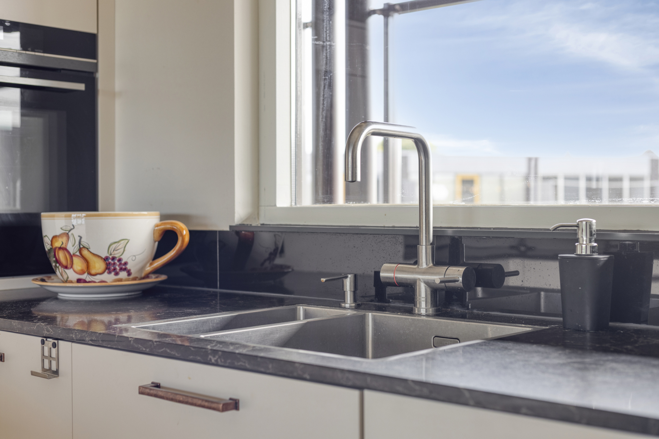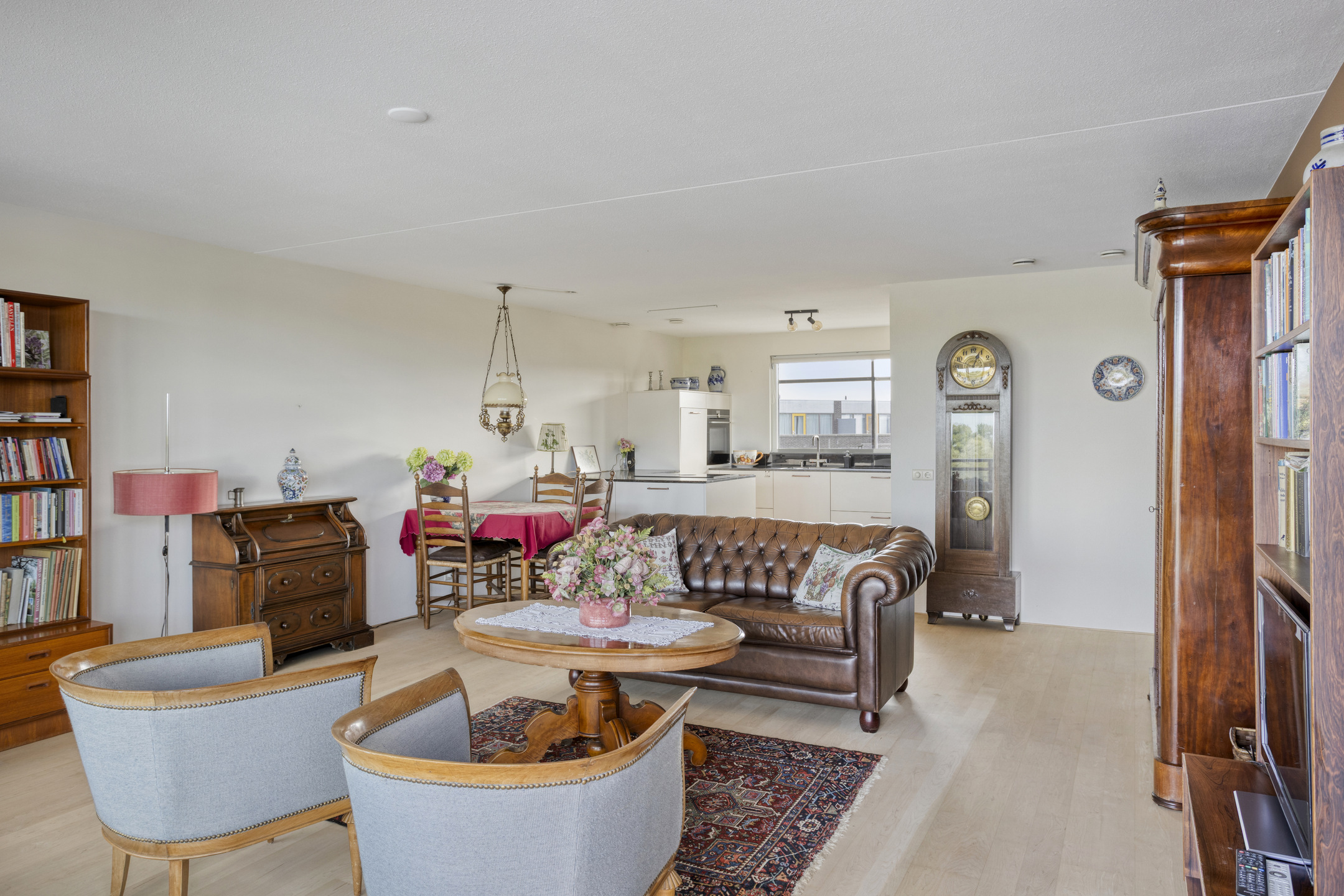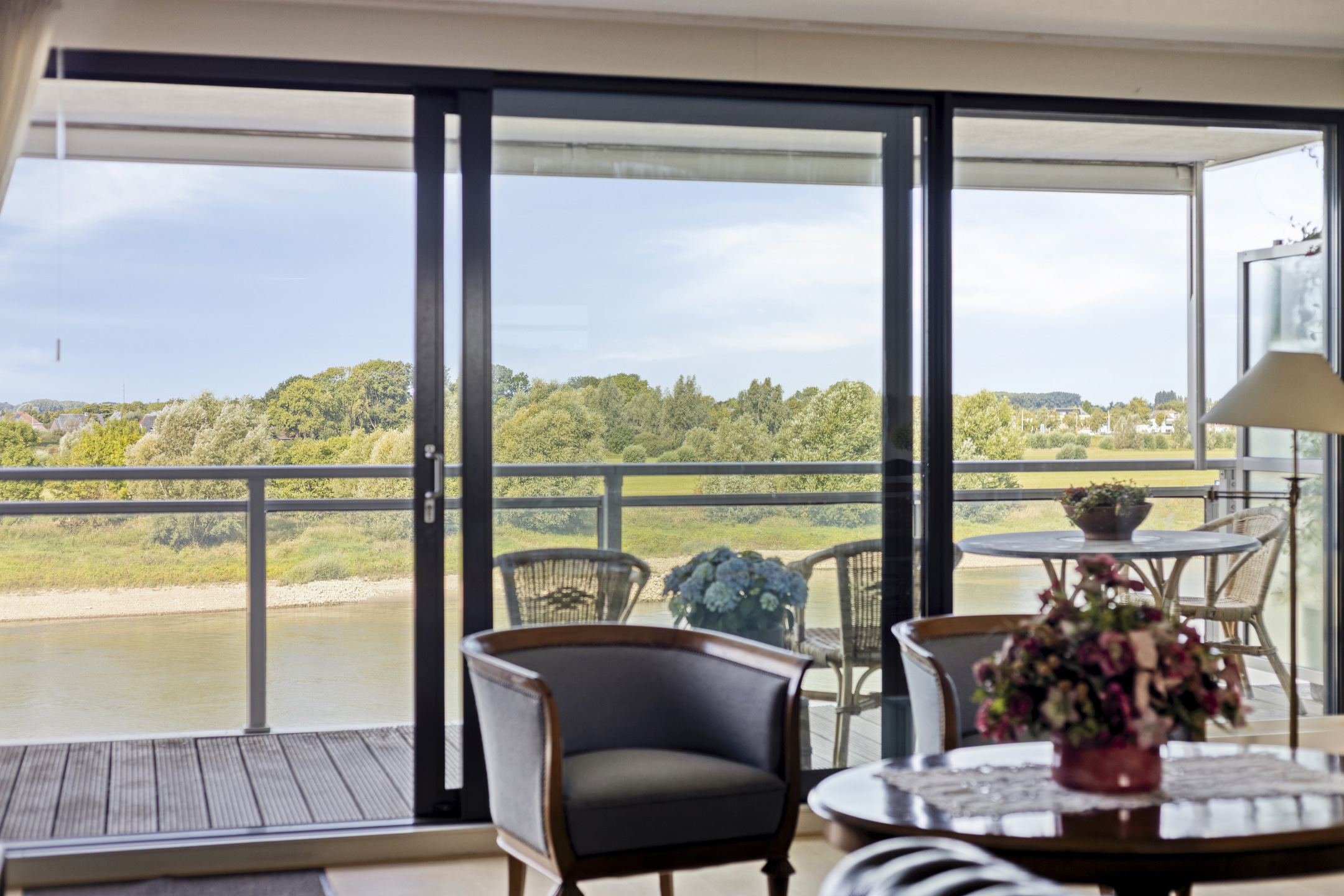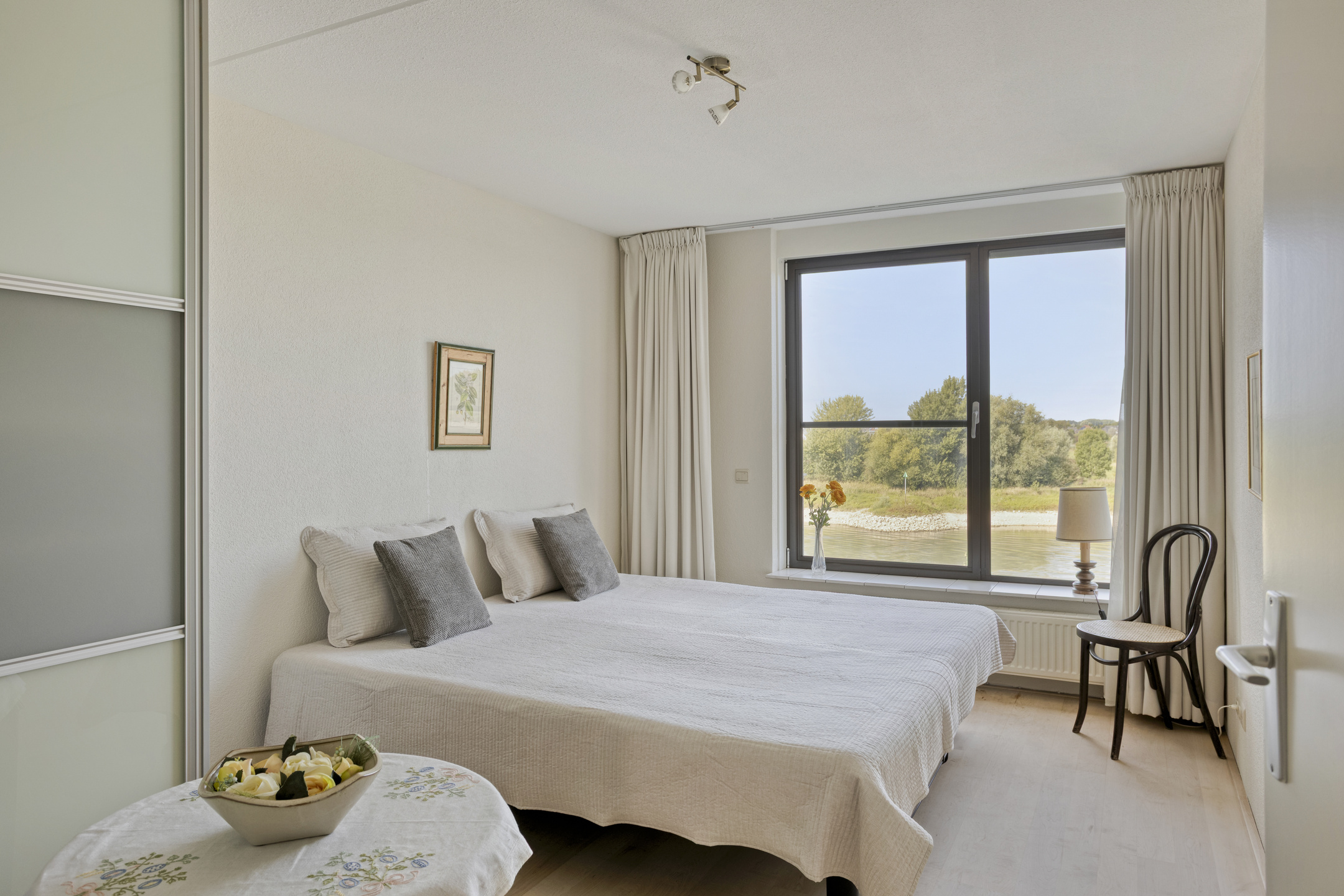 Woonverdieping (2e verdieping): entree met meterkast, hal met vaste kast t.b.v. cv- en wtwinstallatie, gastentoilet voorzien van wandcloset en fonteintje. Prettige woon-/eetkamer met toegang tot het balkon op het westen, welke prachtig uitzicht biedt over rivier de IJssel. Dit balkon is voorzien van elektrisch bedienbare screens. Moderne keuken voorzien van (Bora) inductieplaat met geïntegreerde afzuiging, vaatwasser, oven en koel-vriescombinatie. Bijkeuken met ruimte voor extra koelkast/vriezer en wasmachine-aansluiting. Twee nette slaapkamers ter grootte van circa 9,5 m² en 12,5 m², beide met zicht over rivier de IJssel. De grote slaapkamer beschikt tevens over vaste kasten. Goed afgewerkte badkamer voorzien van ruime inloopdouche, wastafelmeubel, wandcloset en handdoekenradiator.
