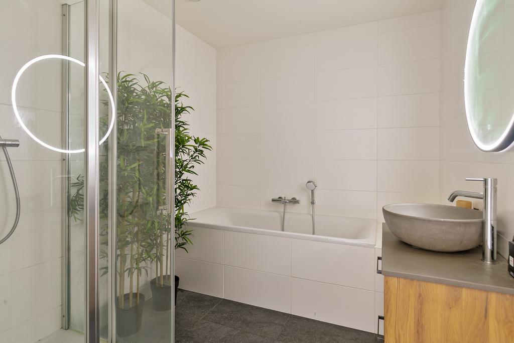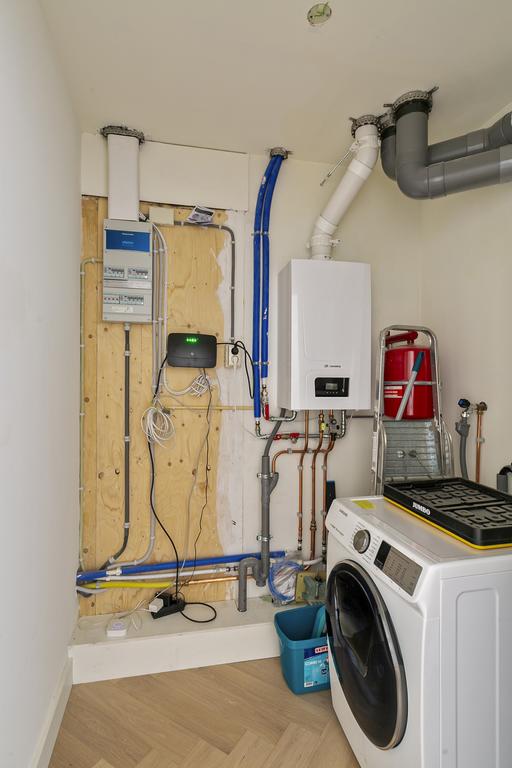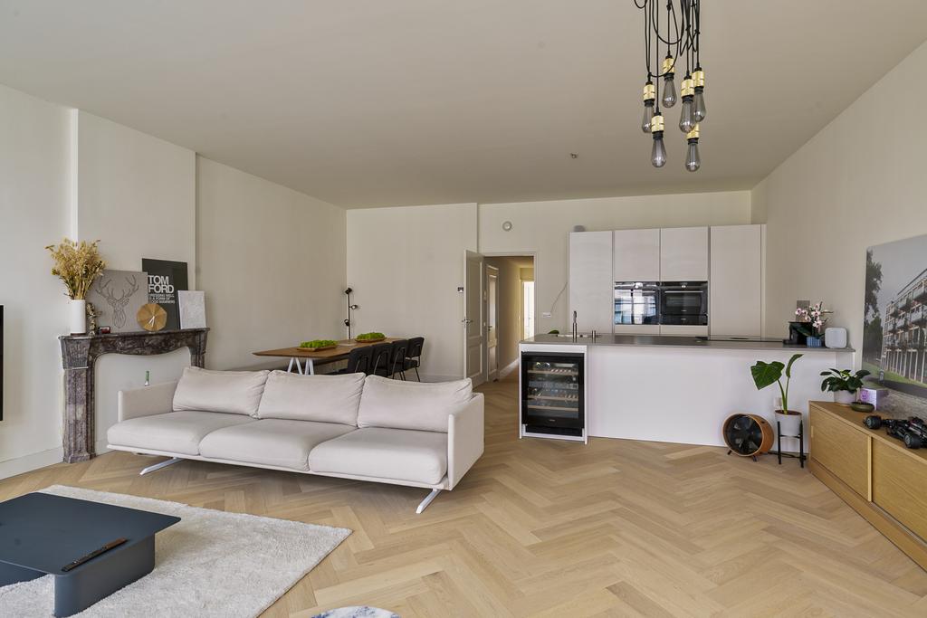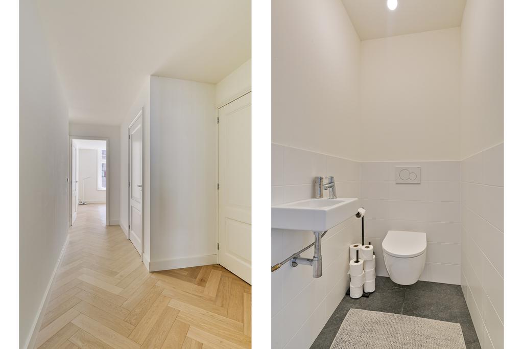 1e Verdieping (woonverdieping): entree, hal met toilet voorzien van wandcloset en fonteintje. Riante woonkamer aan de voorzijde met uitzicht over de markt, tot in de puntjes afgewerkt! Moderne en luxe Siematic keuken met kook/spoel schiereiland, voorzien van (Bora) inductiekookplaat met geïntegreerde afzuiging, stoomoven, combi-oven, vaatwasser, koelkast, vriezer, klimaatkast en Quooker. Twee ruime slaapkamers ter grootte van circa 25,5 m² en 16 m², beiden strak afgewerkt. Moderne badkamer voorzien van ligbad, aparte douche en designer wastafelmeubel. Zowel de wanden als de vloer zijn geheel betegeld en boven de waskom hangt een grote, ronde spiegel. Inpandige berging/installatieruimte met cv-opstelplaats en WTW-installatie.