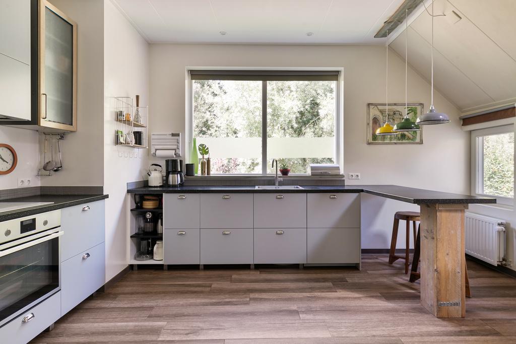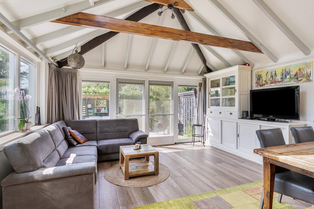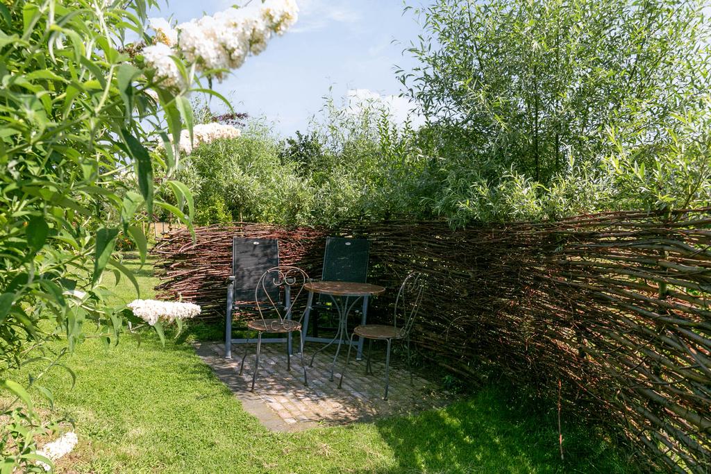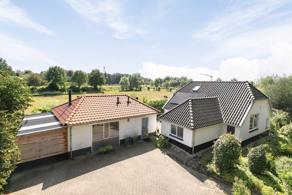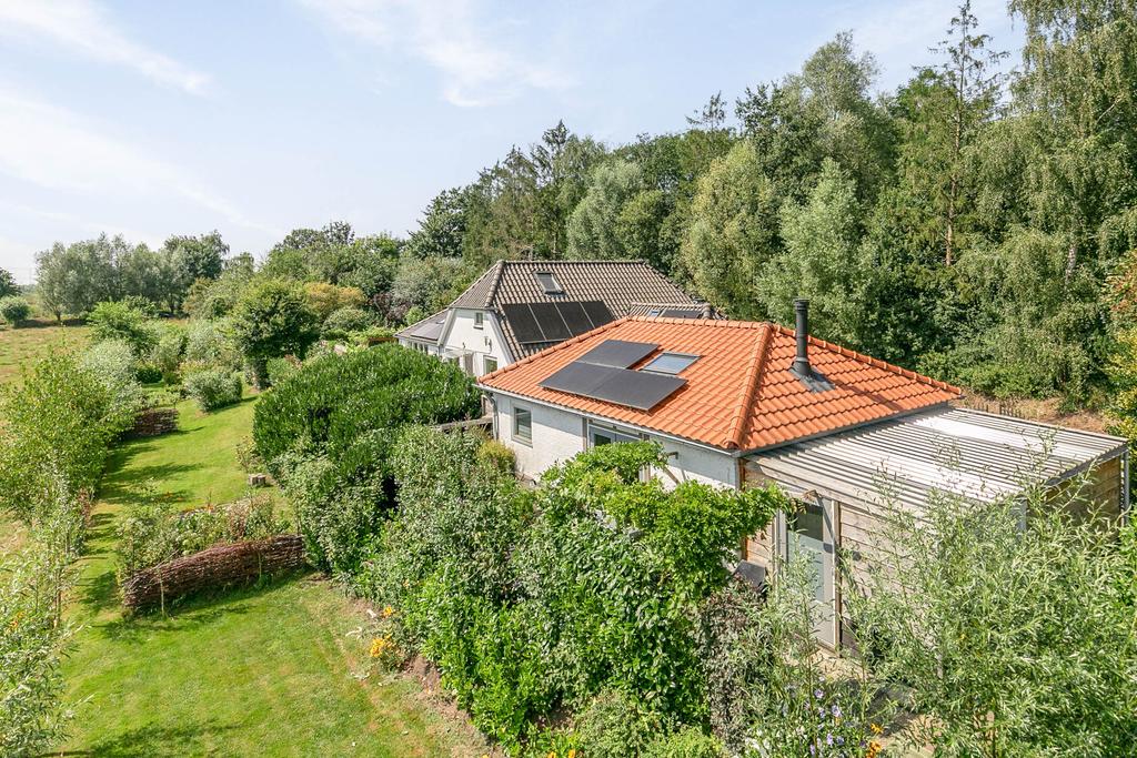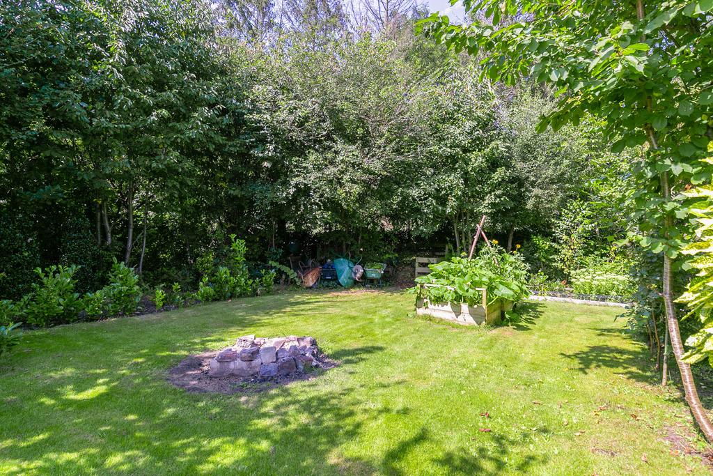 De prachtig aangelegde tuin rondom het huis biedt meerdere zitjes, een fraai gazon, kleurrijke borders, een houtopslag, een houten overkapping, een grondwaterpuls en uitzicht over het aangrenzende weiland. Voor de woning bevindt zich een ruime oprit met voldoende parkeergelegenheid op eigen terrein. Naast de woning is een (fietsen)schuur met voldoende opbergruimte voor tuin- en gereedschap en toegang tot de tuin.