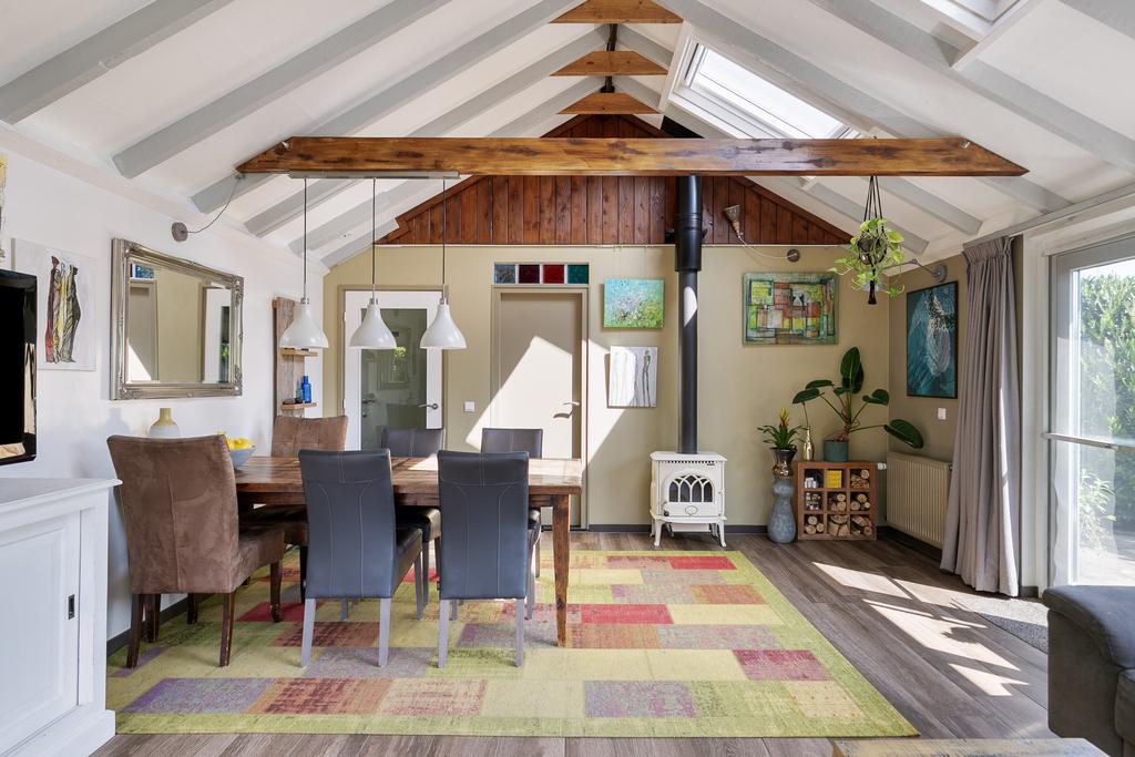 Bijgebouw: het bijgebouw beschikt over een woonkamer met eigen CV, openslaande deuren naar een besloten terras en een houtkachel. De keuken is uitgerust met een oven, inductiekookplaat, afzuigkap en een aansluiting voor een vaatwasser/wasmachine. Er is ruimte voor een eettafel. De moderne badkamer heeft een hangend toilet, wastafel, douche en handdoekradiator. Daarnaast zijn er twee (slaap)kamers van circa 9 m² en 17 m², waarvan de grootste is voorzien van een wastafel, extra wasmachineaansluiting en een deur naar het terras. Dit bijgebouw is ideaal als gastenverblijf of praktijkruimte!