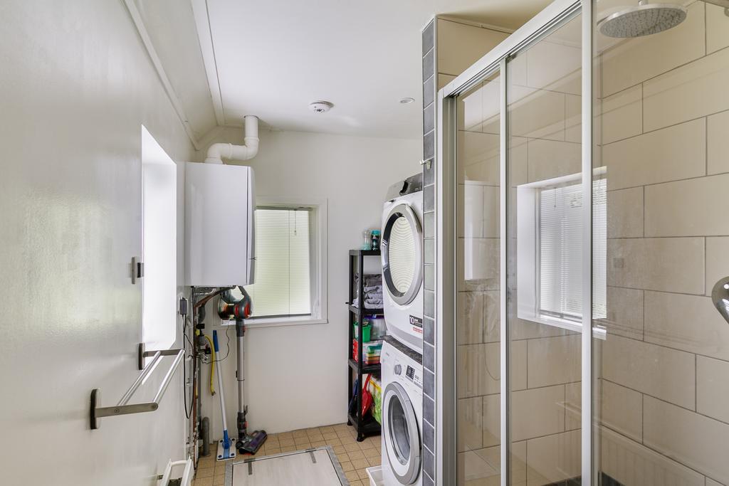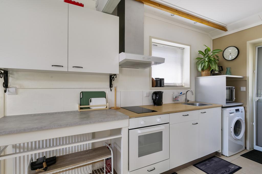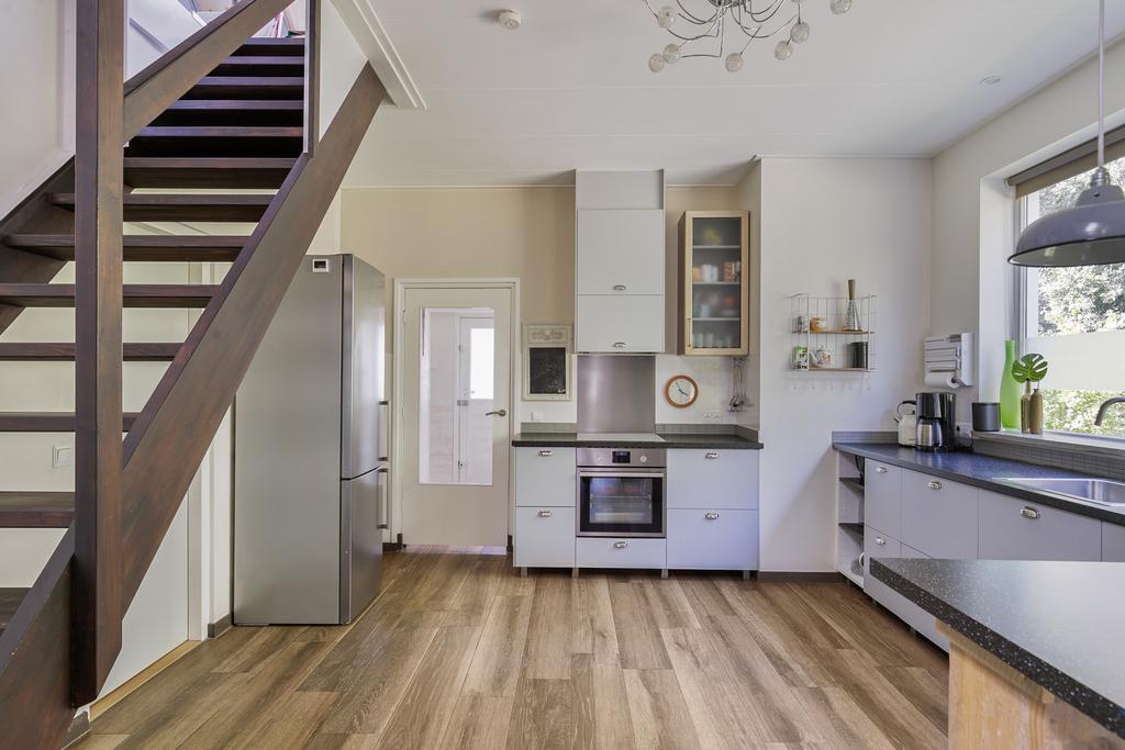 Begane grond: je komt binnen via een overdekte entree, waarna de hal je naar het toilet met fonteintje leidt. De ruime woonkamer heeft openslaande deuren naar het westen, een deur naar het zuiden, een sfeervolle houtkachel, en een prachtig zicht op de kap. Door de vele ramen, waaronder dakramen, is de woonkamer heerlijk licht. De royale woonkeuken is voorzien van een inductiekookplaat, afzuigkap, oven, vaatwasser en een eetbarretje. Via een vaste trap bereik je de eerste verdieping. Er zijn drie slaapkamers van ongeveer 10 m², 12 m² en 14 m², waarvan twee met een eigen wastafel. Eén van de slaapkamers biedt toegang tot de badkamer met ligbad, douche, wastafel en toilet. Verder is er een wasruimte met inloopdouche, aansluitingen voor wasapparatuur, de cv-opstelplaats, meterkast en een luik naar een kleine kelder met water- en gasmeter. De woonkamer, hal, toilet en woonkeuken zijn afgewerkt met porseleinen houtlooktegels en vloerverwarming.