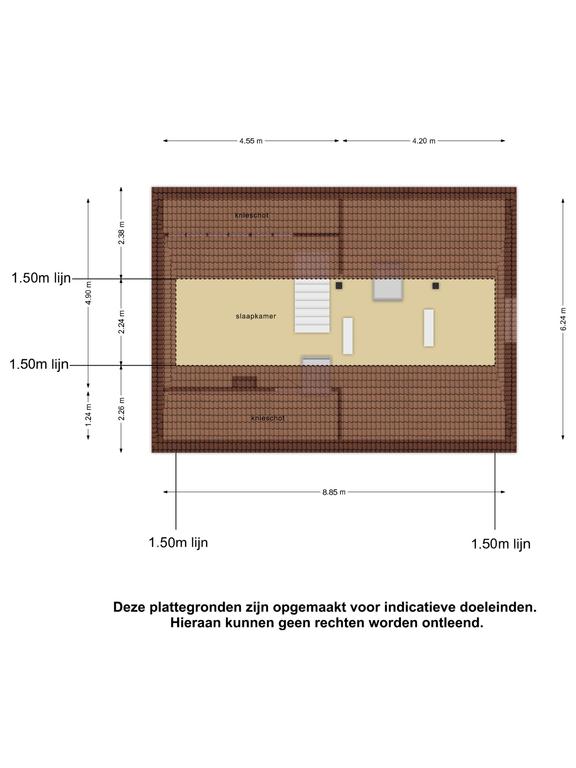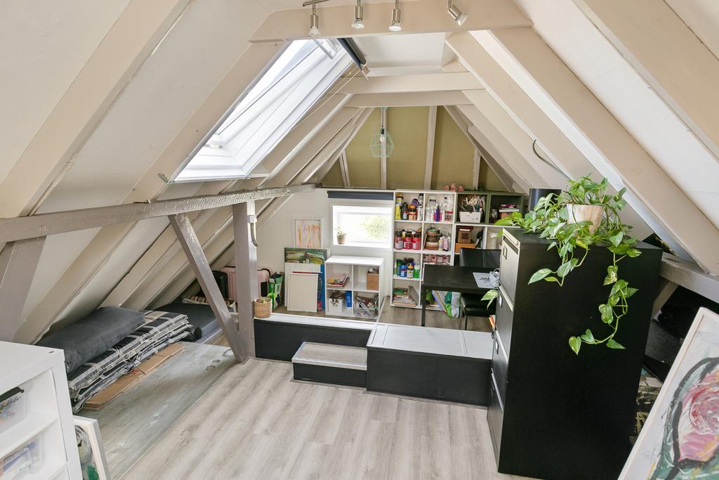 1e Verdieping: de open zolderruimte onder de kap fungeert als hobbyruimte en slaapkamer, die verrassend licht is dankzij twee dakramen.