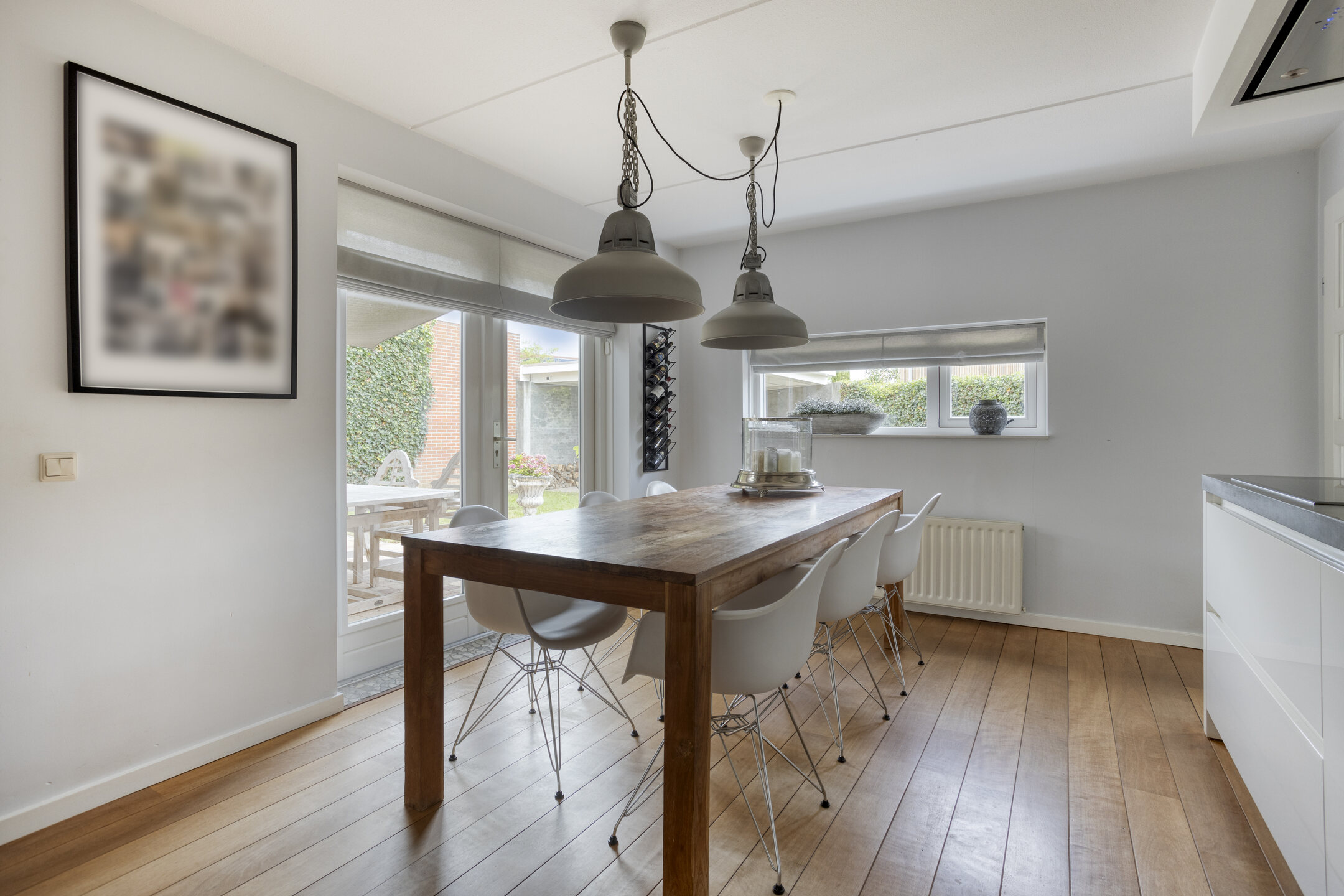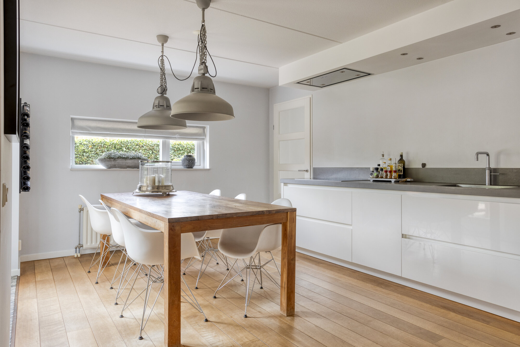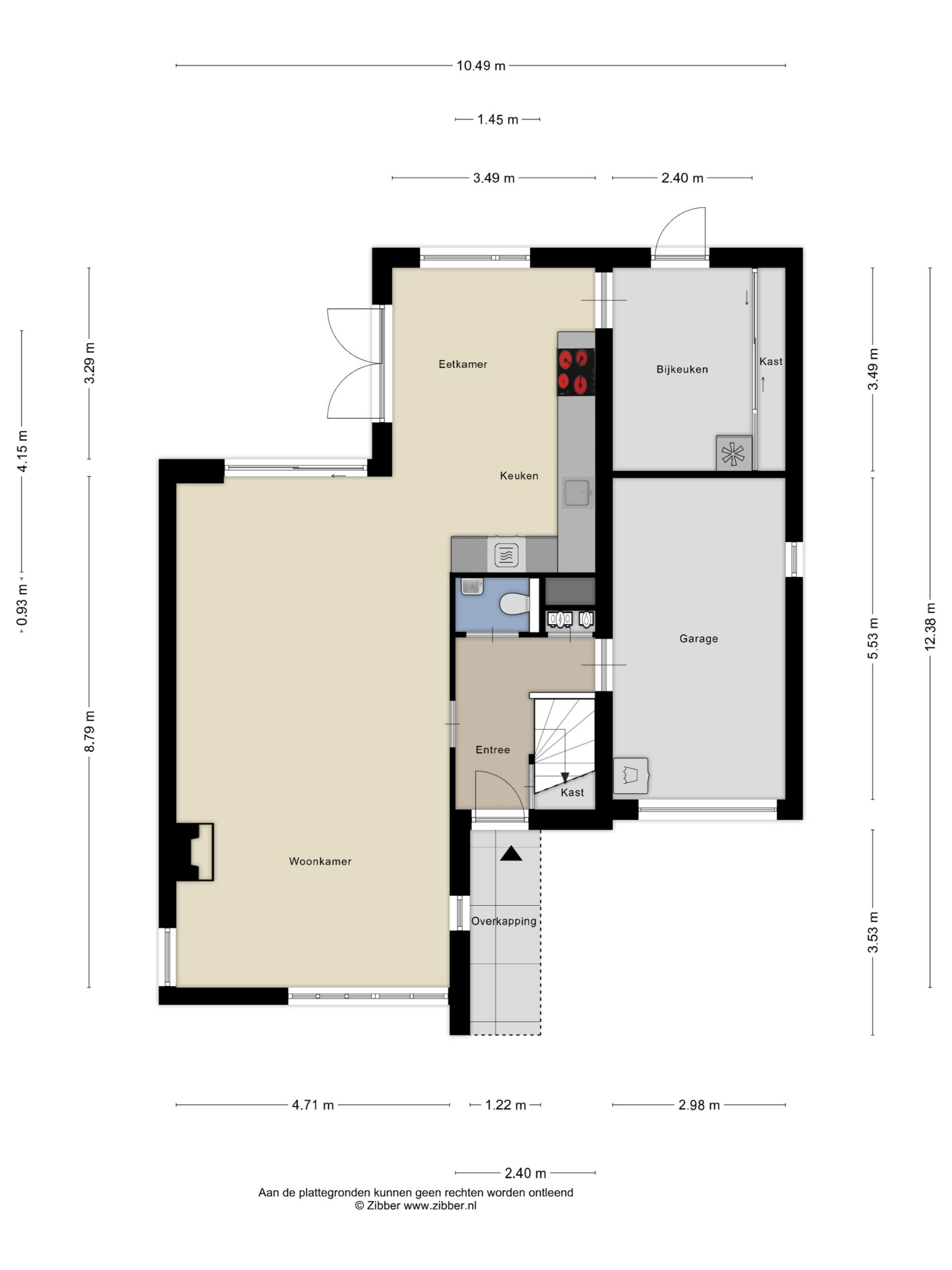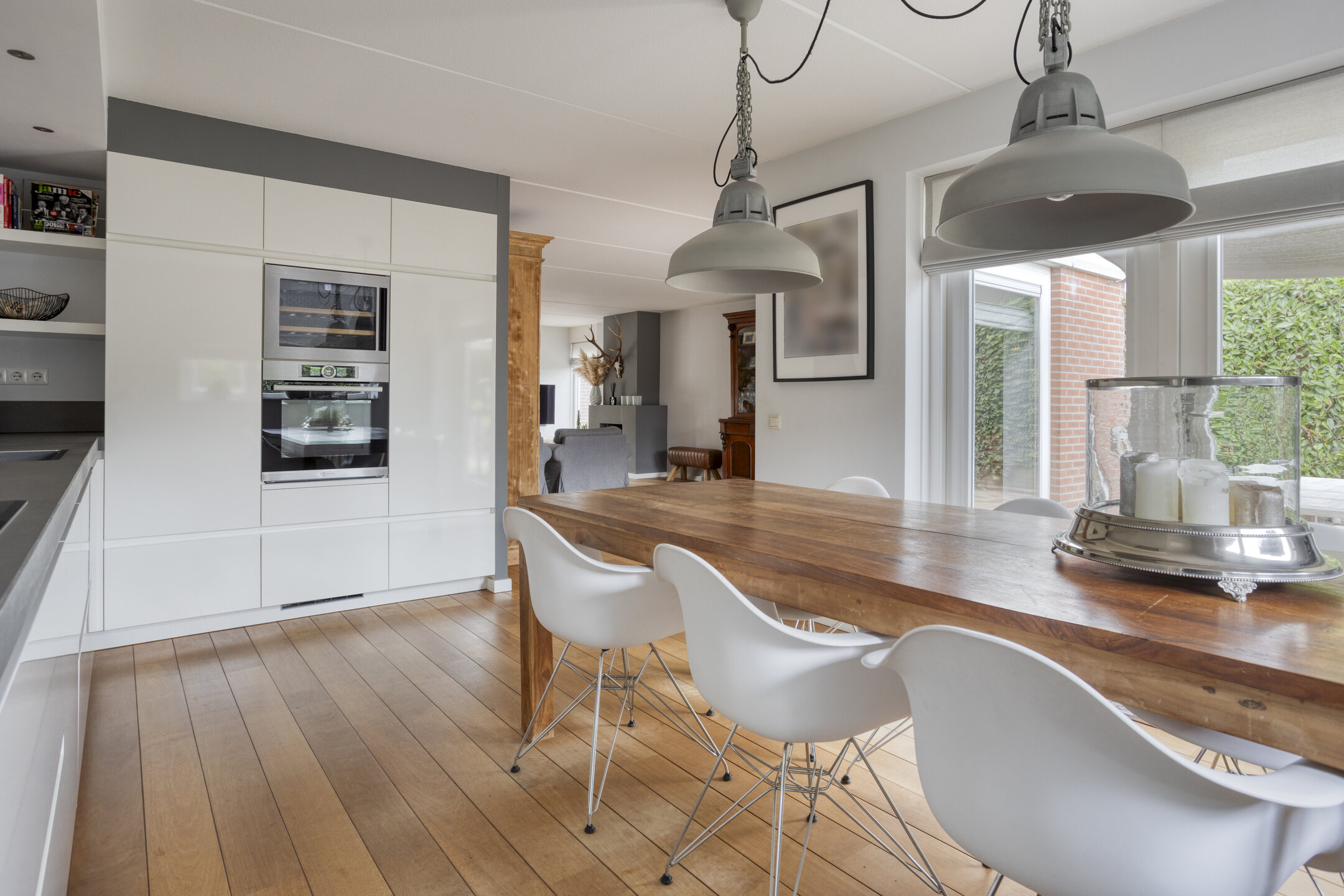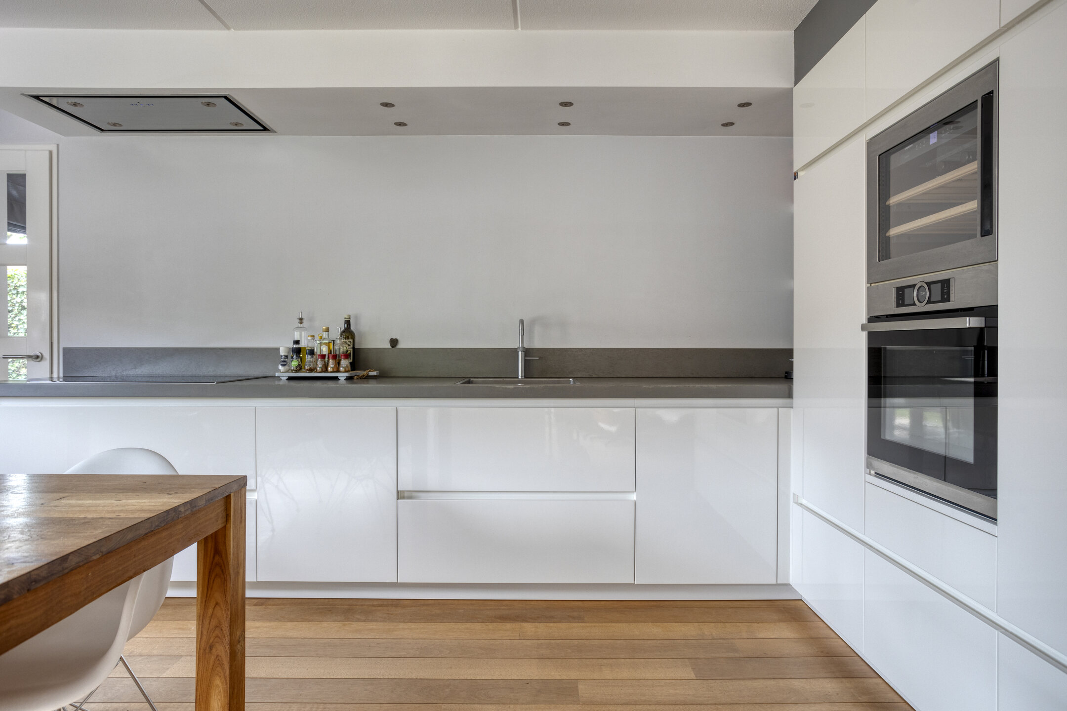 Begane grond: entree, ruime hal met meterkast, trapkast en toilet voorzien van wandcloset en fonteintje. Riante, strak afgewerkte woonkamer voorzien van houten vloer. Aan de voorzijde is een gezellige zithoek voorzien van gestucte schouw met open haard en aan de achterzijde een (lees)hoek met schuifpui naar de achtertuin. Luxe half open woonkeuken met ruimte voor grote eettafel, voorzien van inductiekookplaat, afzuigkap, combi-oven, koelkast, vriezer, klimaatkast (wijnkoelkast), vaatwasser, Quookerkraan en deur naar de achtertuin. Aangebouwde bijkeuken tevens voorzien van tuindeur.