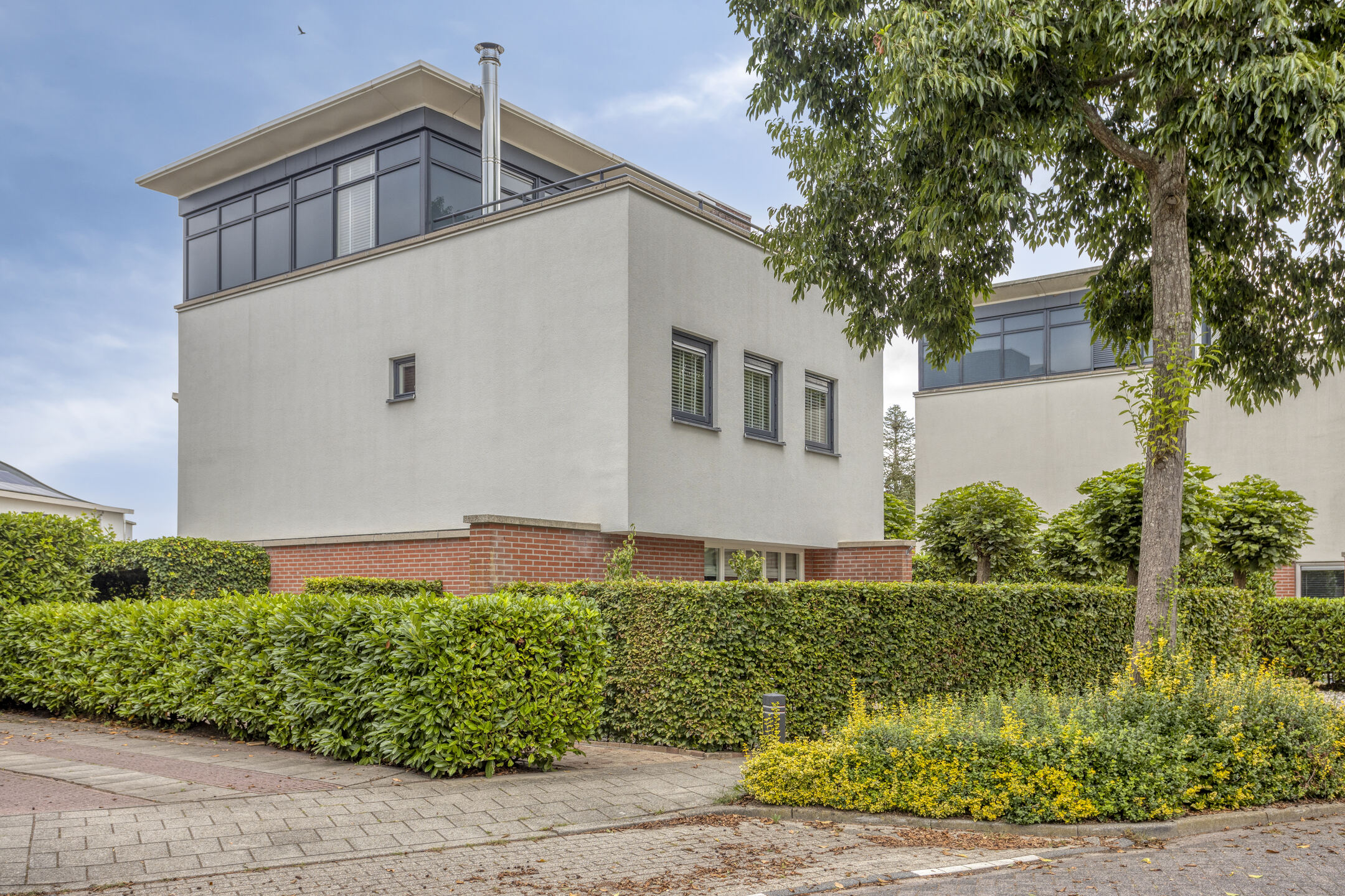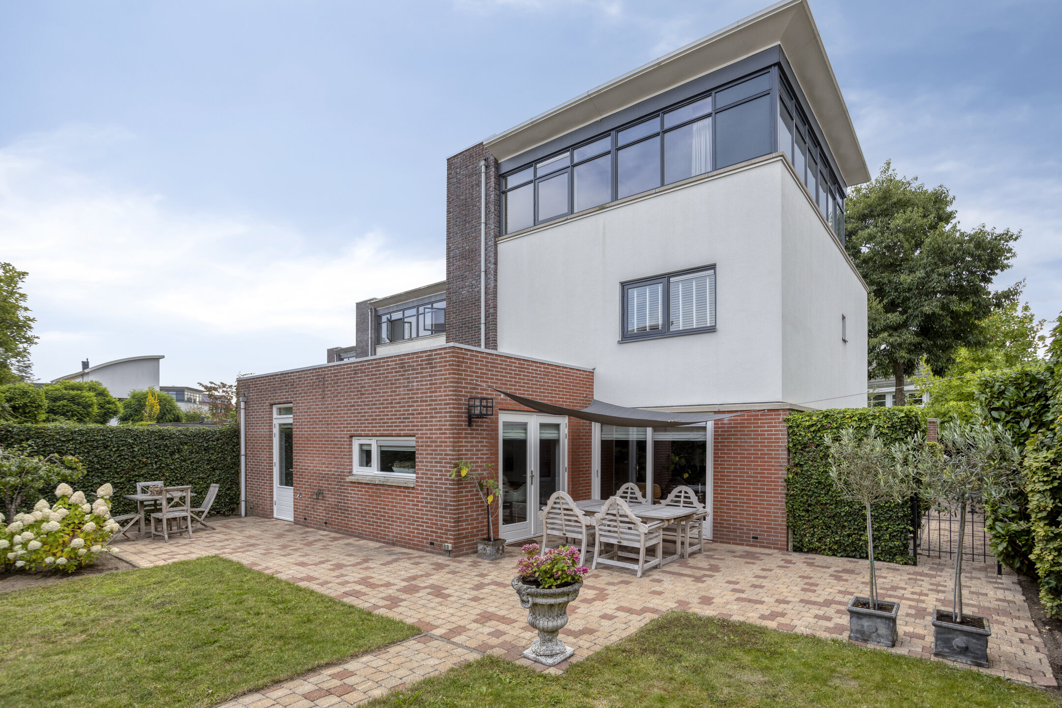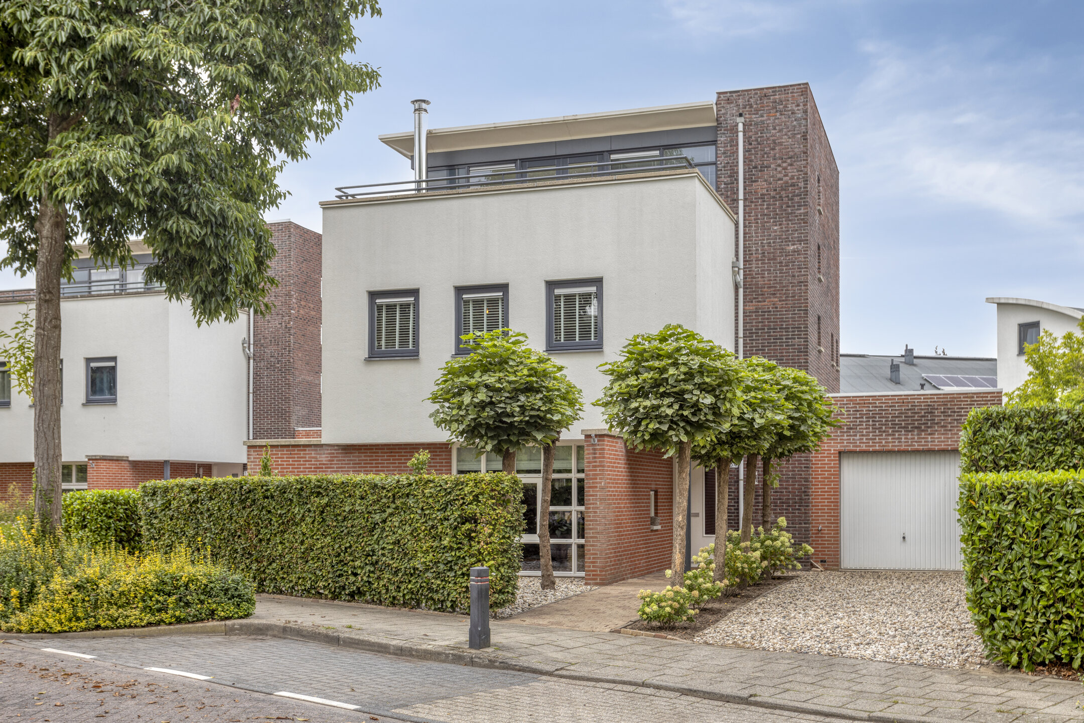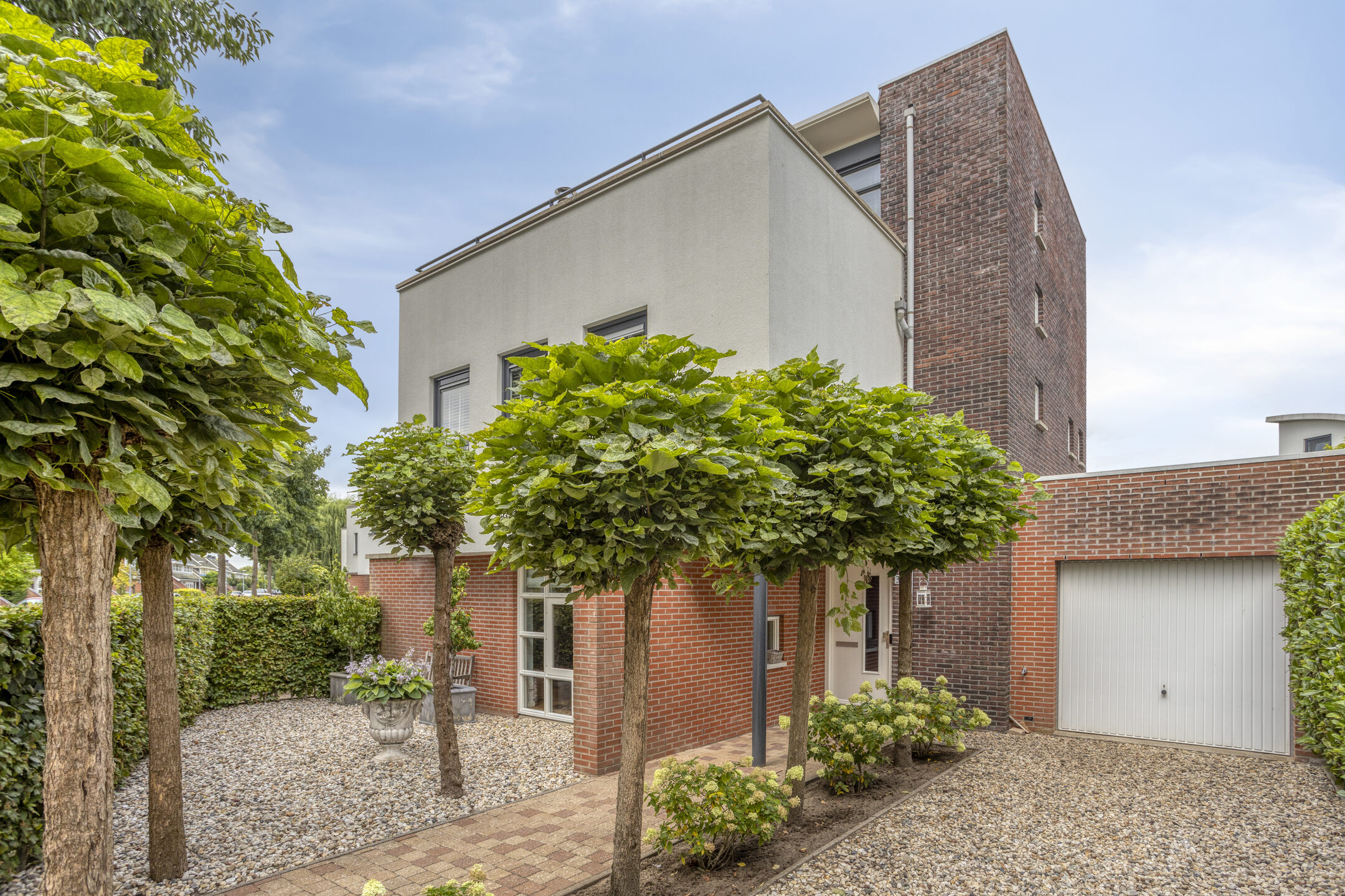 Keurig aangelegde achtertuin voorzien van een fraai terras aan de achtergevel, gazon, overkapping achterin en een achterom te bereiken langs de woning. Aan de voorzijde is een siertuin aanwezig, aangebouwde garage ter grootte van circa 16,5 m² en een oprit met parkeerruimte op eigen terrein!