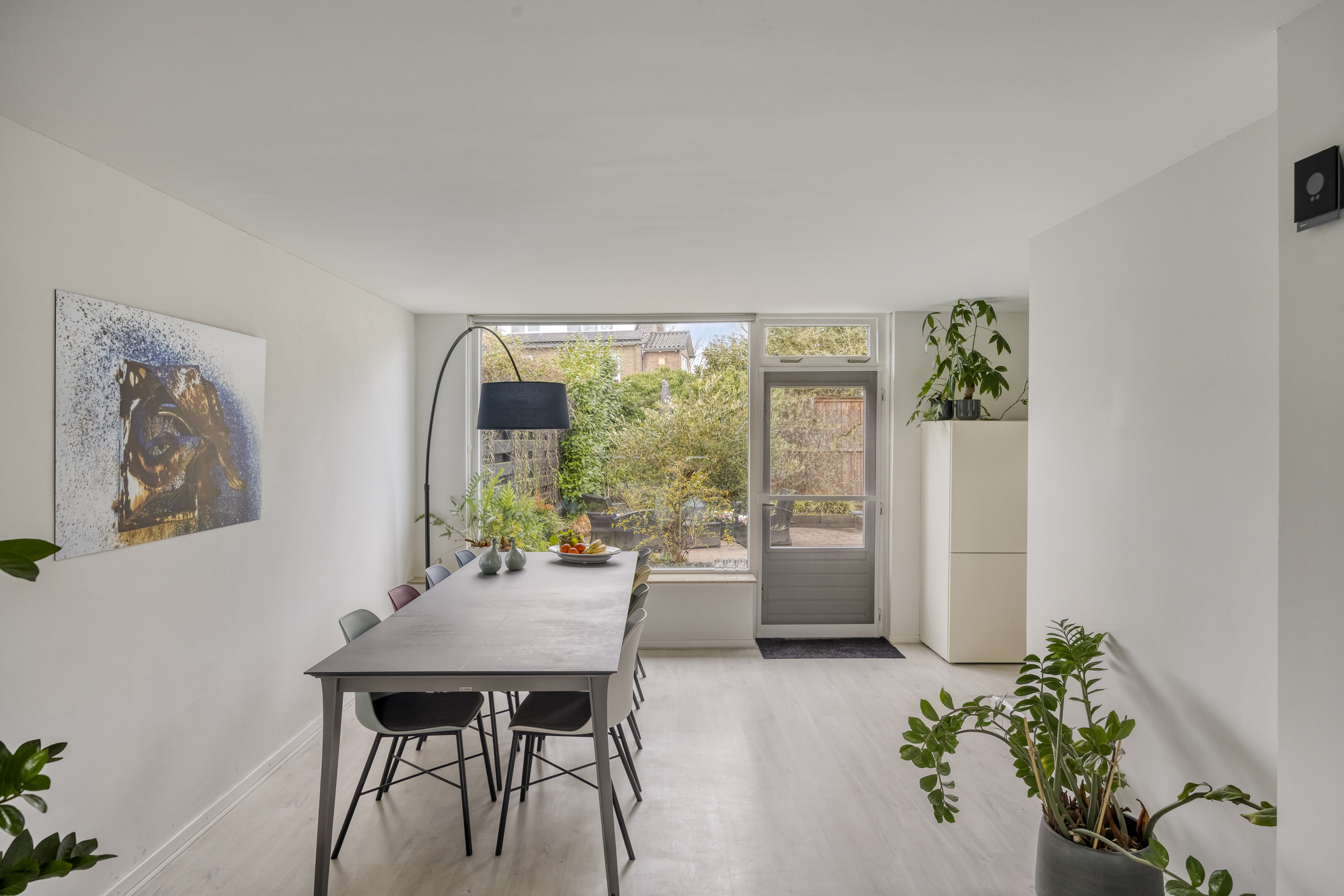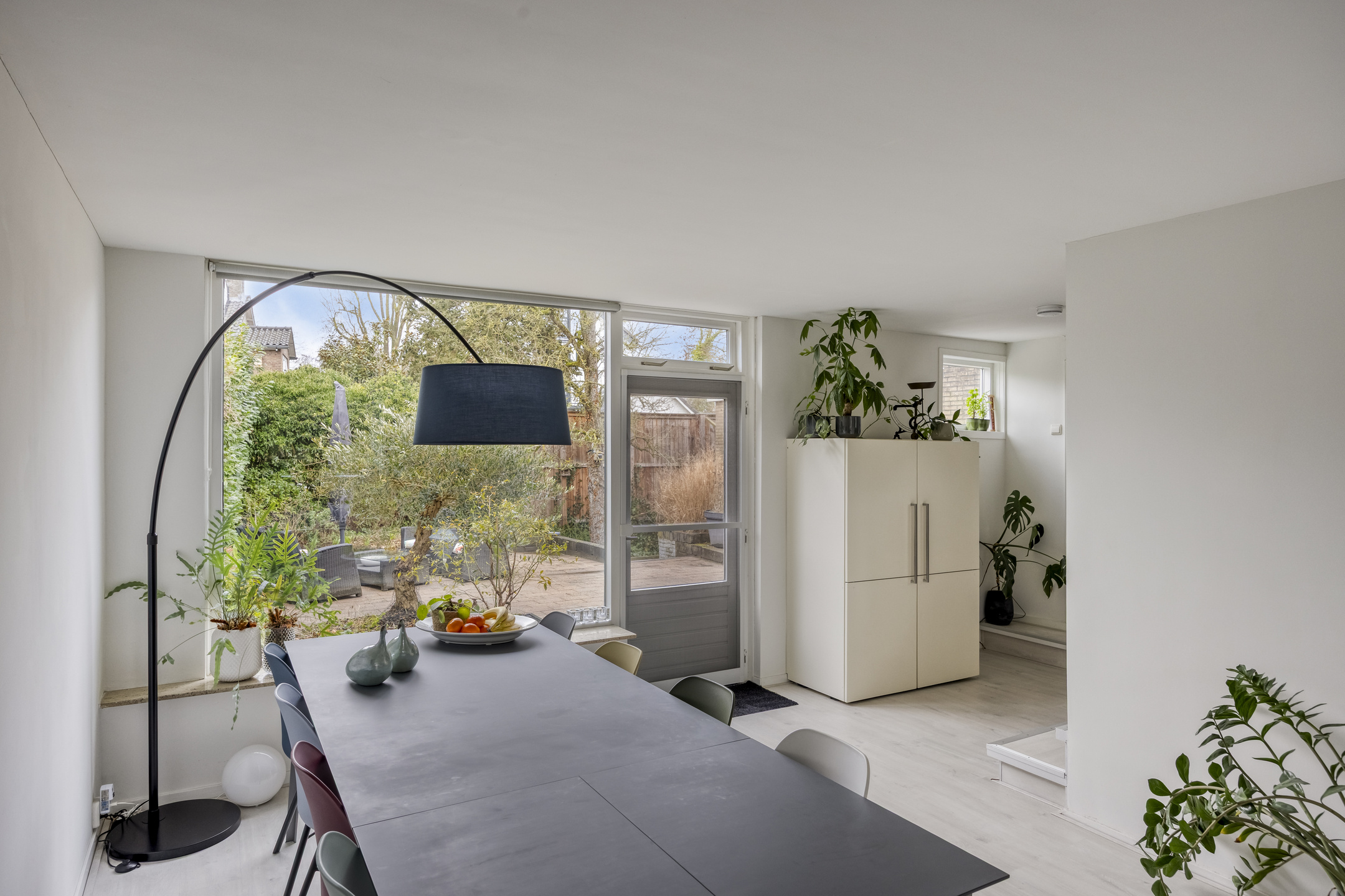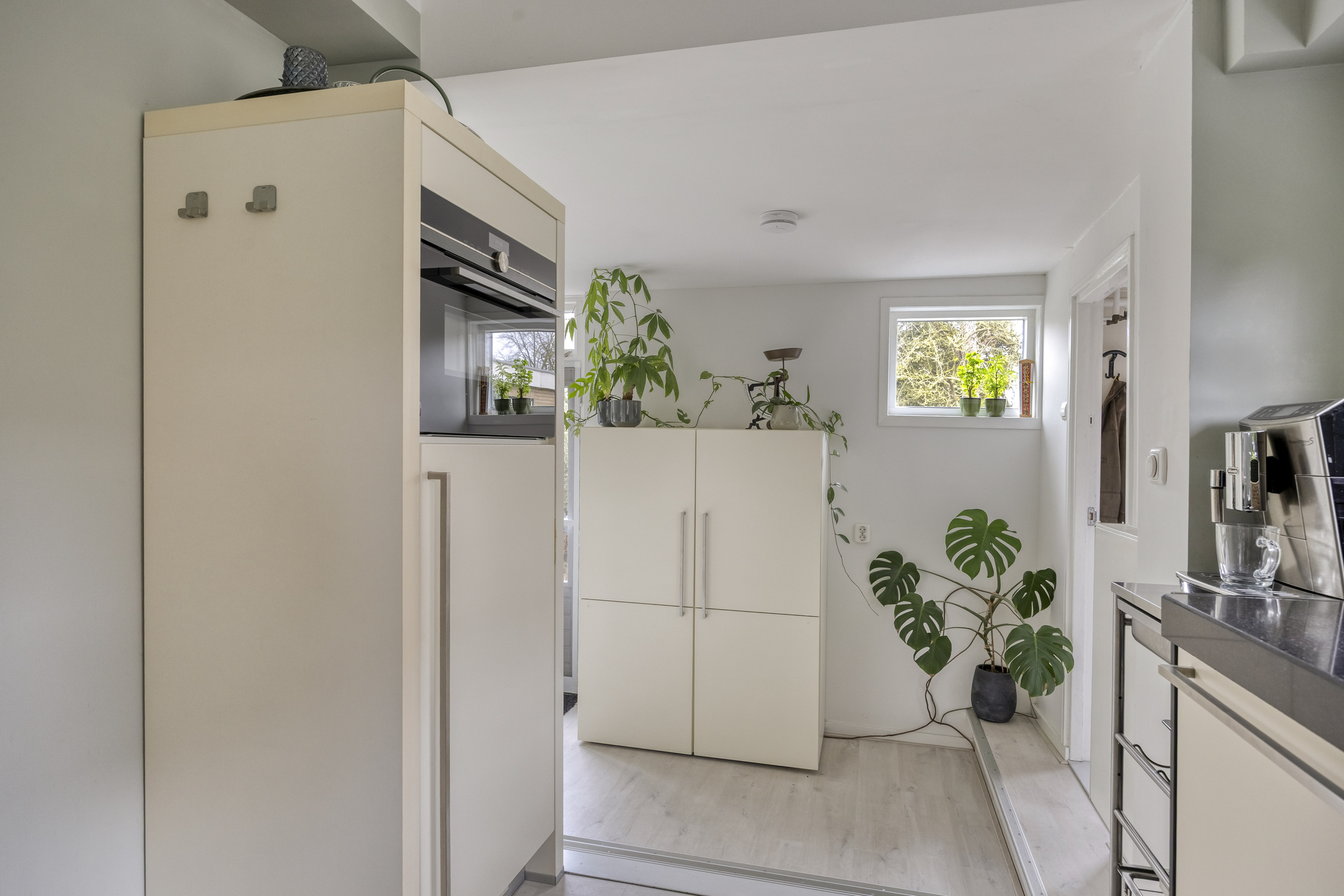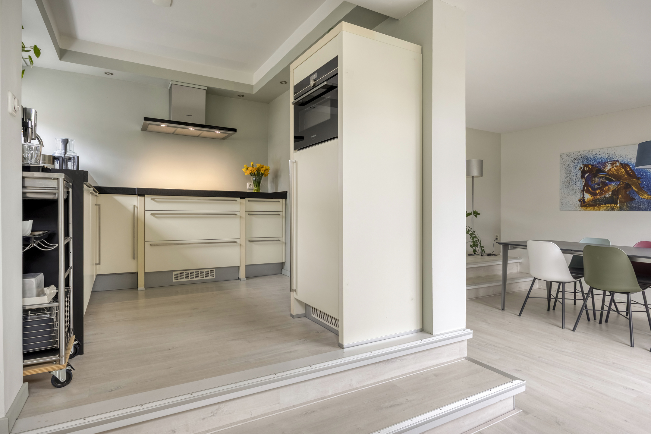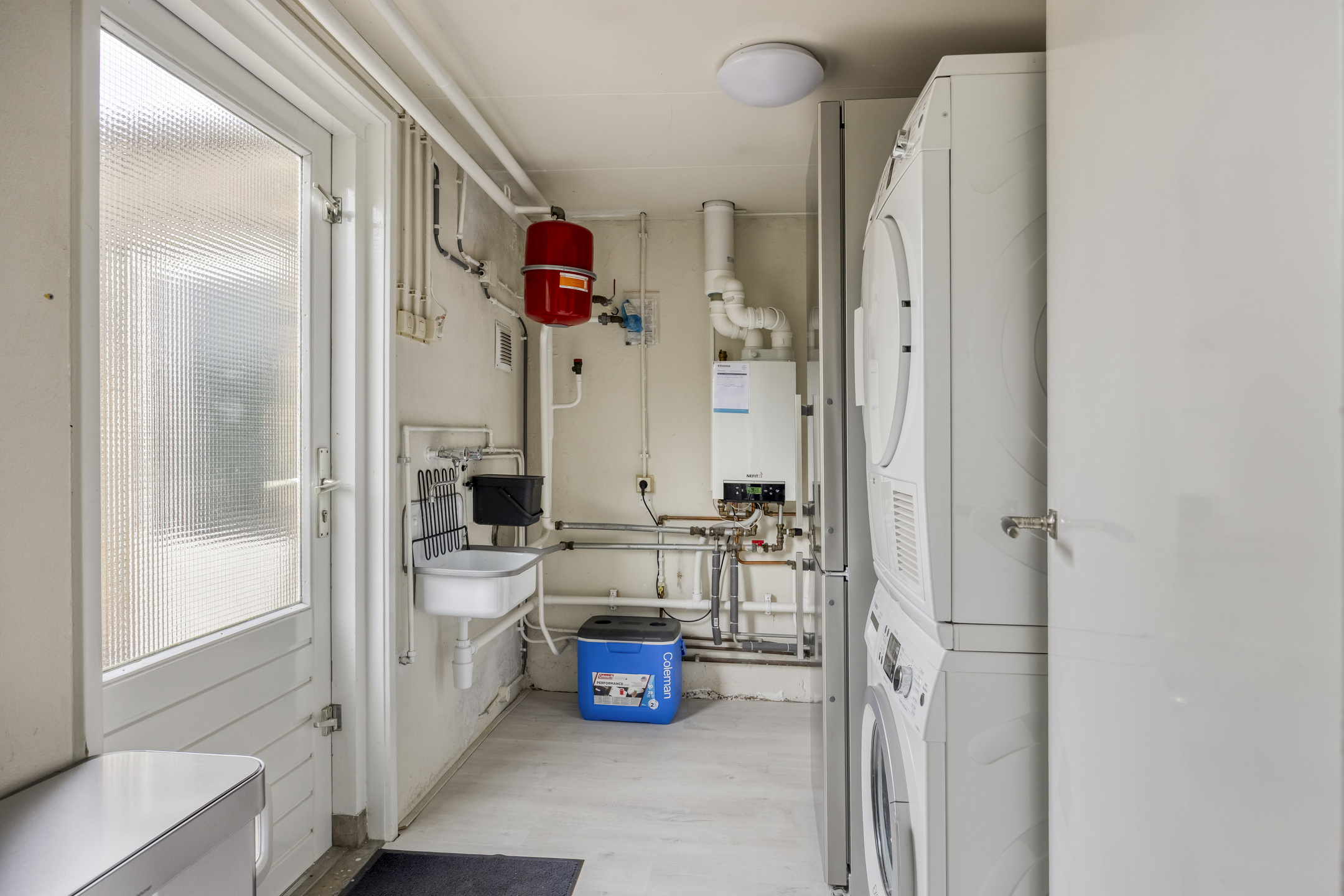 Begane grond: overdekte entree, ruime hal met meterkast/kelder, trapopgang naar de 1e verdieping, toilet en nisje met fonteintje (voorzien van close-in boiler). Volledig gestucte, uitgebouwde woonkamer met aan de voorzijde een lichte zithoek en aan de achterzijde de eethoek met vloerverwarming en deur naar de achtertuin. Moderne, half open keuken met inbouw ledverlichting, voorzien van vaatwasser, koelkast, combi-oven en inductiekookplaat. Bijkeuken met wasmachine-aansluiting, cv-opstelplaats, gootsteen en tuindeur.