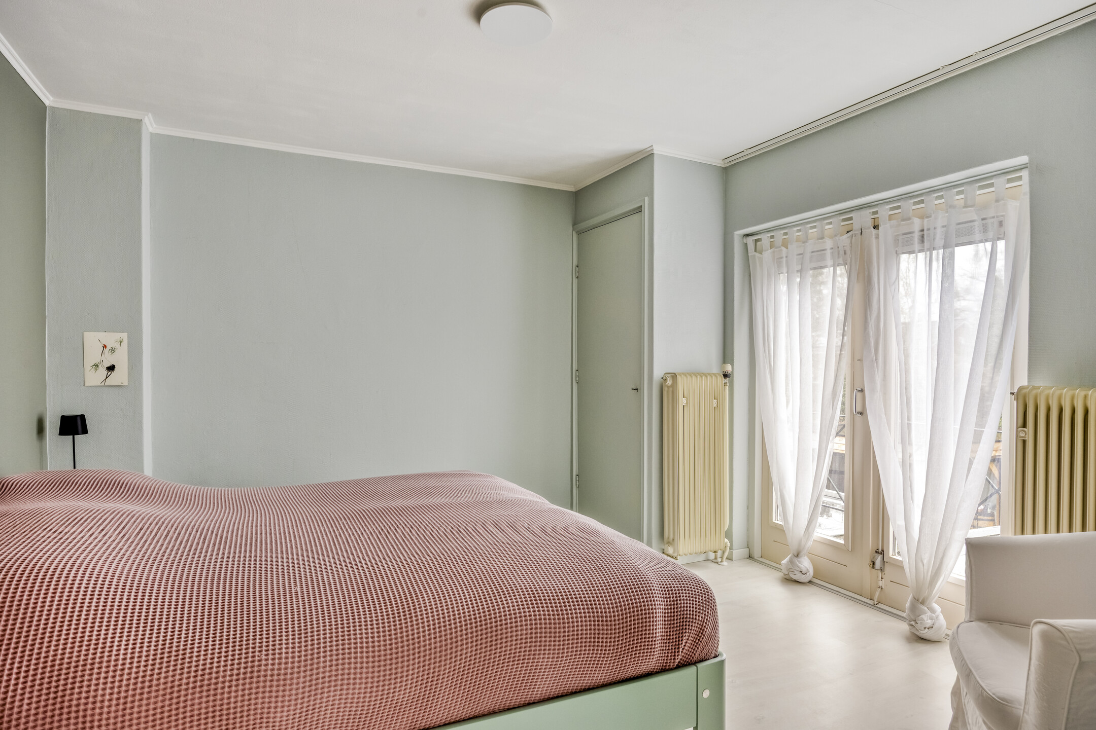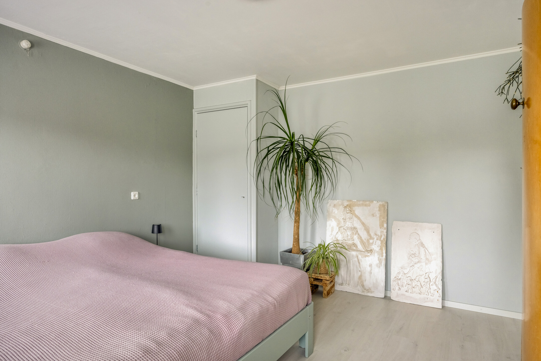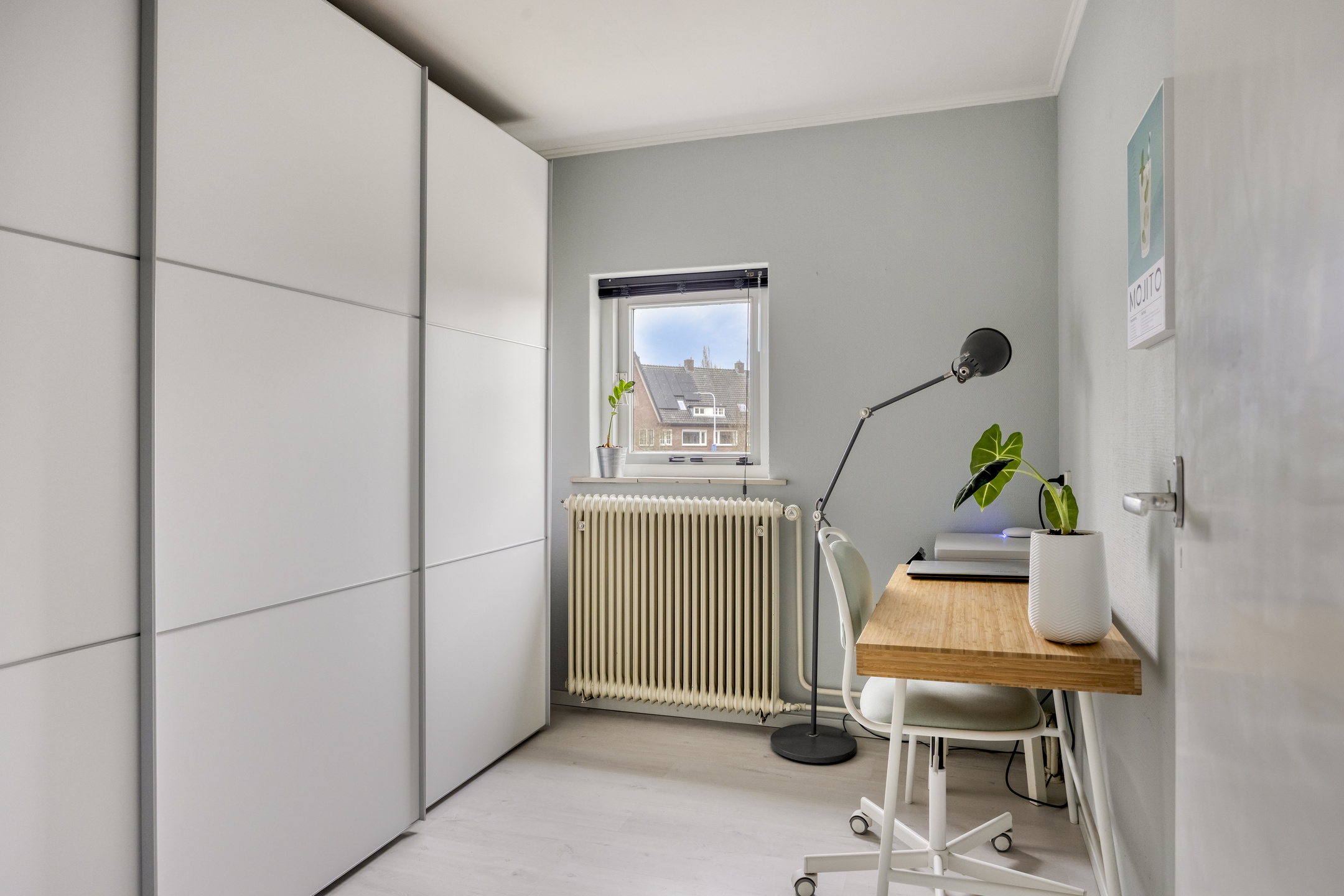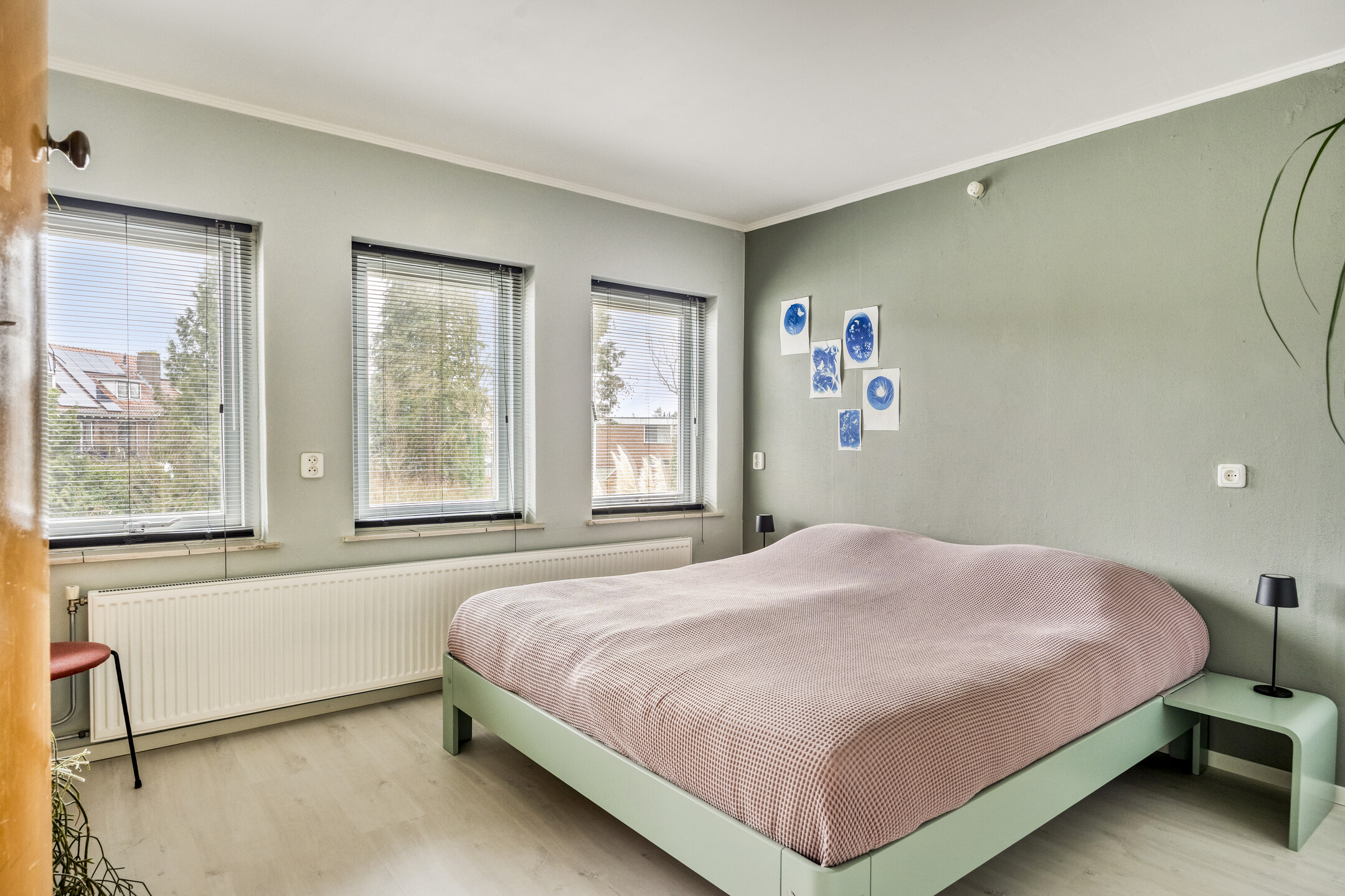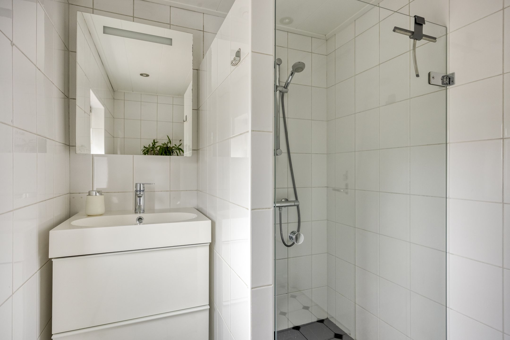 1e Verdieping: overloop. Drie slaapkamers ter grootte van circa 7 m², 12 m² en 13,5 m², waarvan de twee grote slaapkamers zijn voorzien van vaste kast. De slaapkamer aan de achterzijde biedt tevens toegang tot het balkon. Moderne badkamer voorzien van wandcloset, ruime douche en wastafelmeubel.