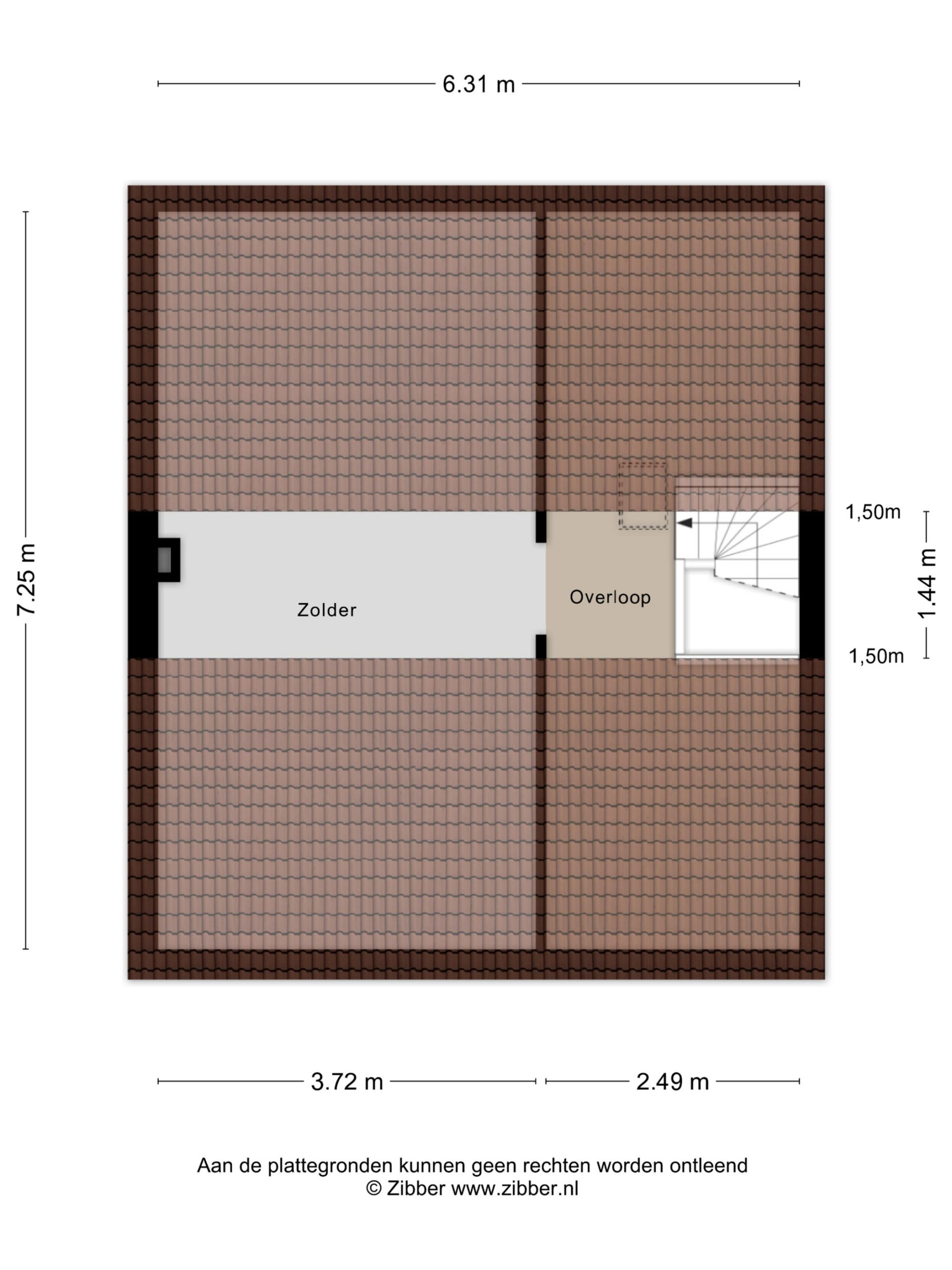 2e Verdieping: middels vaste trap te bereiken bergzolder met dakraampje.