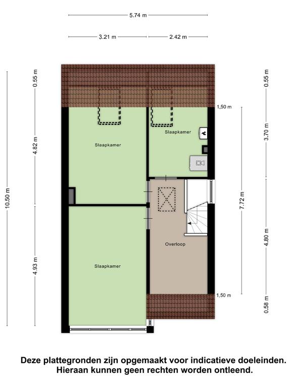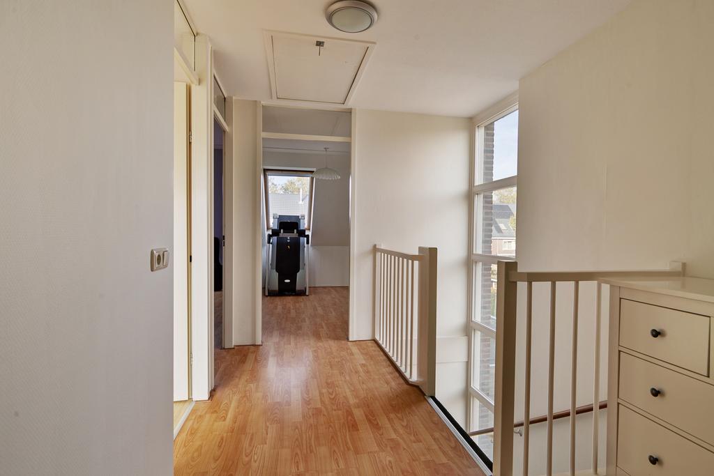 2e Verdieping: ruime overloop met vlizotrap naar de bergzolder. Drie (slaap)kamers ter grootte van circa 7 m², 13 m² en 16 m², alle voorzien van laminaatvloer. De kleine kamer is voorzien van wasmachine-aansluiting en cv-opstelplaats.