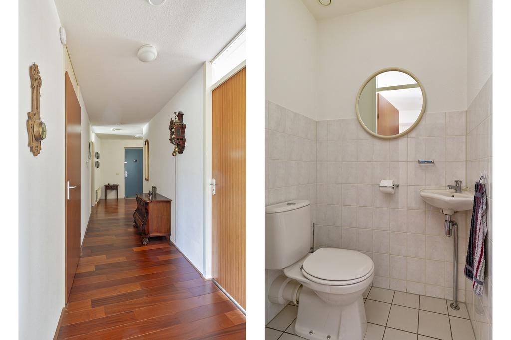 Begane grond: gezamenlijke entree met videofoon, brievenbussen en toegang tot het trappenhuis en de lift.