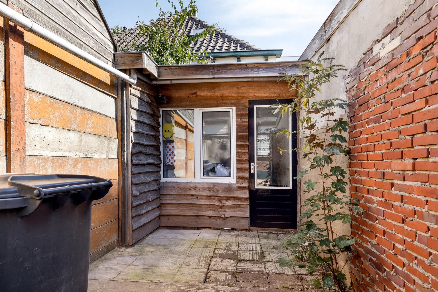 (Achter)tuin op het westen welke achterom te bereiken is maar niet vanuit de woning, met houten schuur ter grootte van circa 6 m². Parkeren is mogelijk in de straat op de openbare parkeervoorzieningen of in de achtertuin.