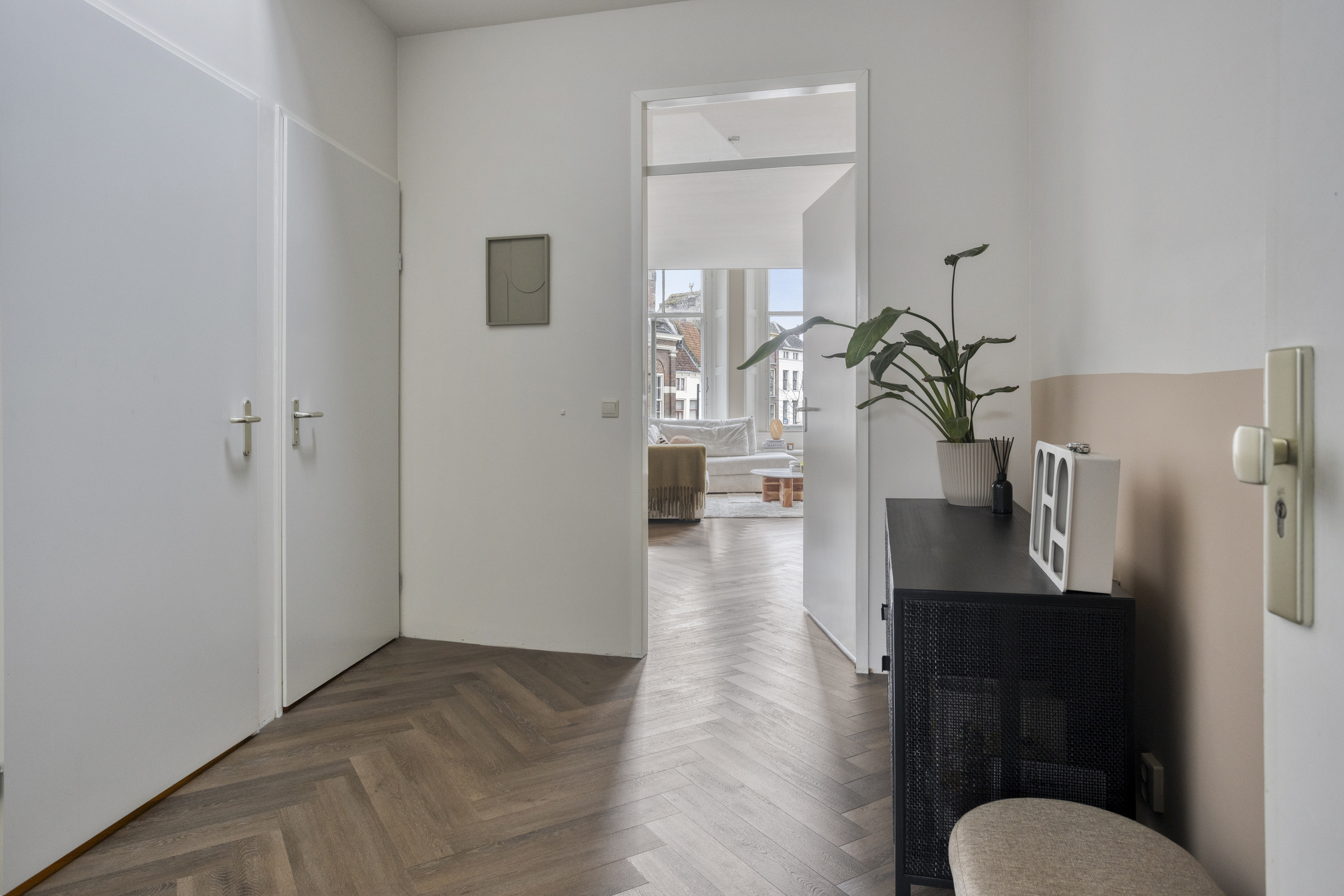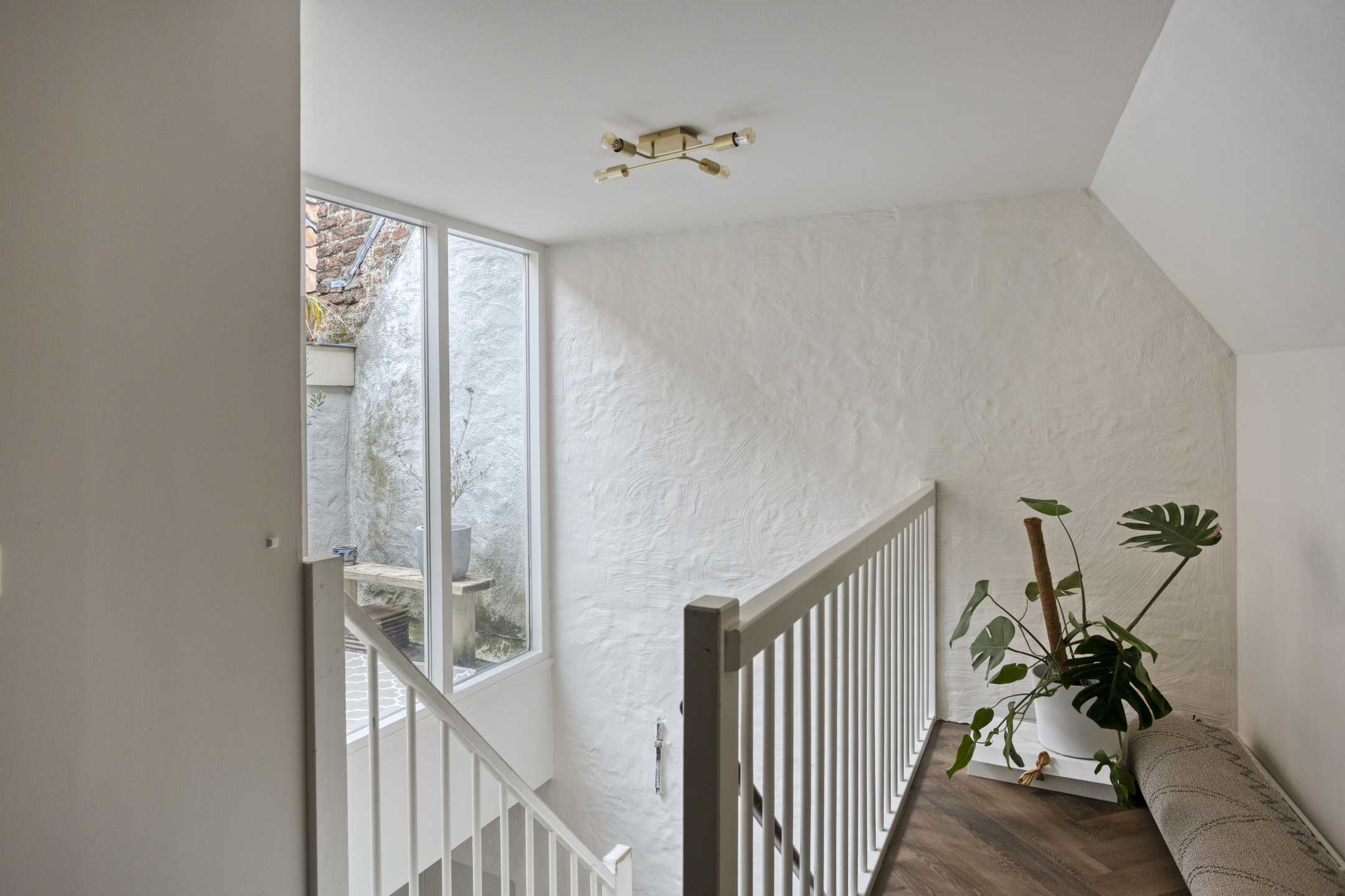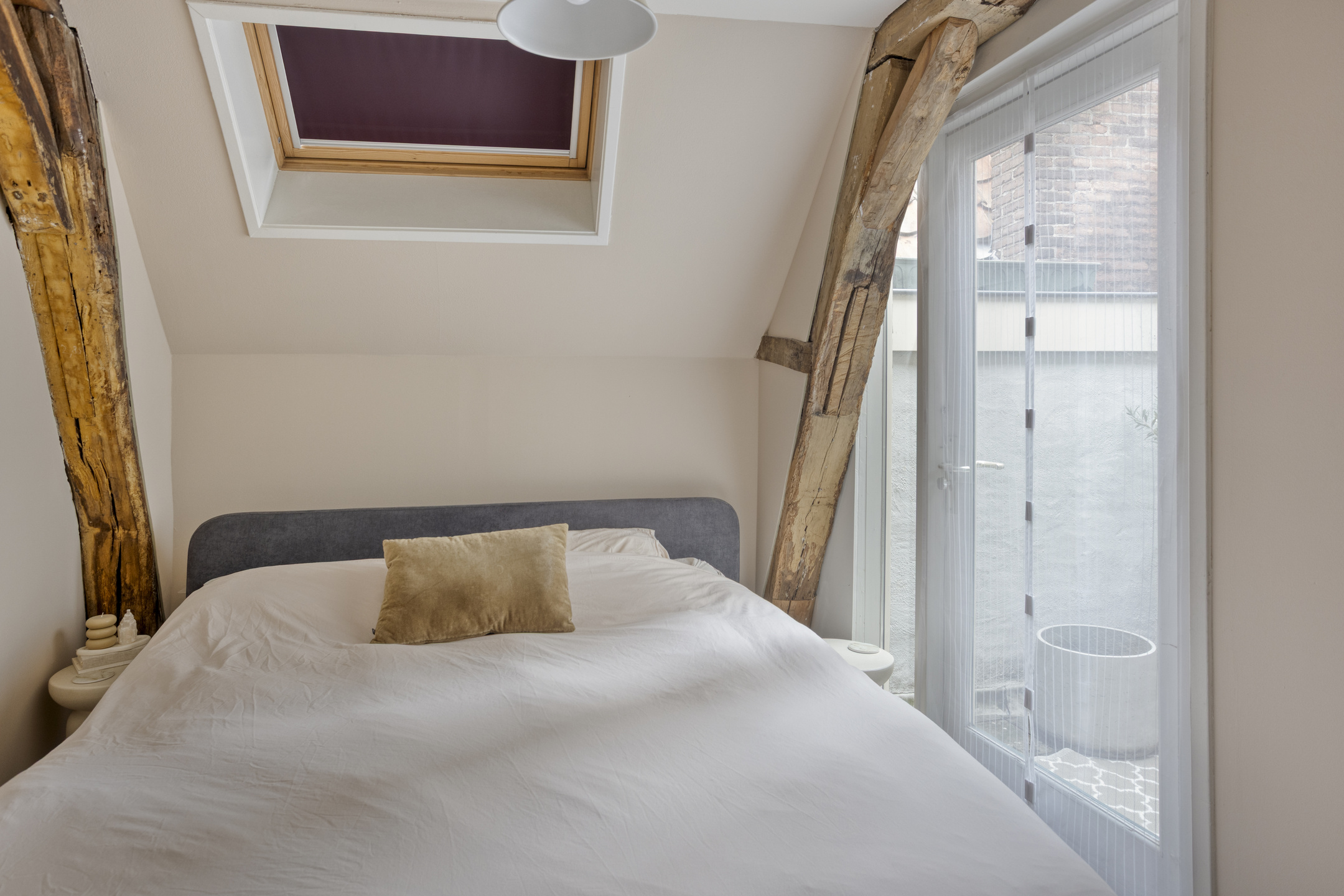 2e woonlaag: ruime overloop met vlizotrap naar de bergzolder en toegang tot de wasruimte/berging met cv-opstelplaats. Drie slaapkamers ter grootte van circa 8 m², 9,5 m² en 10,5 m², alle tot in de puntjes afgewerkt, maar toch met behoud van authentieke details. Nette badkamer voorzien van dakraam, met ruime douche, dubbel-wastafelmeubel en wandcloset. Besloten balkon/dakterras ter grootte van circa 4 m².