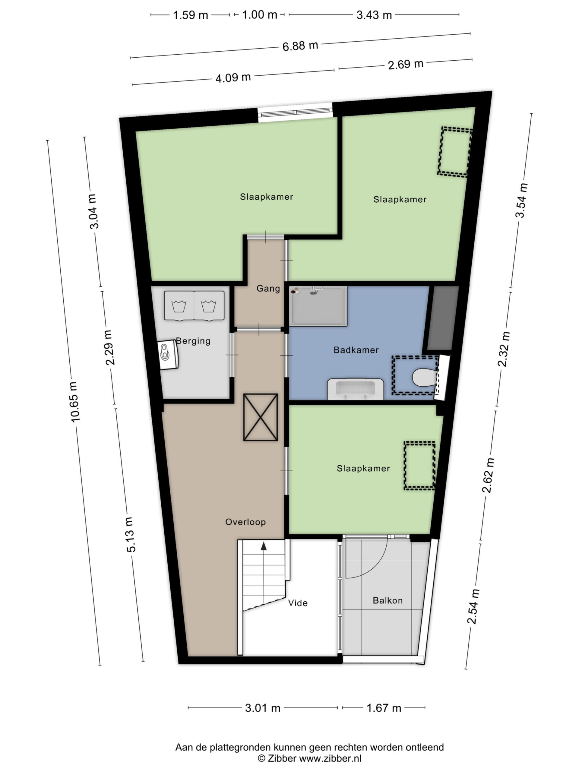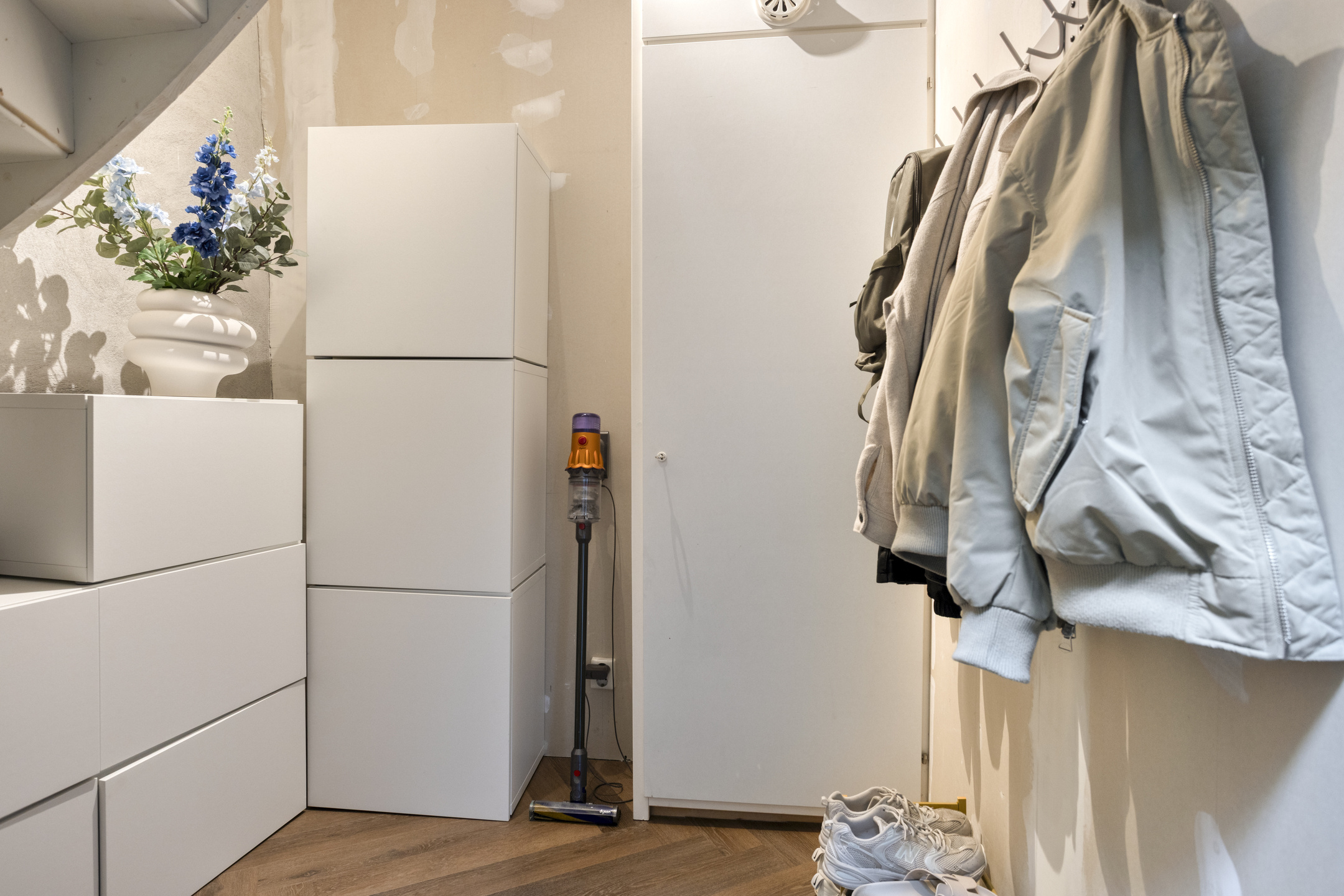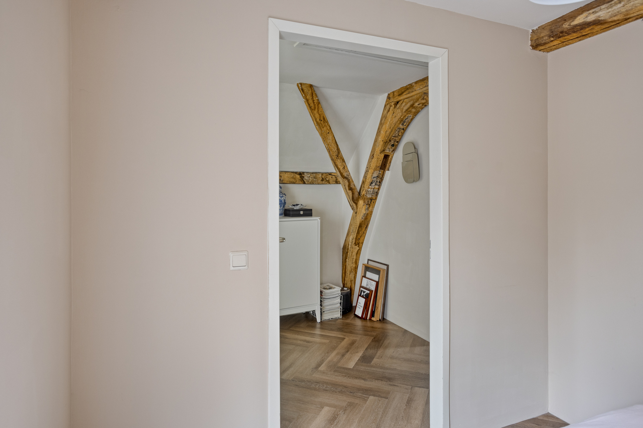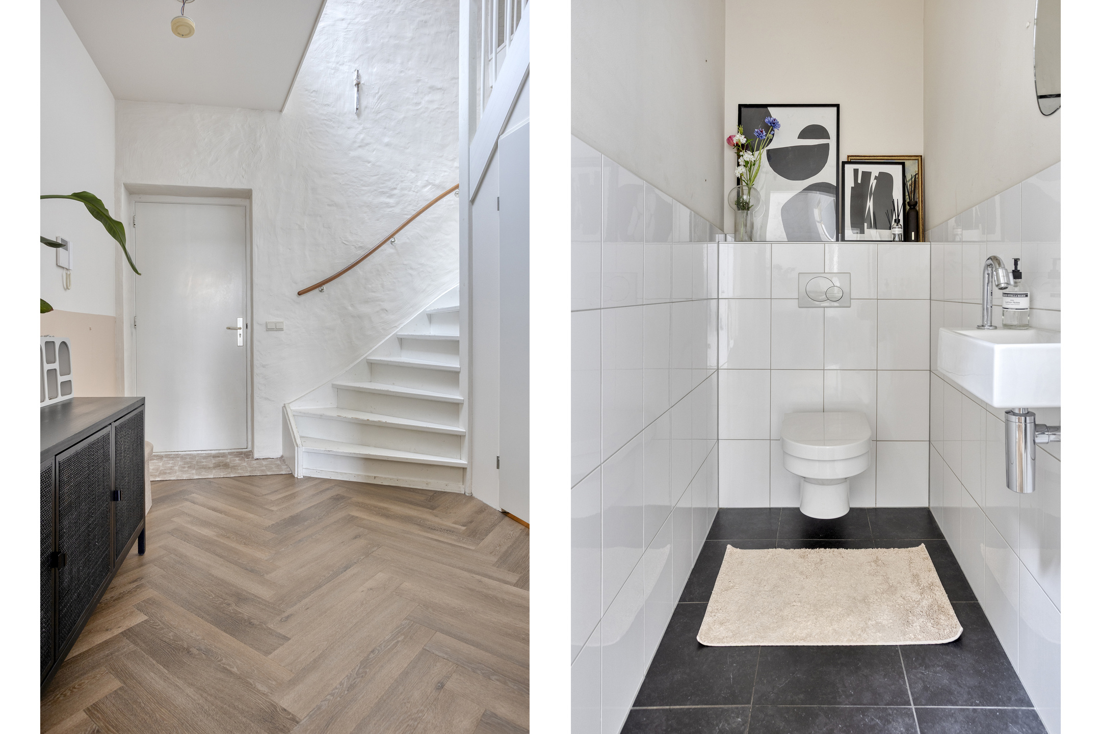 2e woonlaag: ruime overloop met vlizotrap naar de bergzolder en toegang tot de wasruimte/berging met cv-opstelplaats. Drie slaapkamers ter grootte van circa 8 m², 9,5 m² en 10,5 m², alle tot in de puntjes afgewerkt, maar toch met behoud van authentieke details. Nette badkamer voorzien van dakraam, met ruime douche, dubbel-wastafelmeubel en wandcloset. Besloten balkon/dakterras ter grootte van circa 4 m².