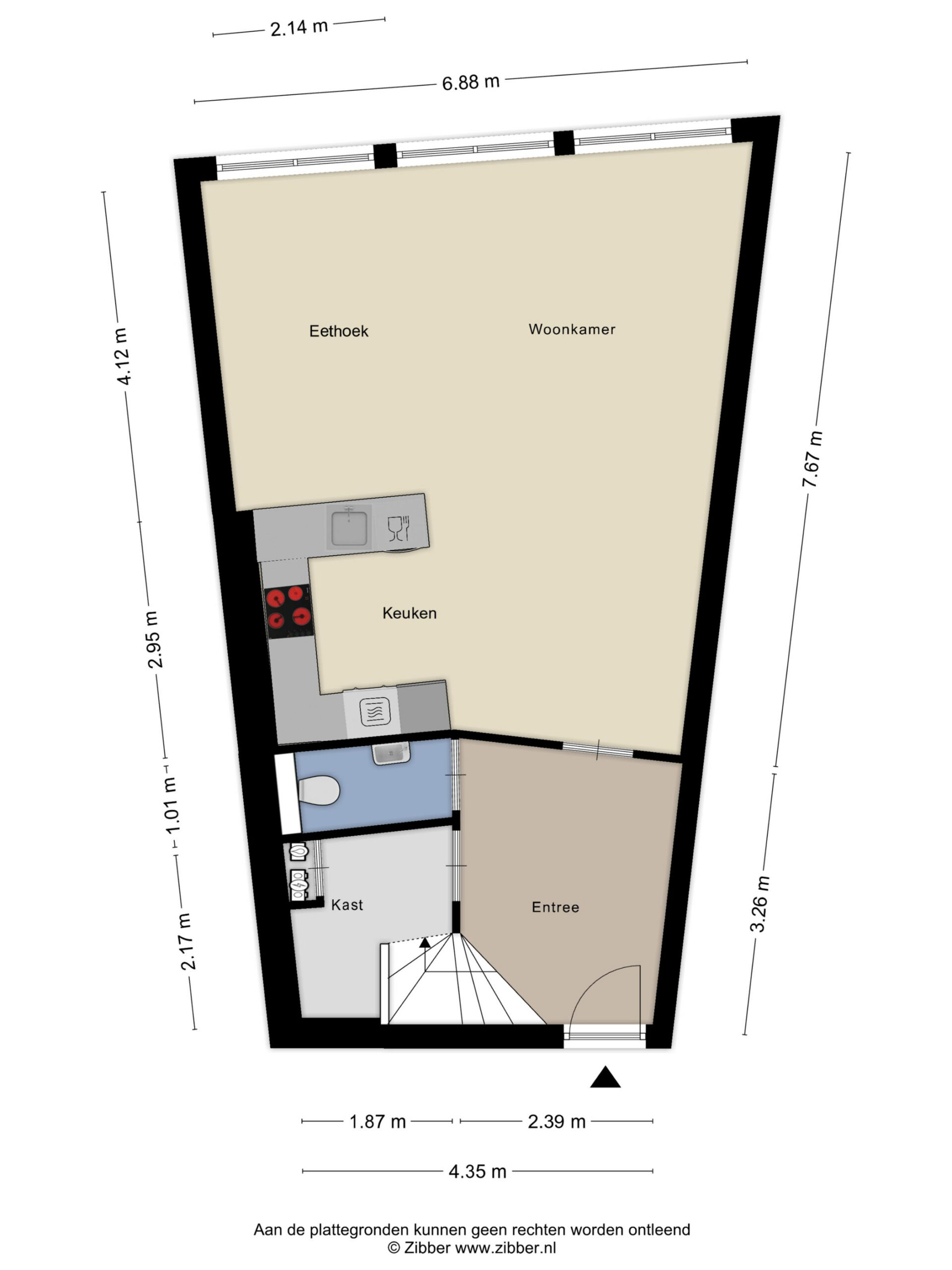 Begane grond: gemeenschappelijke entree met brievenbussen, trapopgang naar de woonverdieping en toegang tot de inpandige (privé)berging in de kelder.