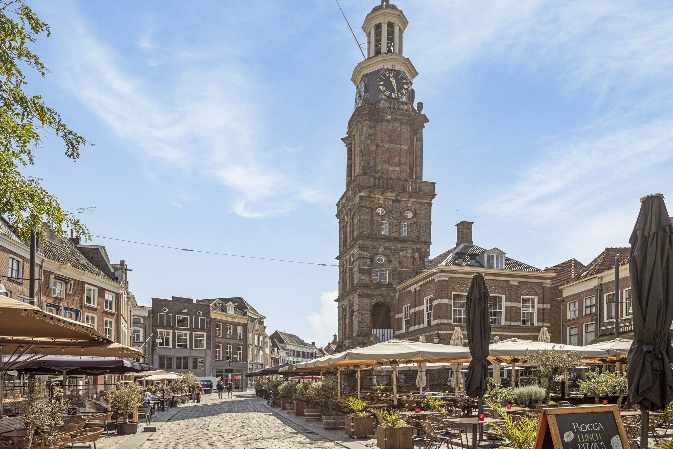 De Naadzak is gelegen middenin het hartje van Zutphen, waardoor alle voorzieningen binnen handbereik zijn. Denk hierbij aan een ruim aanbod aan horeca, detailhandel, een theater, bioscoop en het intercity treinstation. Daarnaast woon je op enkele minuten wandelafstand van de IJsselkade, waar het hele jaar een prachtig uitzicht over de uiterwaarden op je te wachten staat. Vanuit de woonkamer heb je uitzicht over het bruisende marktplein, waar altijd wat te beleven is.