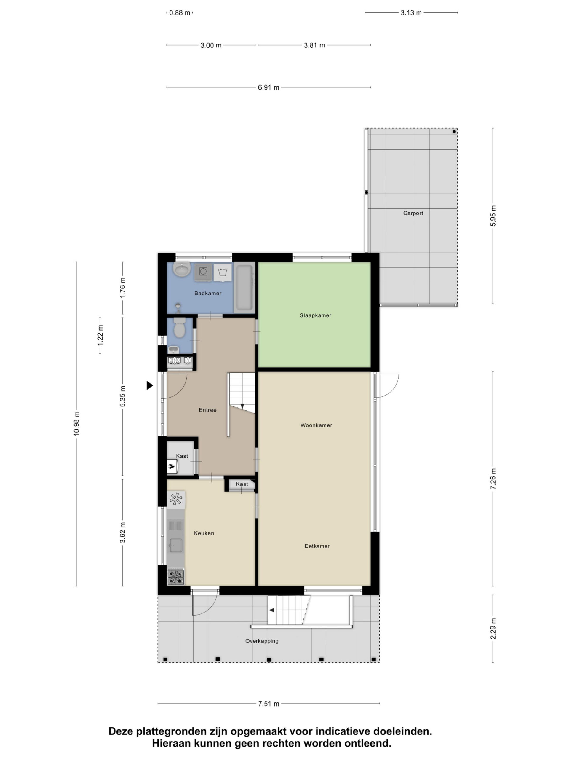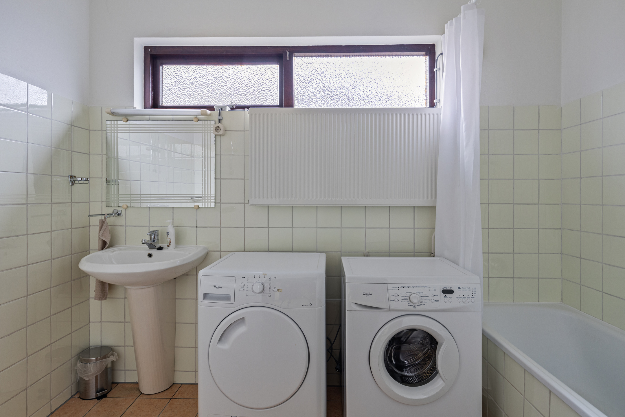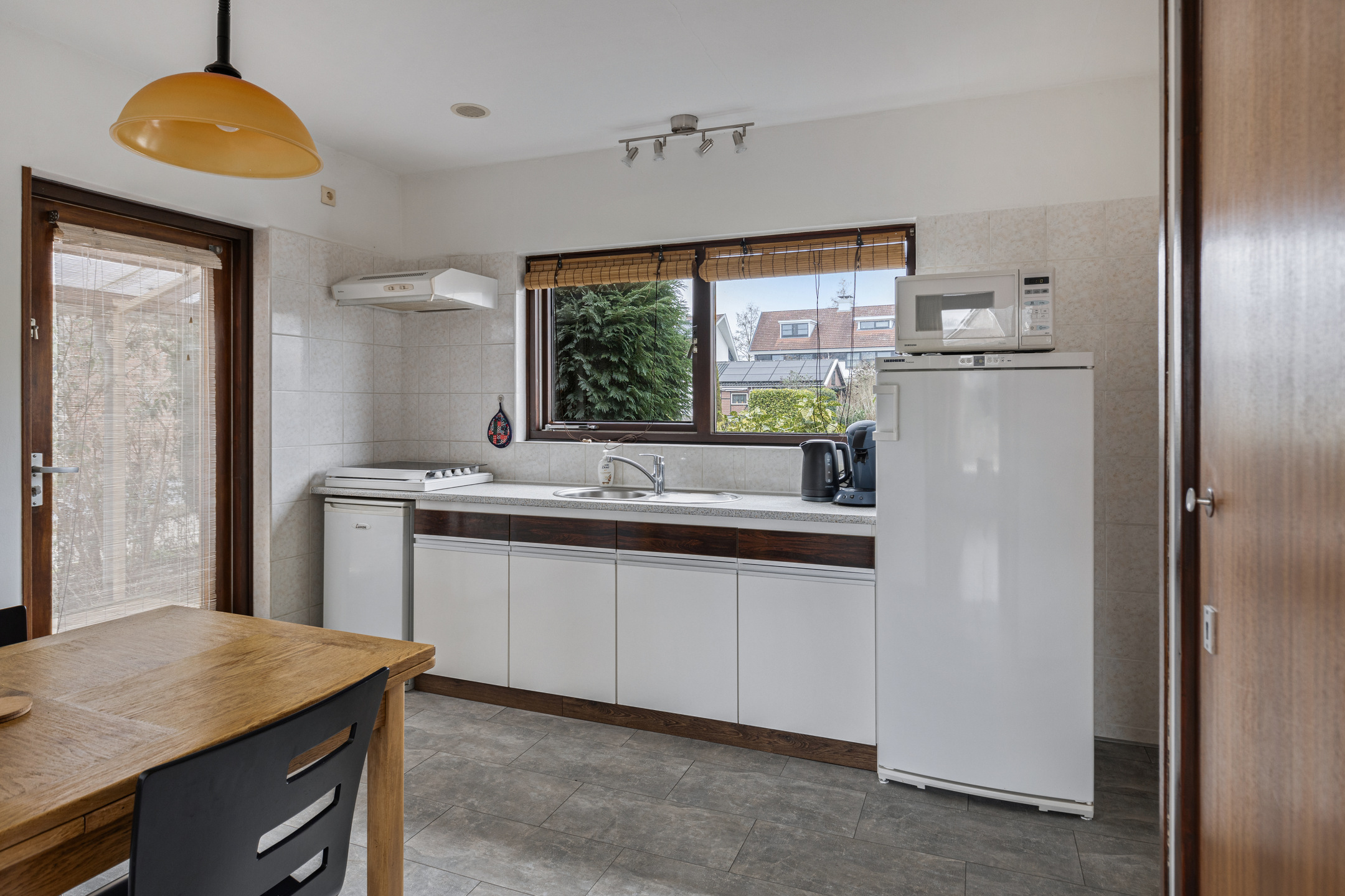 Begane grond: entree, hal met meterkast, vaste kast t.b.v. de cv-installatie, trapopgang naar de 1e verdieping en toilet met fonteintje. Lichte tuingerichte woonkamer voorzien van laminaatvloer en tuindeur. Ruime woonkeuken voorzien van 4-pits gaskookplaat, afzuigkap, magnetron, koelkast, vriezer en tuindeur. Nette slaapkamer op de begane grond ter grootte van circa 13,5 m². Badkamer voorzien van wastafel, ligbad, douche, inloopdouche en wasmachine-/droger- aansluiting.