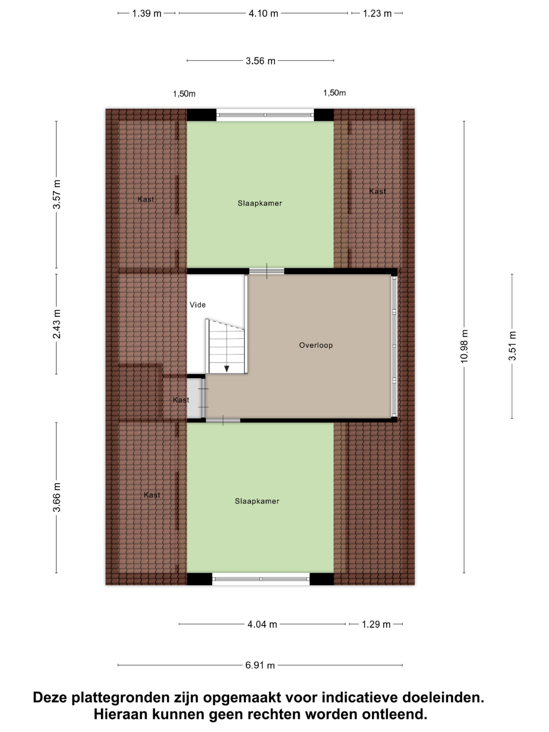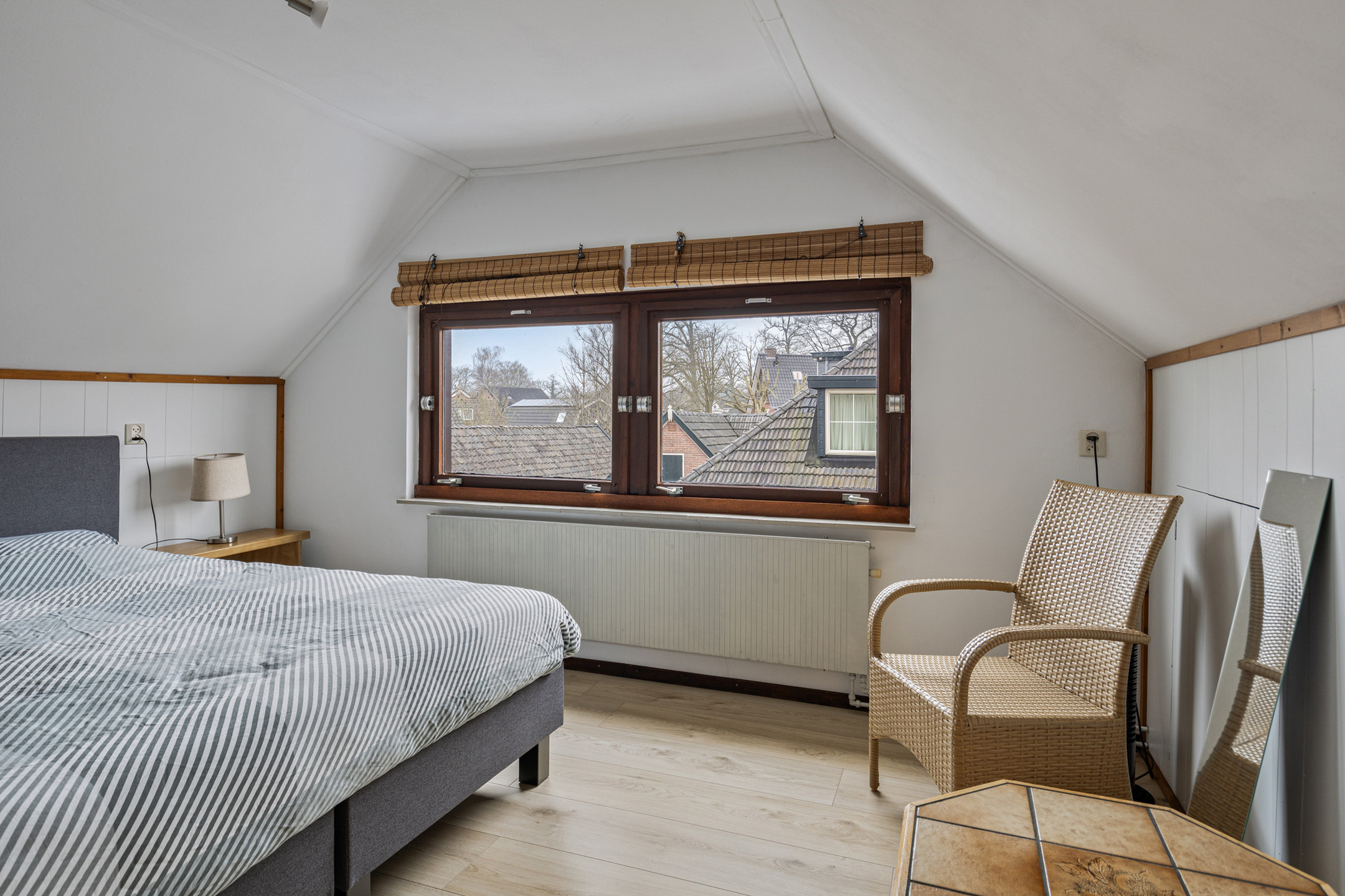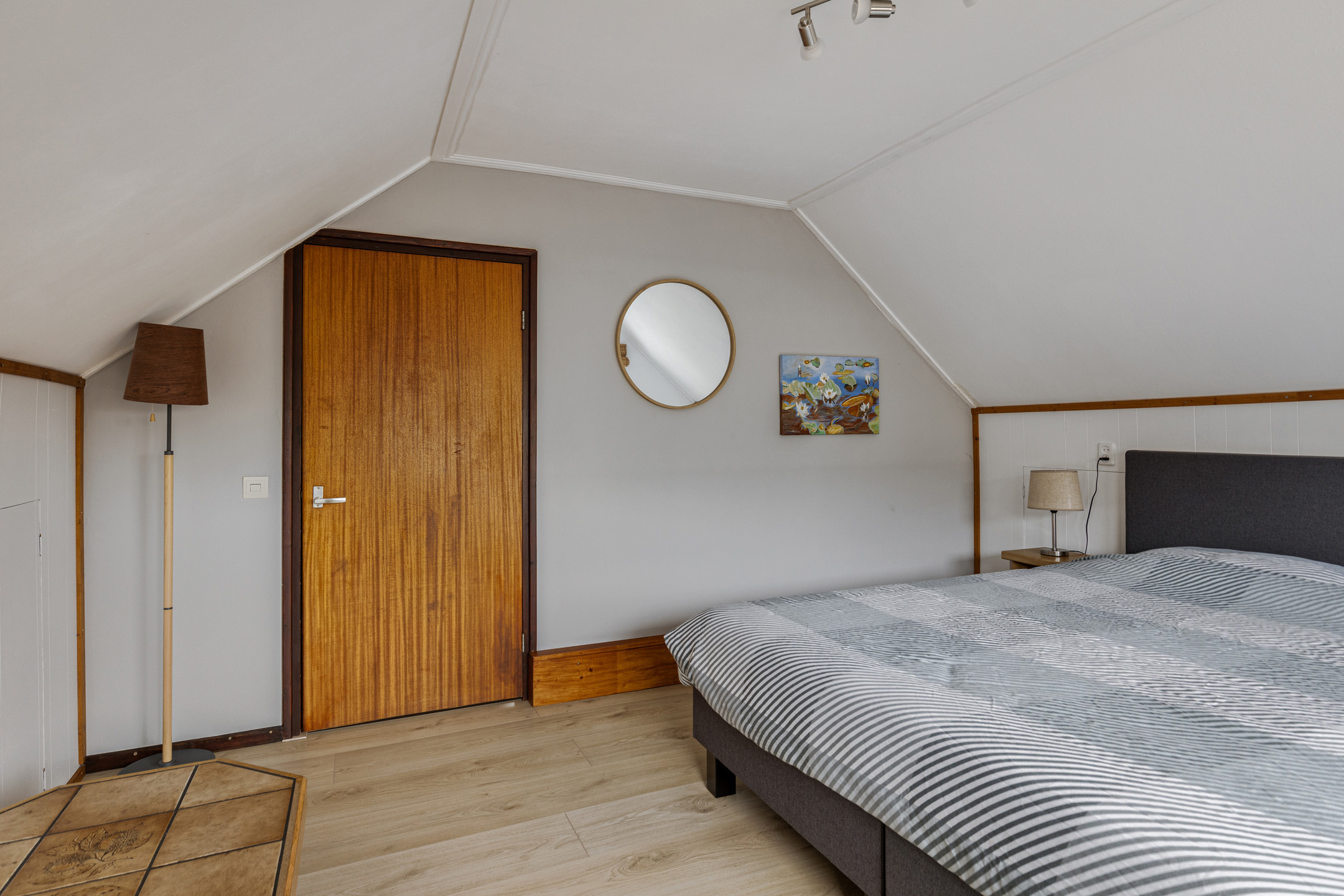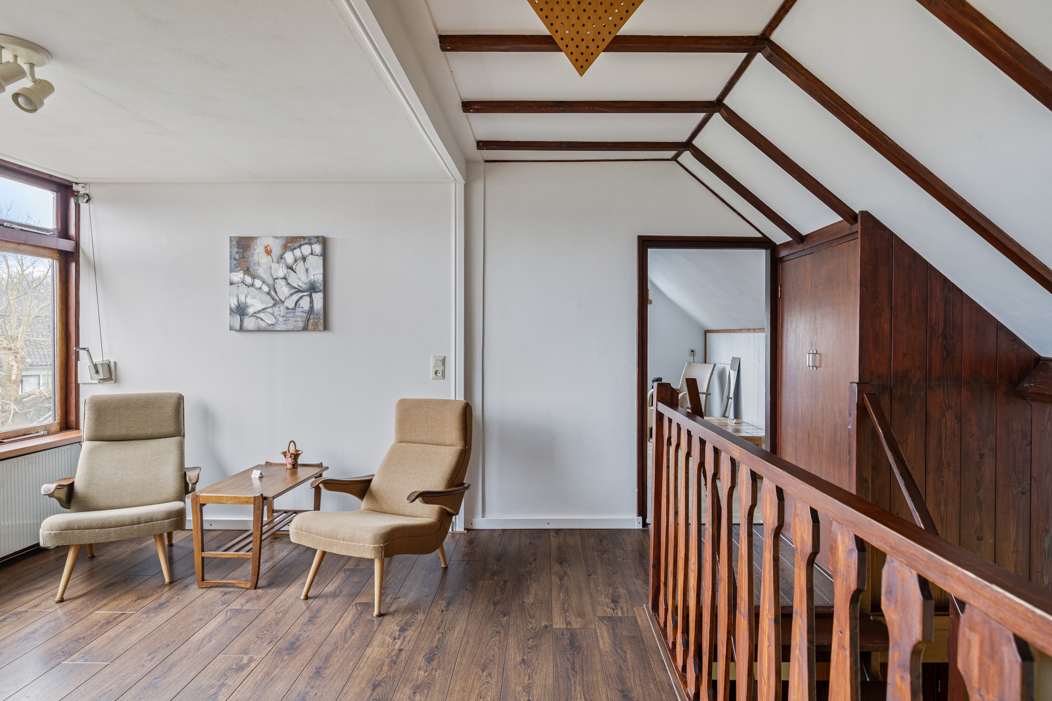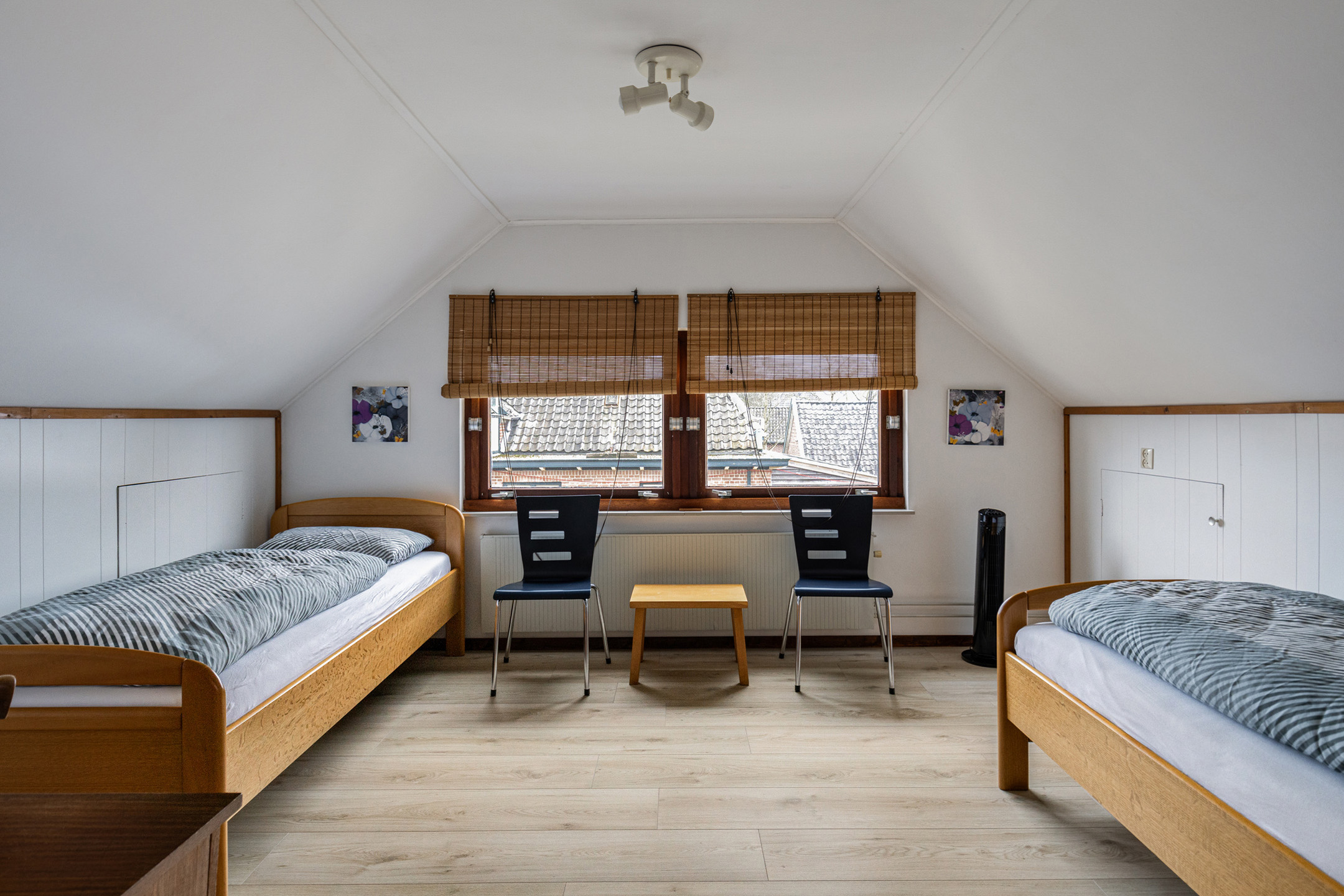 1e Verdieping: ruime overloop met dakkapel en vaste kast. Twee slaapkamers ter grootte van circa 12,5 m² en 13 m², beiden met bergruimte achter de knieschotten.