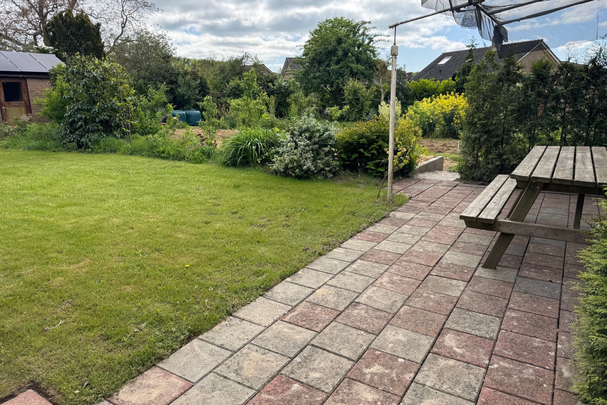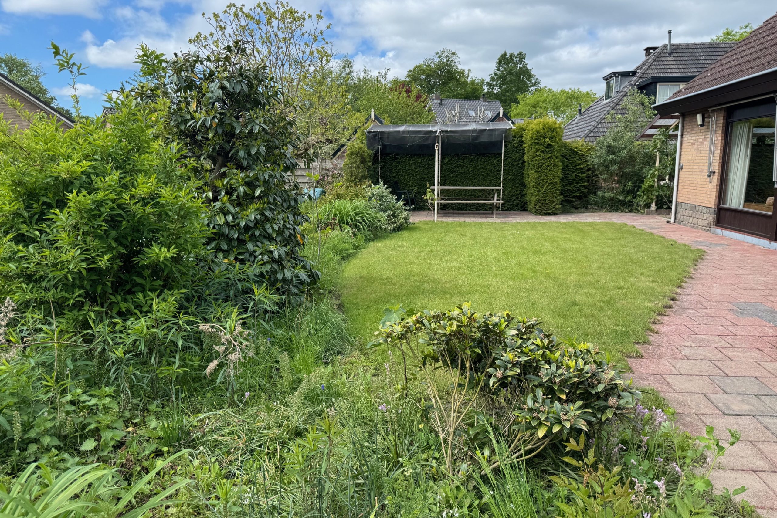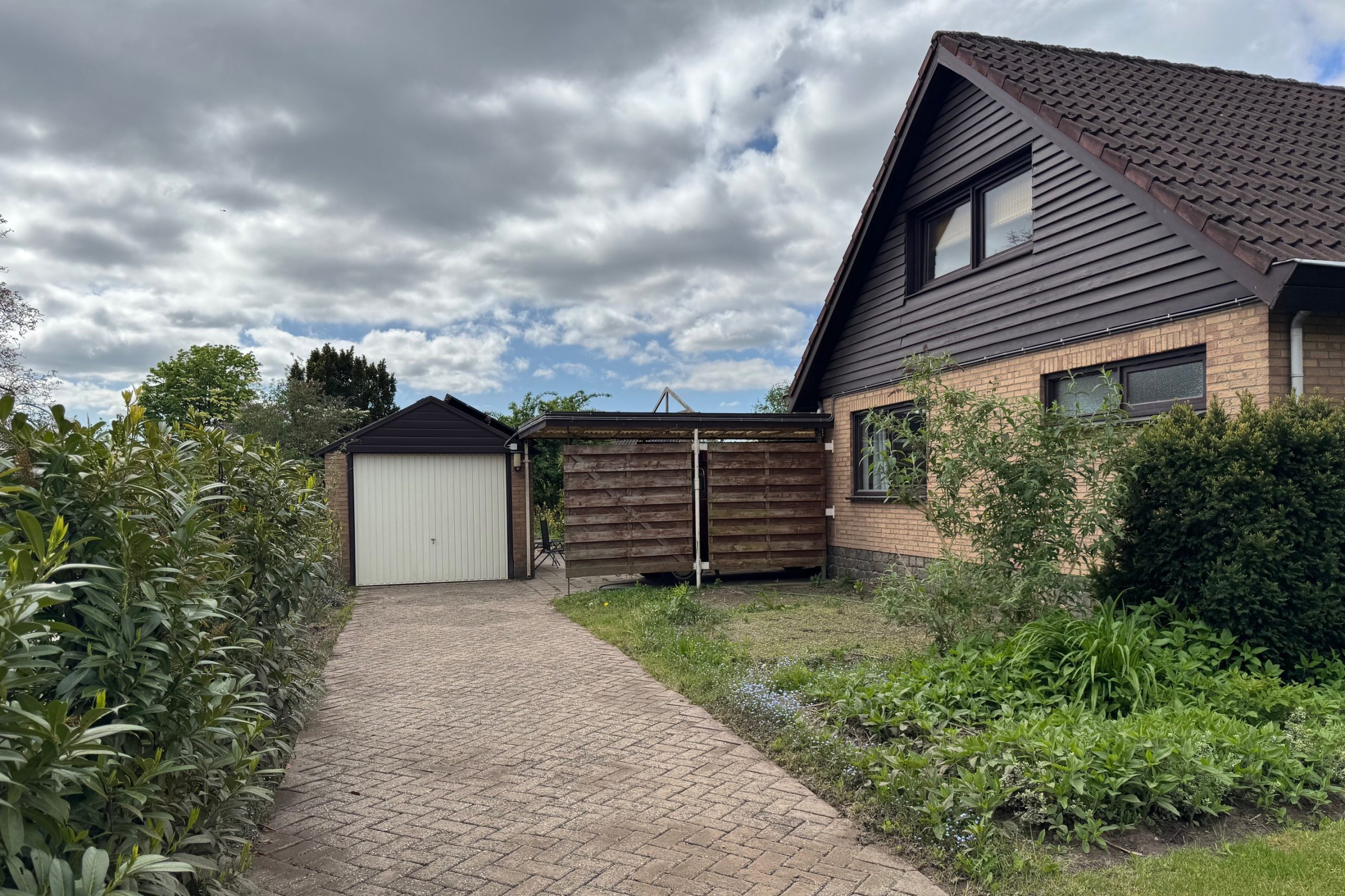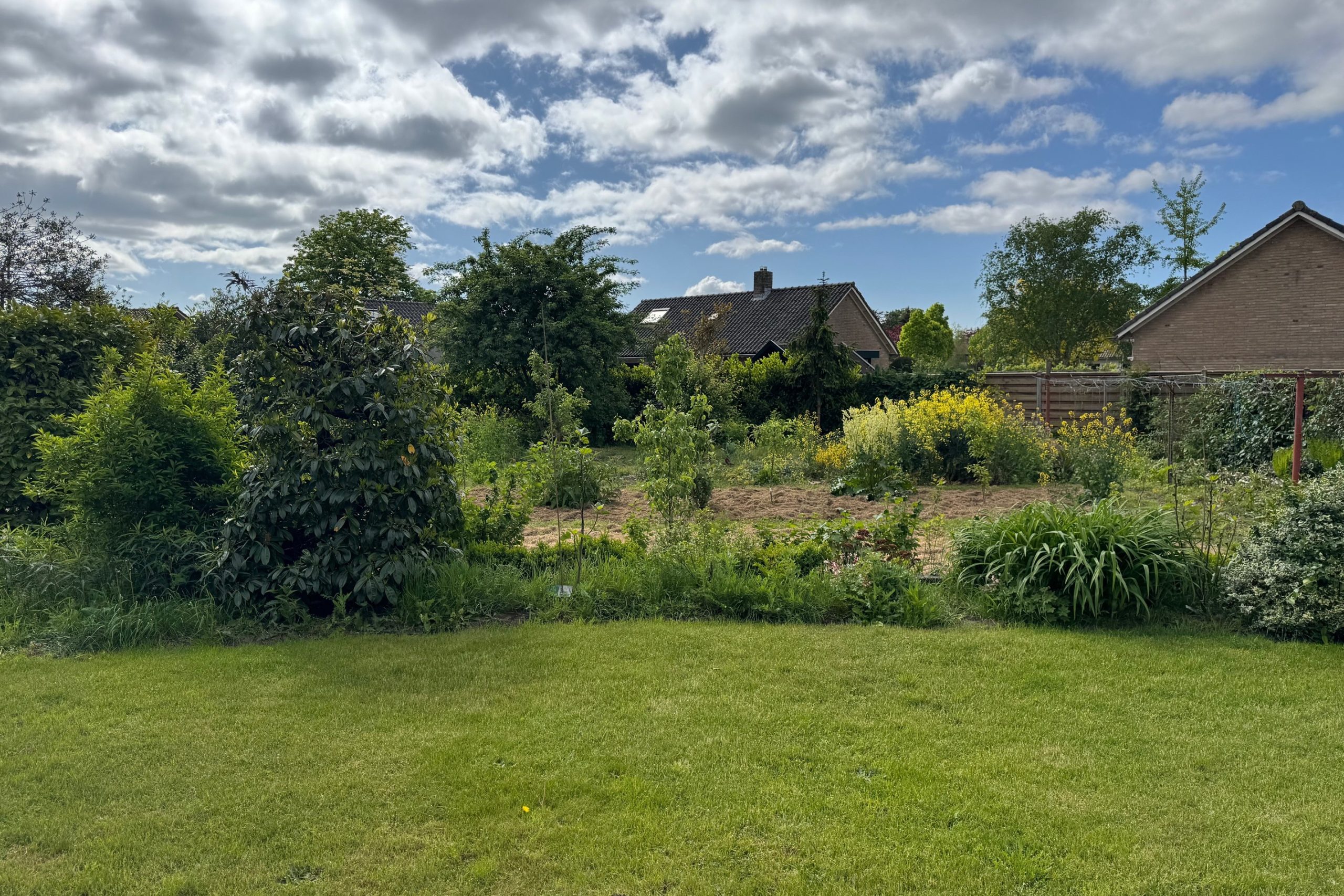 Riante tuin rondom met de achtertuin op het zuiden gelegen. De tuin beschikt o.a. over een gazon, grote moestuin, terras, carport en een ruime vrijstaande garage met oprit, waardoor er veel parkeerruimte is op eigen terrein.