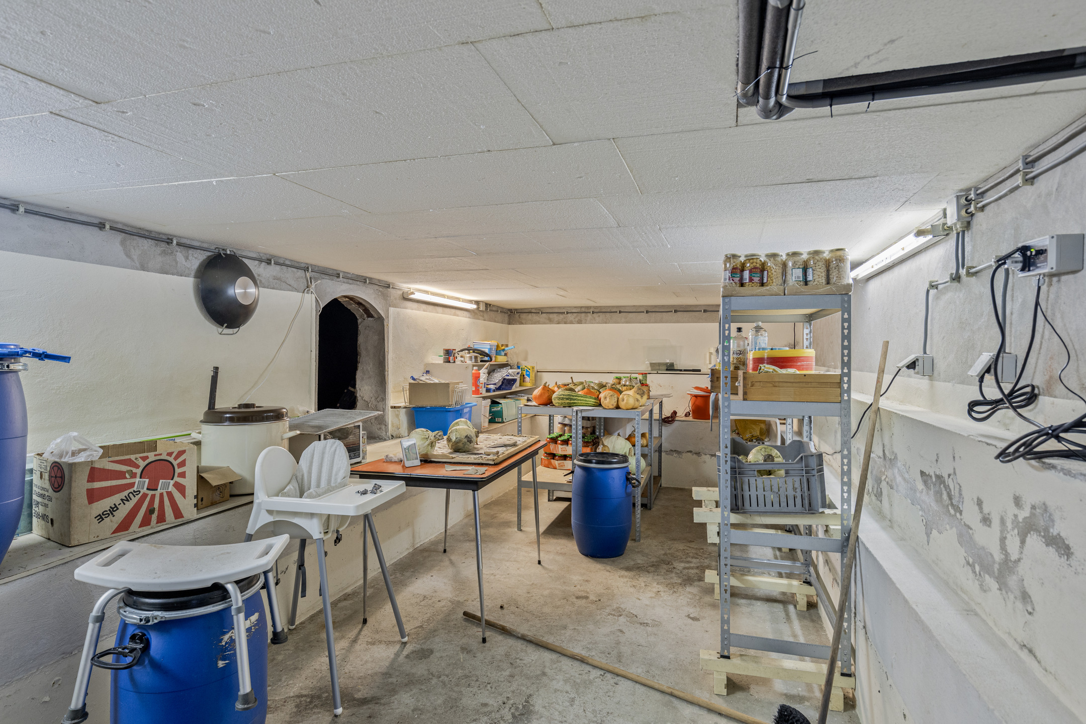 Kelder / souterrain: riante praktische werkplaats, welke vanaf buiten toegankelijk is. Vanuit deze ruimte kan je de diepe kruipruimte onder de rest van de woning bereiken. Deze kruipruimte is ook uitermate geschikt als berging.