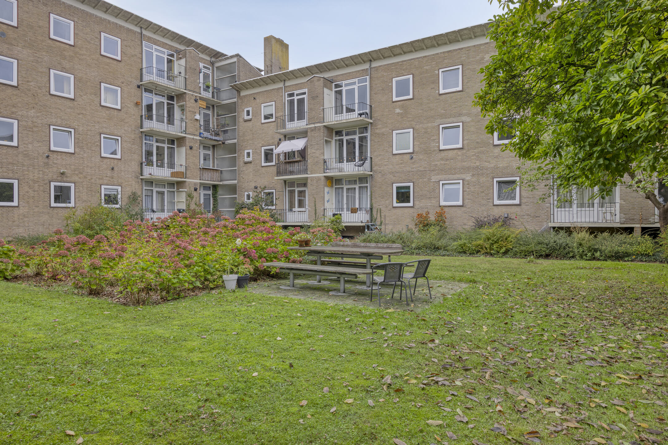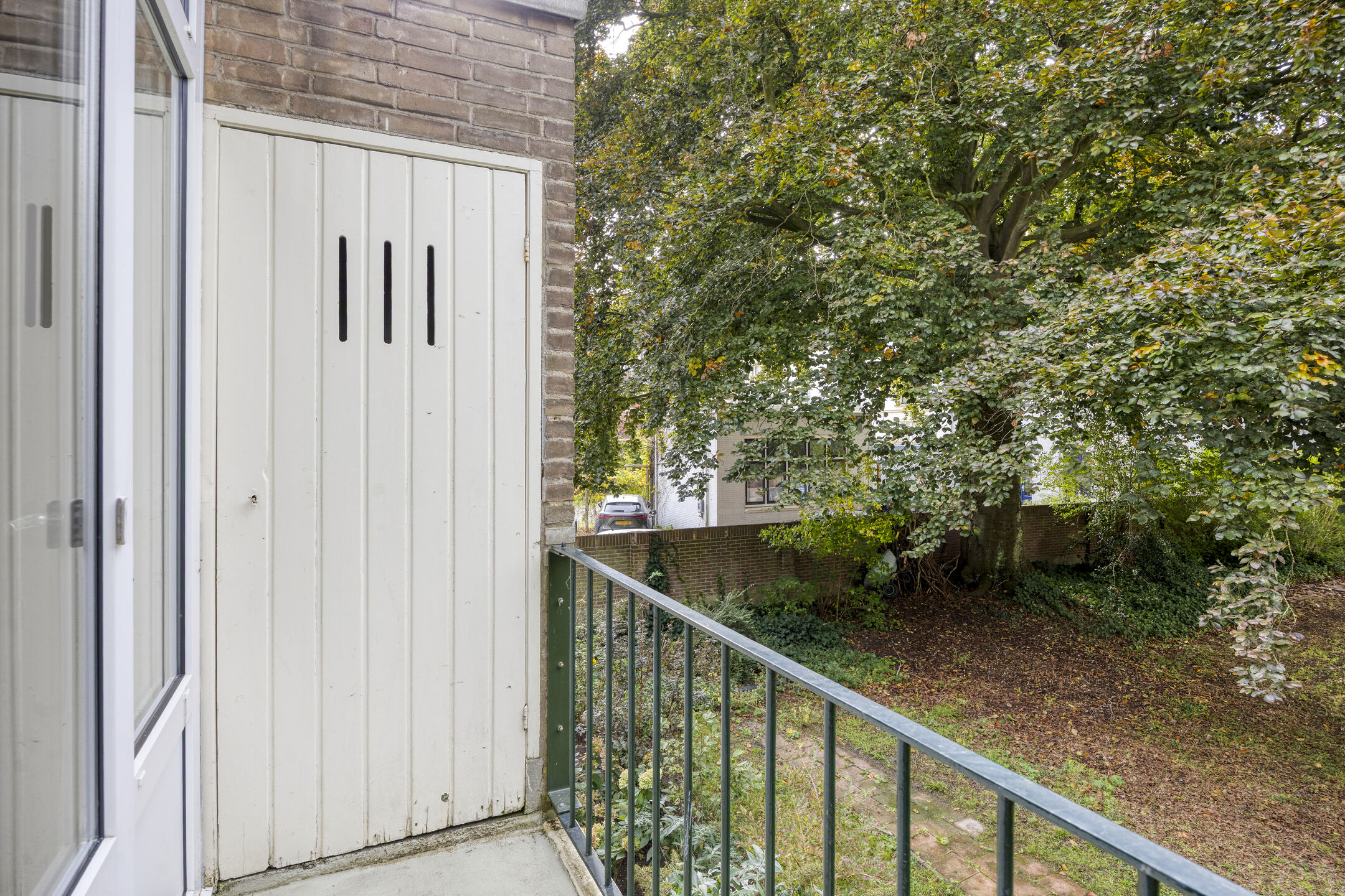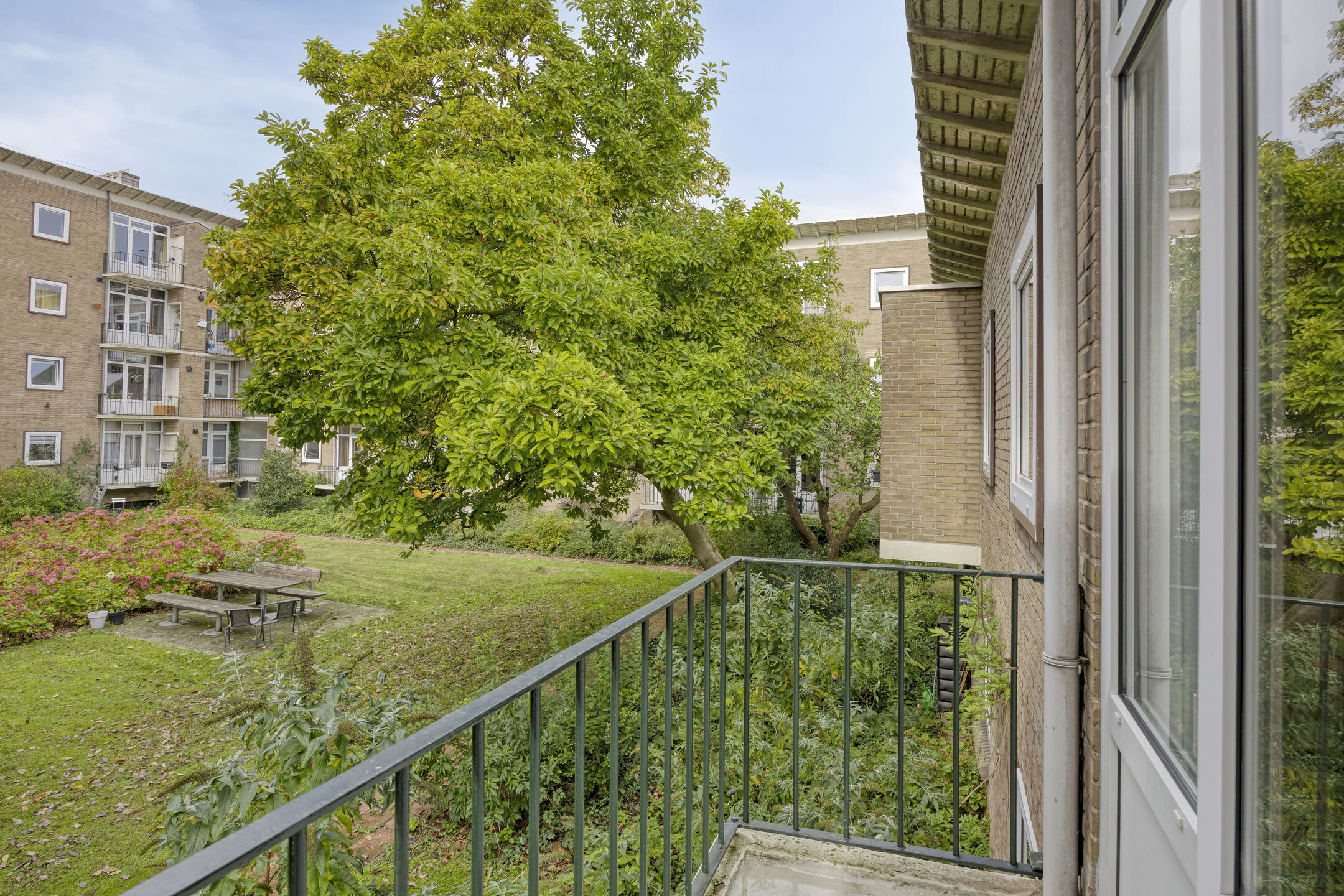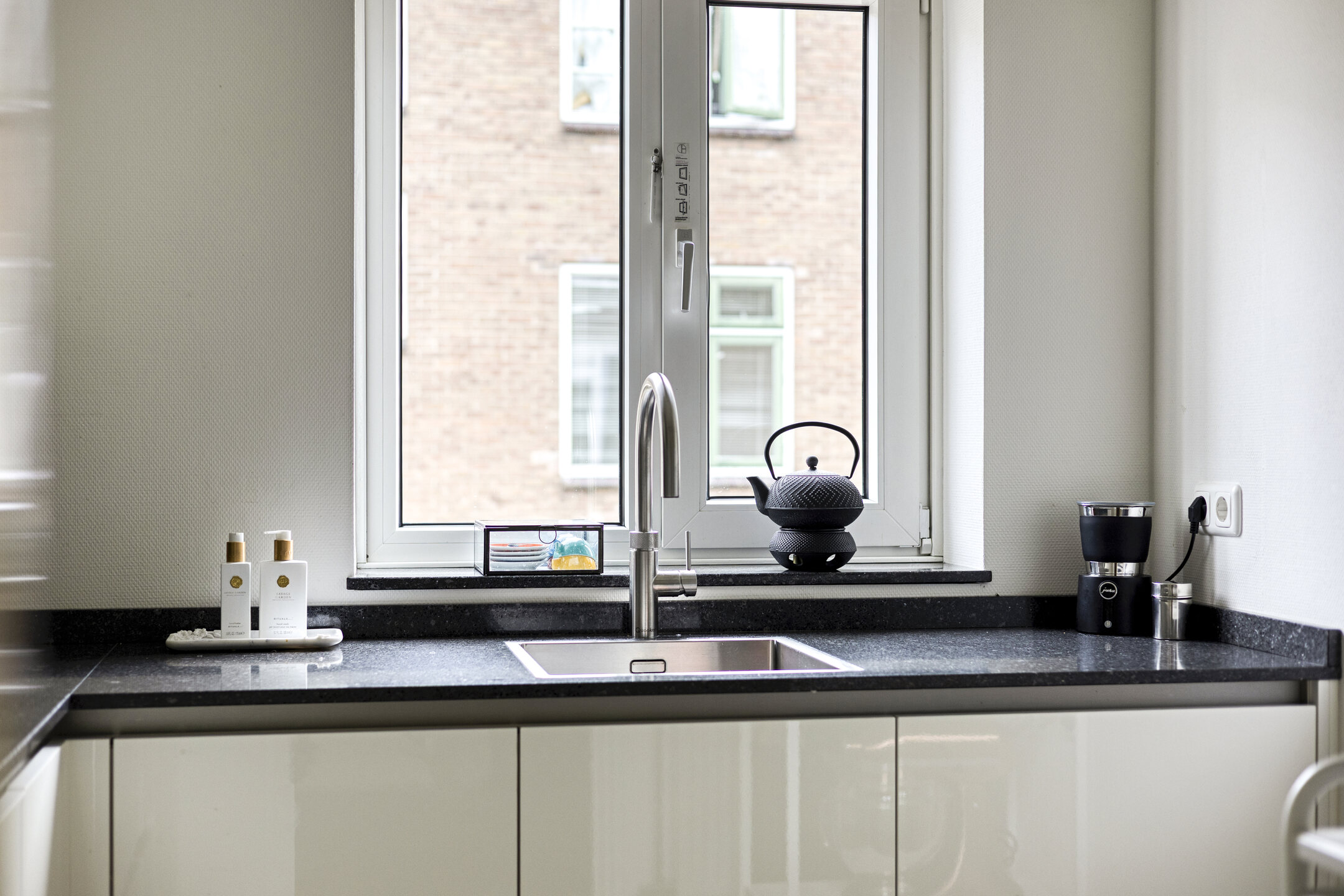 1e Verdieping: overloop met toegang tot het toilet en vlizotrap naar de bergzolder. L-vormige woon-/eetkamer met PVC-vloer, schouw en frans balkon met uitzicht over de gezamenlijke binnentuin. Strakke hoogglans witte keuken, voorzien van inductiekookplaat, afzuigkap, combi-oven, koelkast, vaatwasser en Quooker. Slaapkamer ter grootte van circa 8,5 m², voorzien van vaste kast. Badkamer met wastafelmeubel, douche en handdoekenradiator.