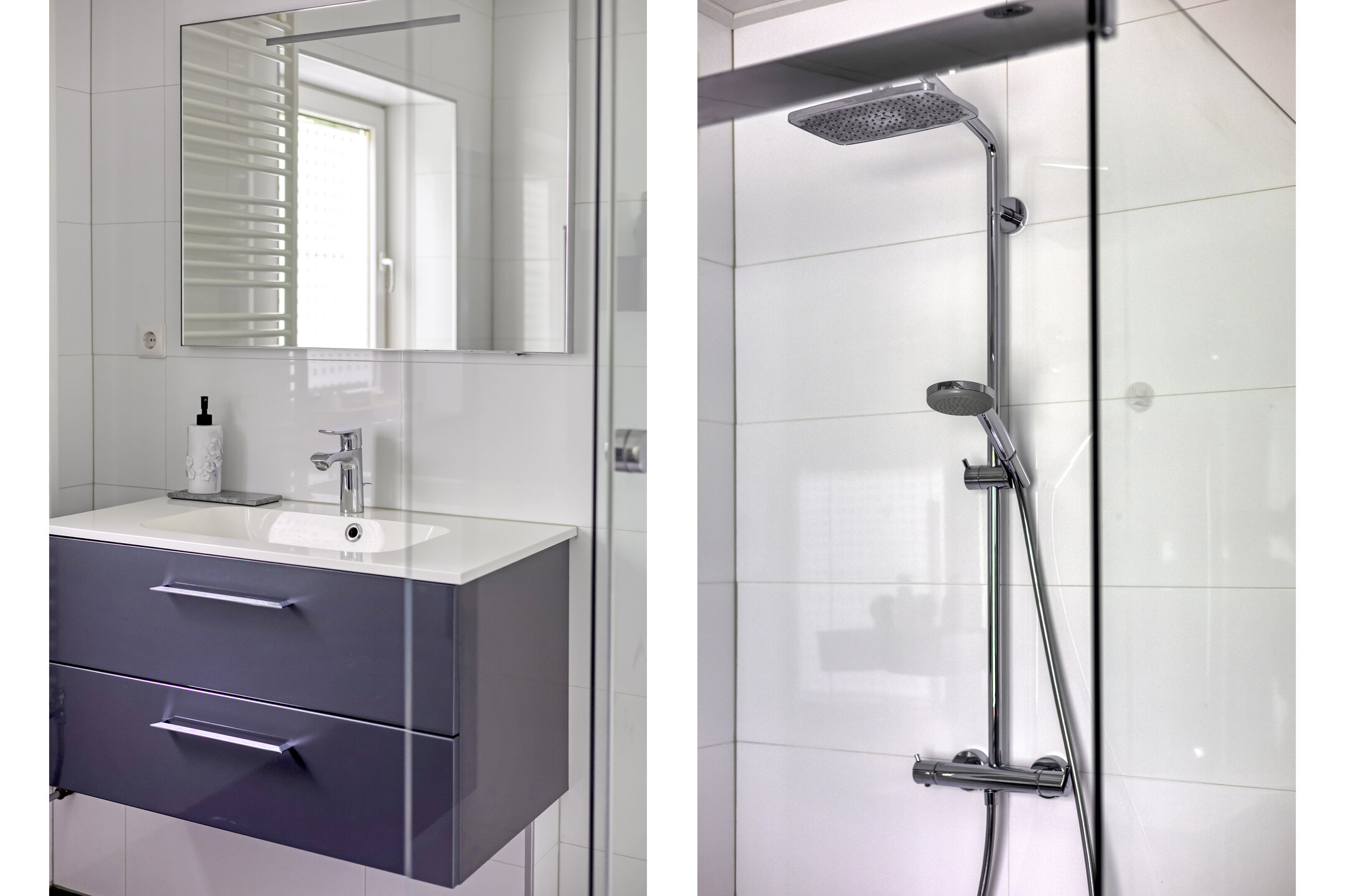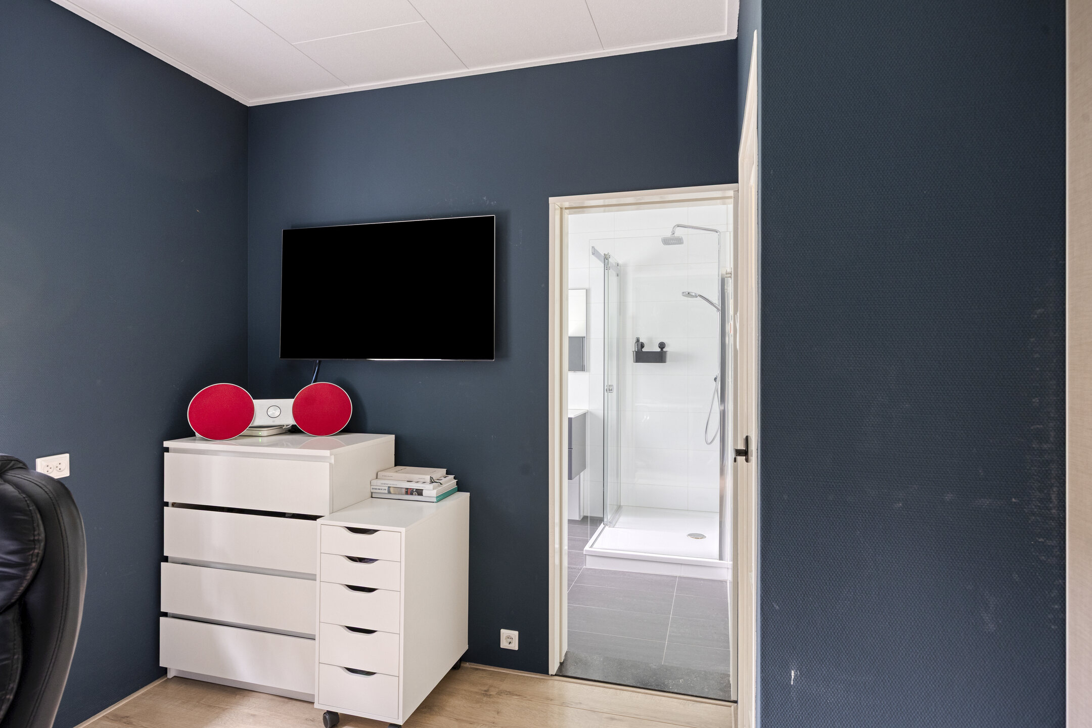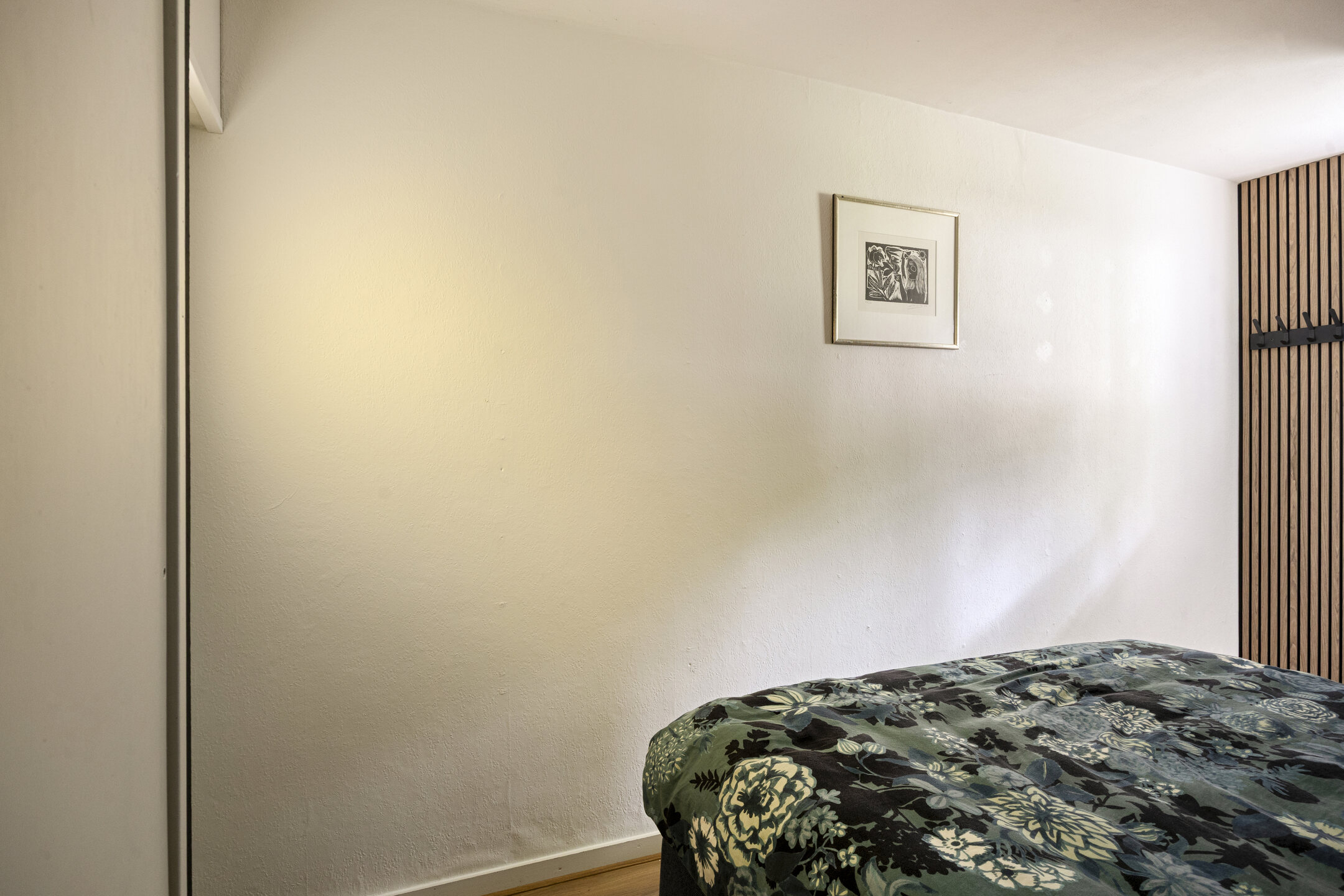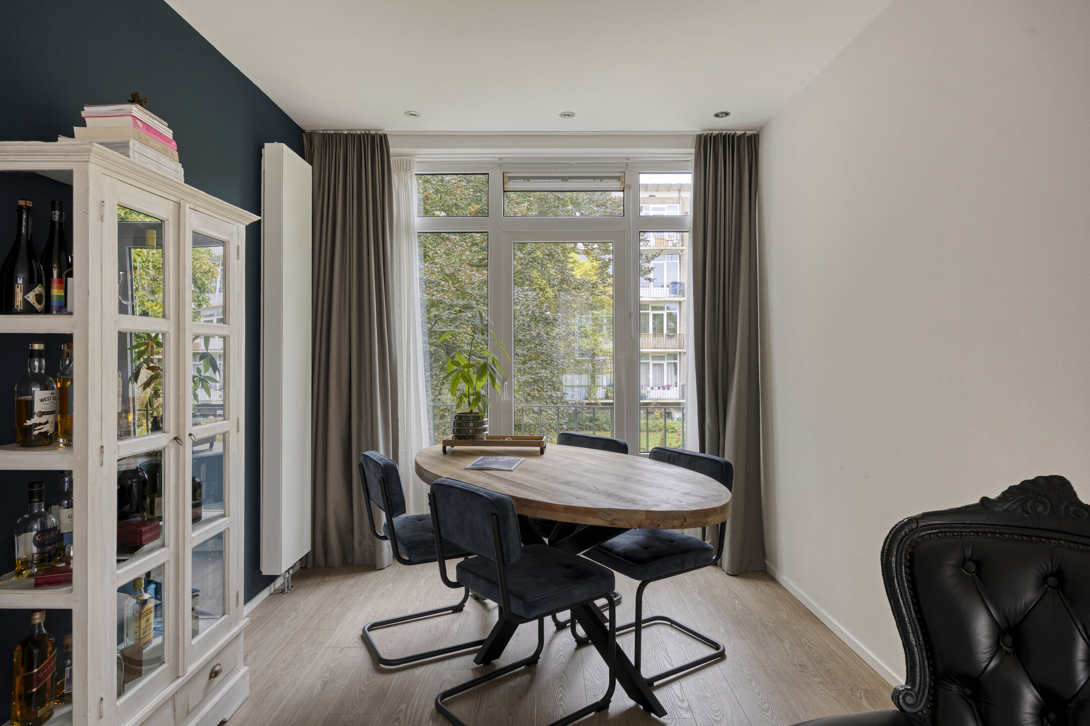 1e Verdieping: overloop met toegang tot het toilet en vlizotrap naar de bergzolder. L-vormige woon-/eetkamer met PVC-vloer, schouw en frans balkon met uitzicht over de gezamenlijke binnentuin. Strakke hoogglans witte keuken, voorzien van inductiekookplaat, afzuigkap, combi-oven, koelkast, vaatwasser en Quooker. Slaapkamer ter grootte van circa 8,5 m², voorzien van vaste kast. Badkamer met wastafelmeubel, douche en handdoekenradiator.