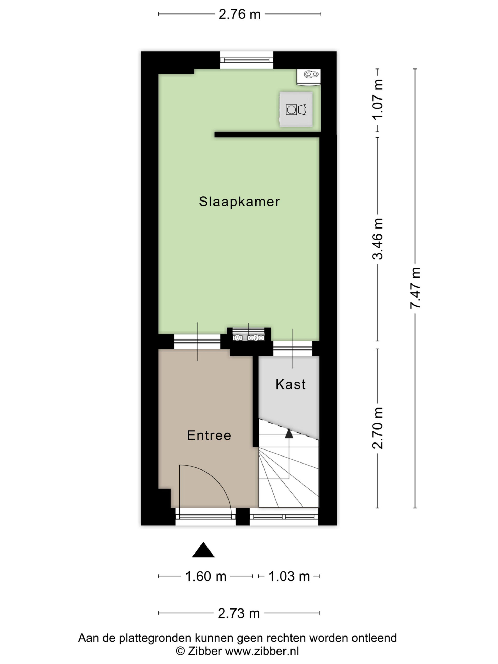 Begane grond: entree, halletje met trapopgang naar de 1e verdieping. (Slaap-)kamer ter grootte van circa 12 m² met meterkast, afgescheiden wasruimte en opstelplaats voor de cv-installatie.