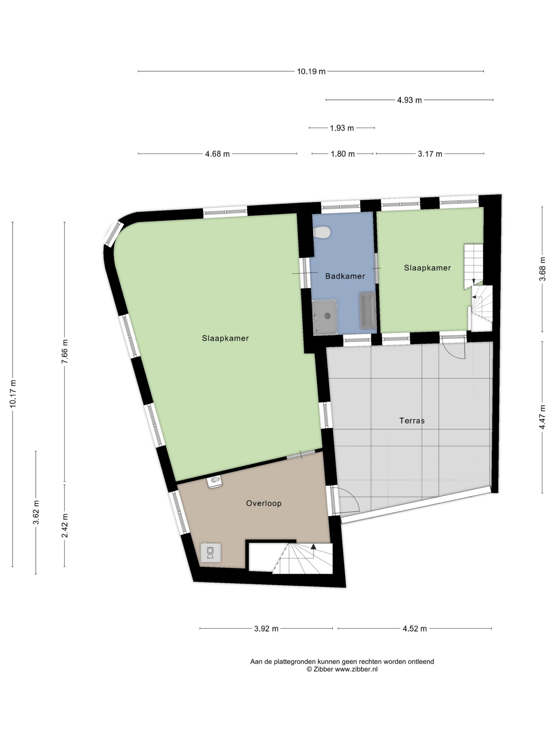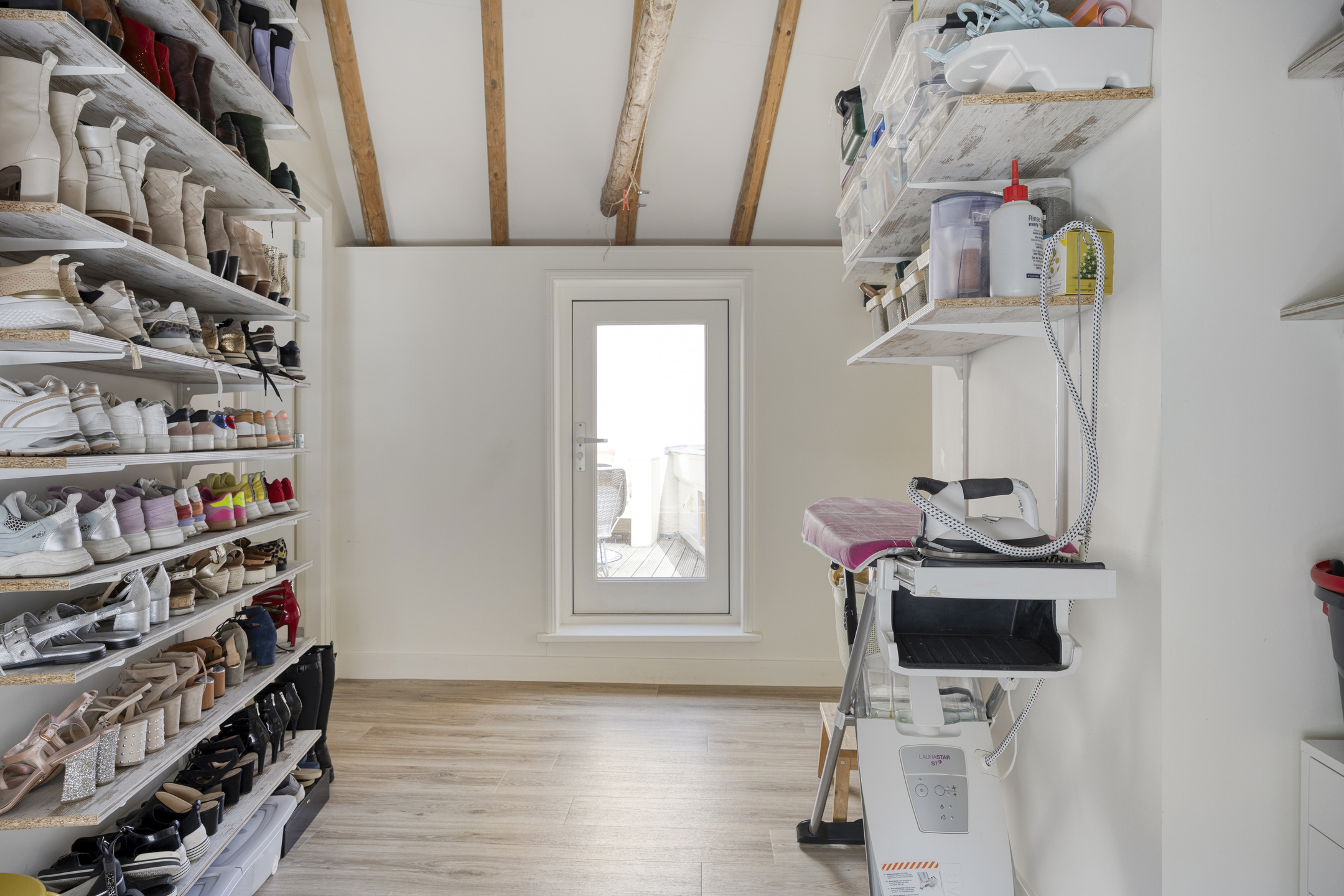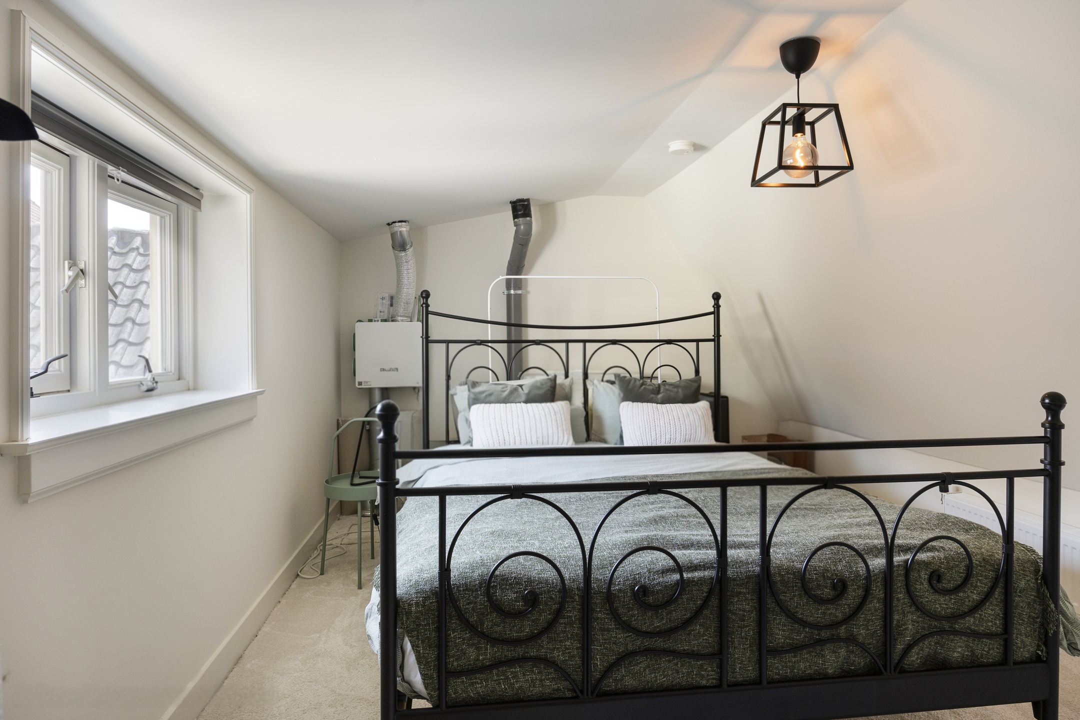 2e Verdieping: ruime overloop met cv-opstelplaats en wasmachine-aansluiting. Twee slaapkamers ter grootte van circa 37 m² en 11,5 m², waarvan de kleine slaapkamer (aan de achterzijde) ook via eigen trapopgang te bereiken is. Nette badkamer voorzien van wastafelmeubel, douche en wandcloset. Vanaf de overloop en slaapkamer aan de achterzijde te bereiken (privé) dakterras ter grootte van circa 23 m².