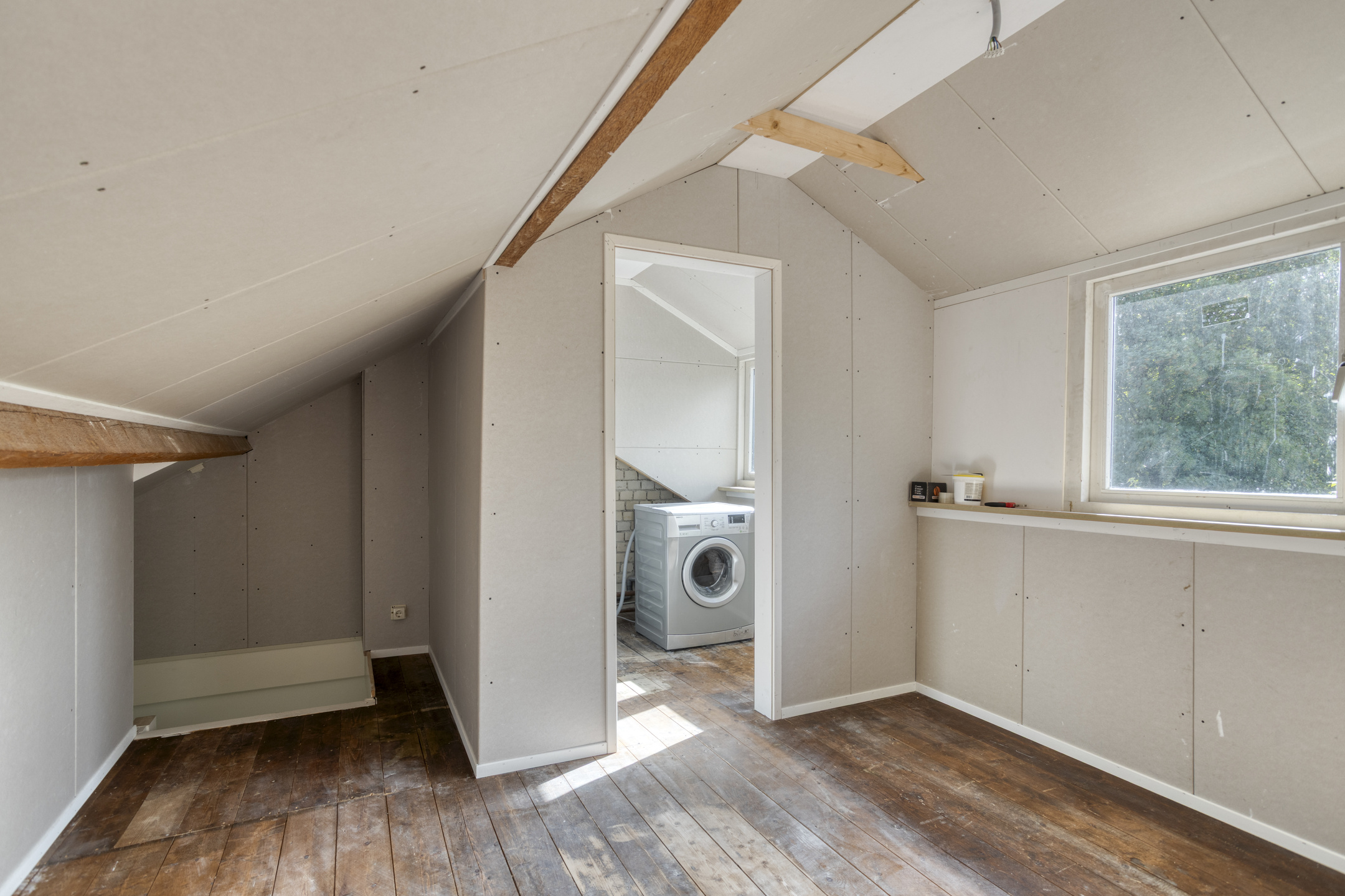 2e Verdieping: open zolderruimte met dakkapel/opbouw, geschikt als extra slaap- of werkkamer. Aparte ruimte t.b.v. de wasapparatuur.