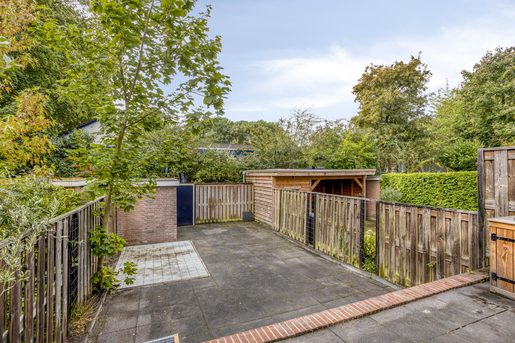 Onderhoudsvriendelijke achtertuin op het zuiden welke voor het grootste gedeelte is voorzien van bestrating, verhoogd terras aan de achtergevel en vrijstaande stenen berging. De tuin is achterom te bereiken. Parkeren is mogelijk op de openbare parkeervoorzieningen in de straat.