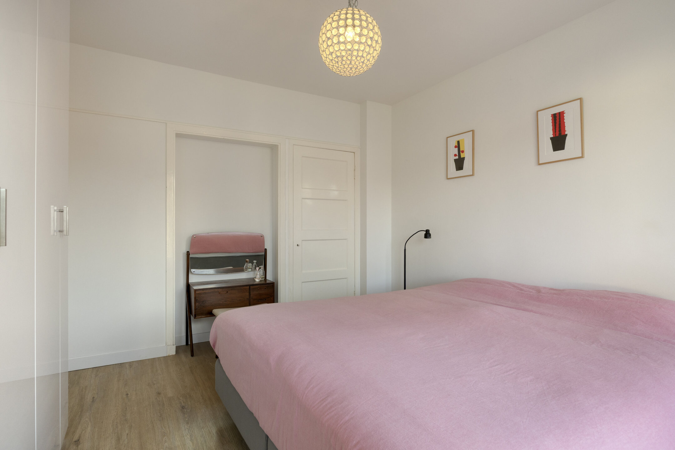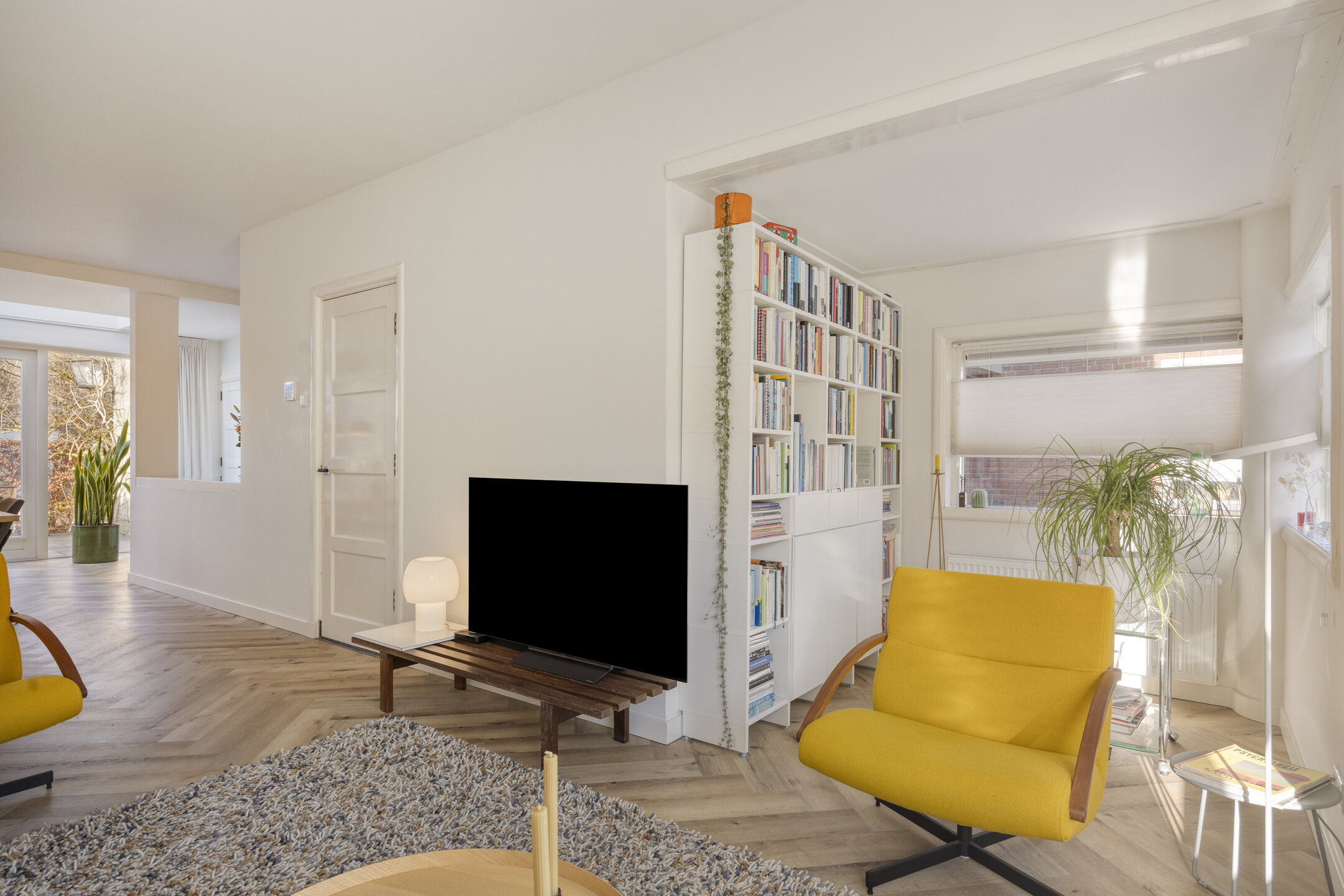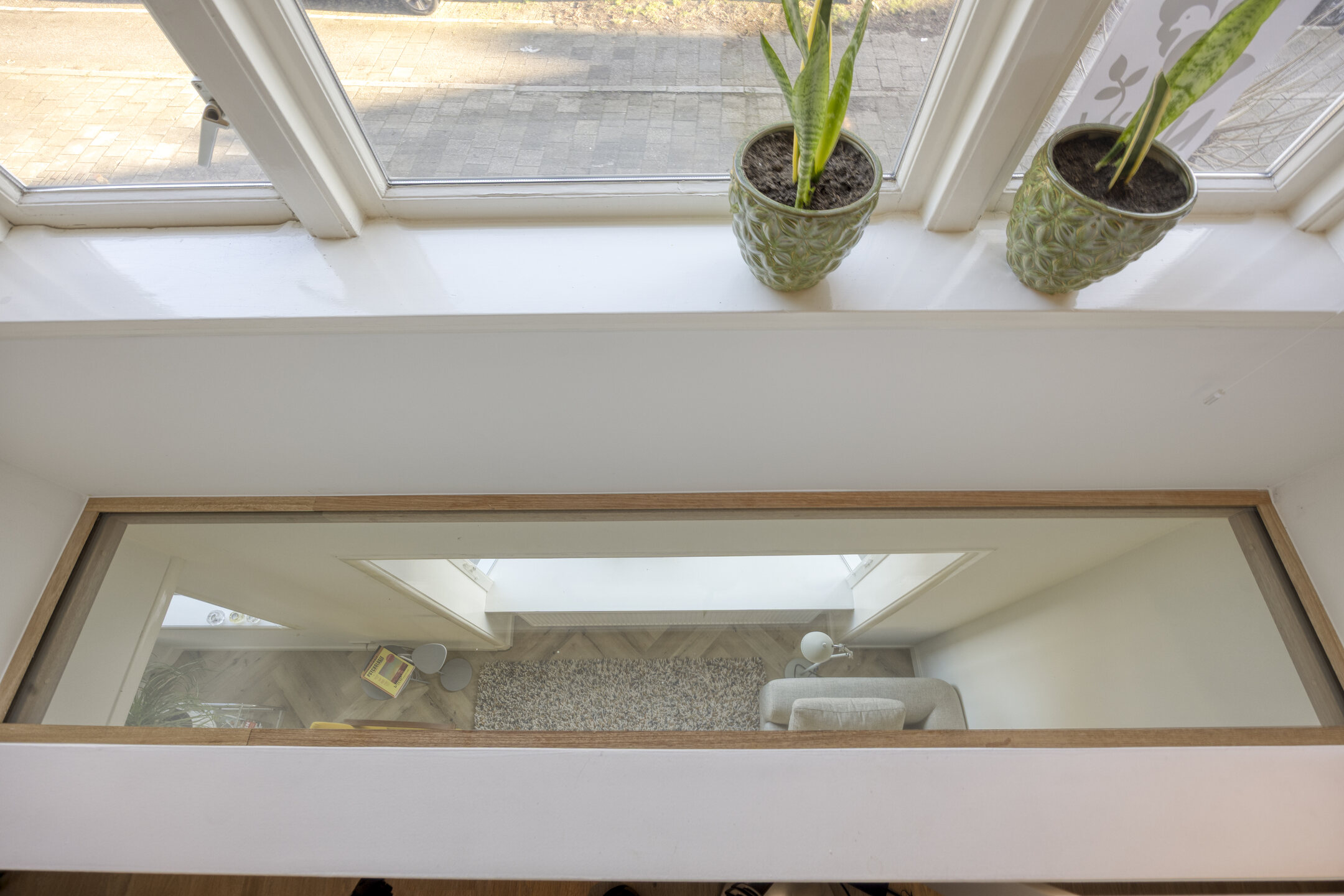 Eerste verdieping Ruime overloop, drie nette slaapkamers (twee van ca. 8 m² en één van ca. 14 m²), allen met vaste (inbouw-)kasten. De slaapkamer aan de voorzijde heeft een unieke doorkijk naar de woonkamer. Fraaie badkamer met dubbel wastafelmeubel, wandcloset, inloopdouche en handdoekenradiator.