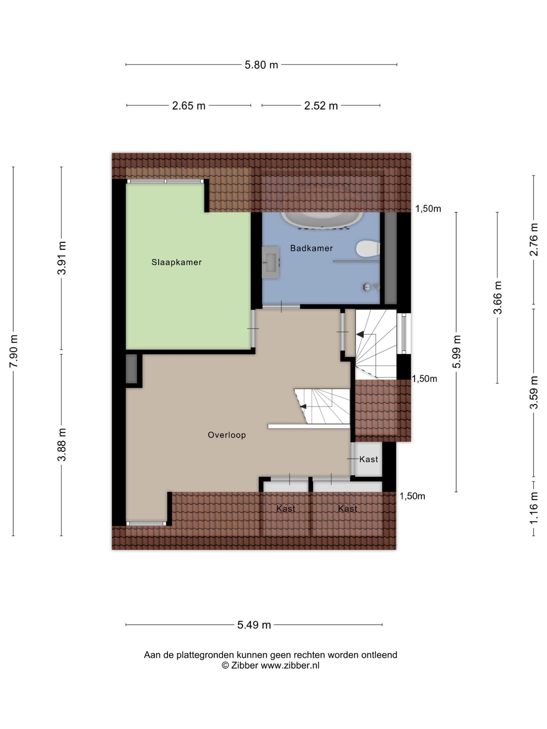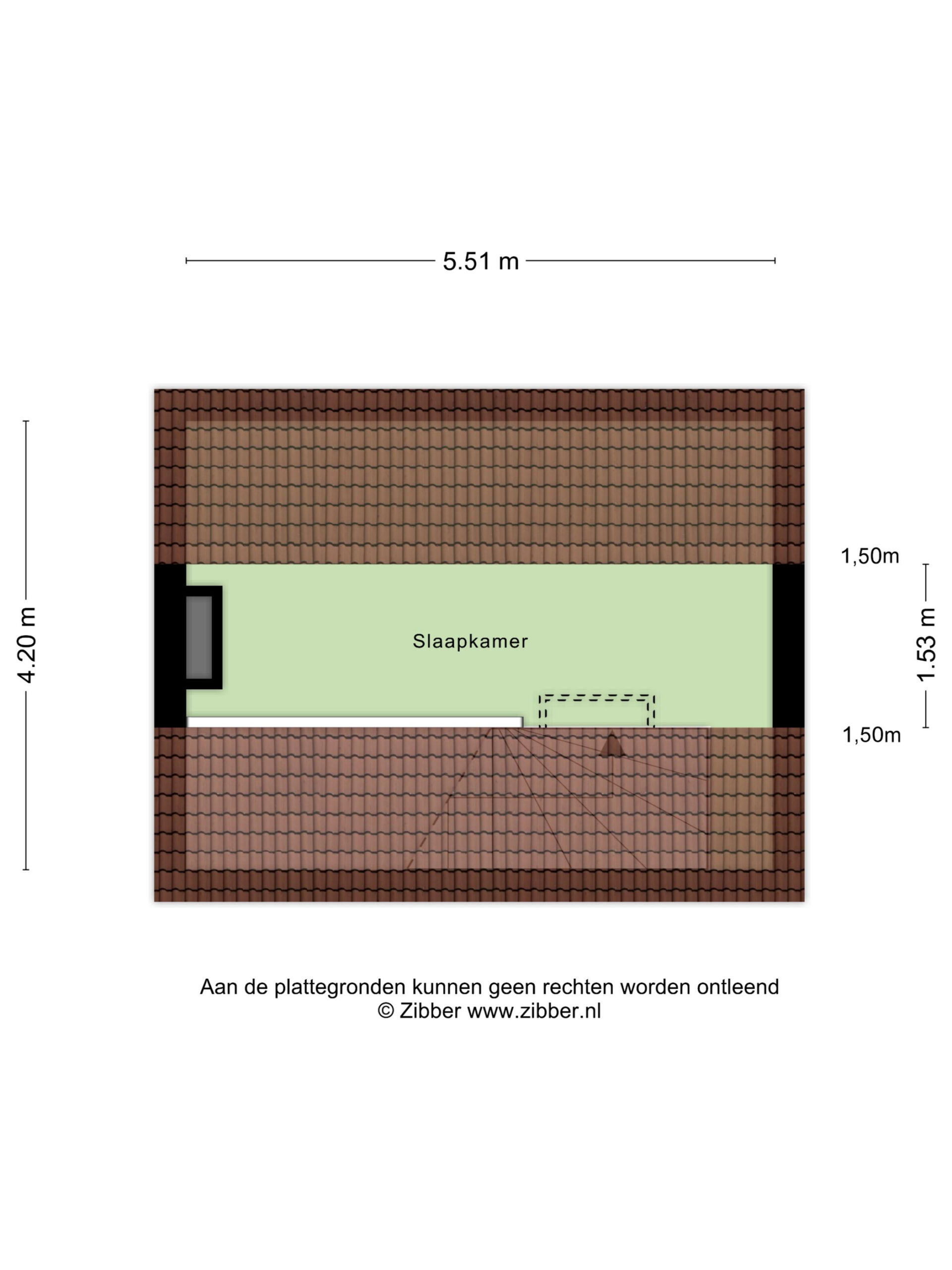Derde verdieping Knusse (slaap-)kamer in de nok van de woning van ca. 8 m².