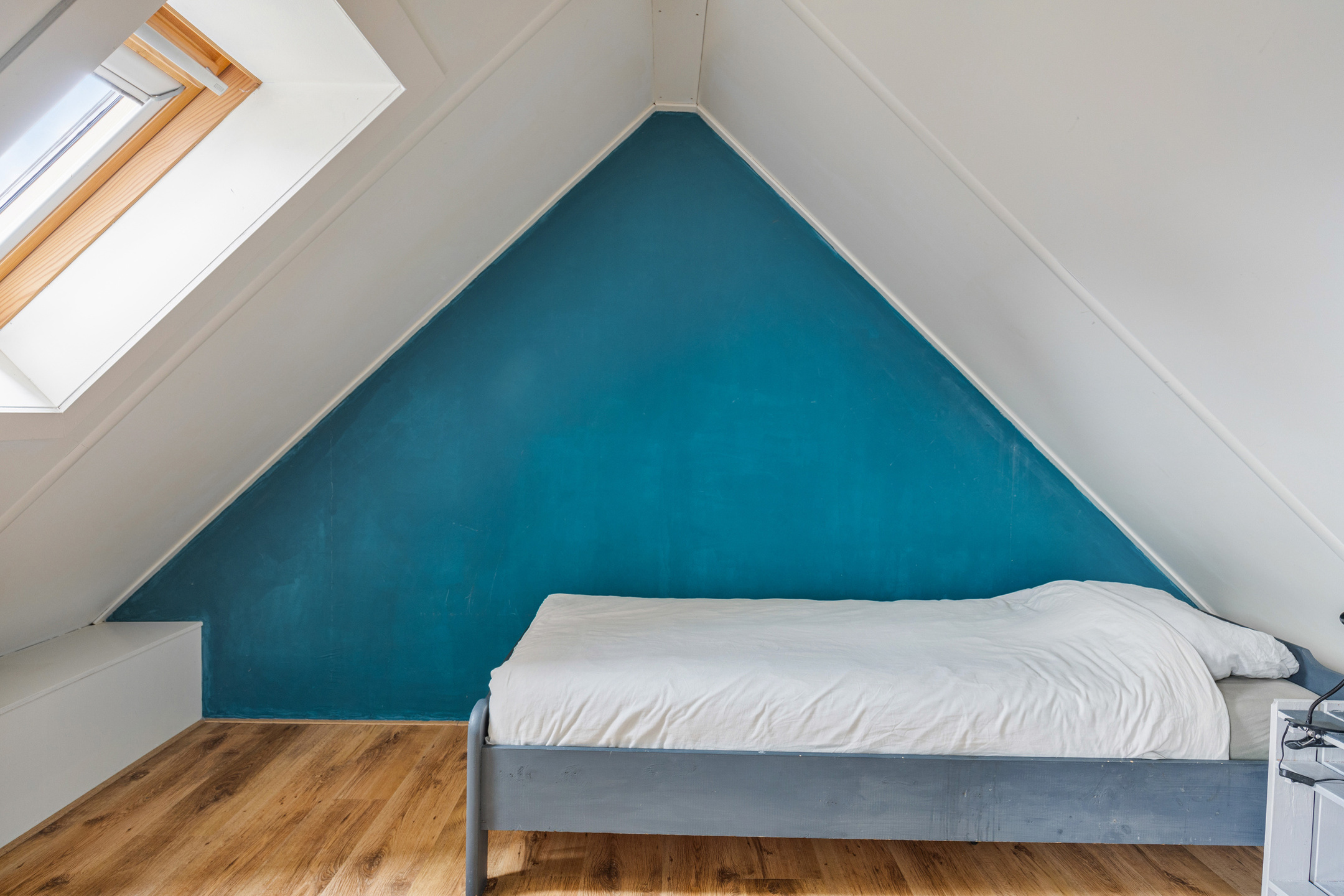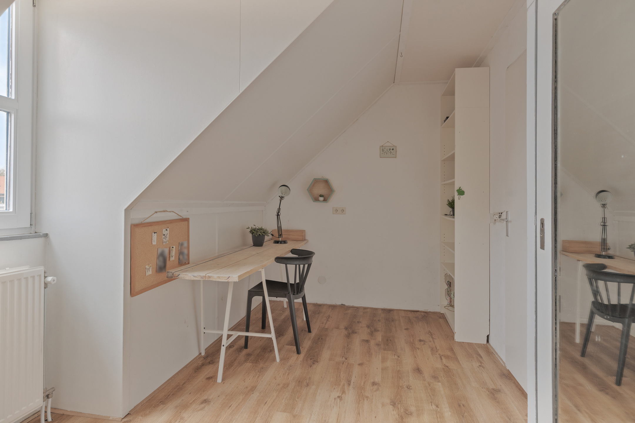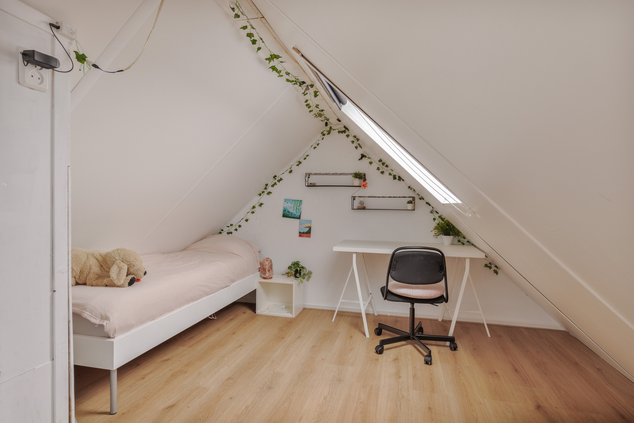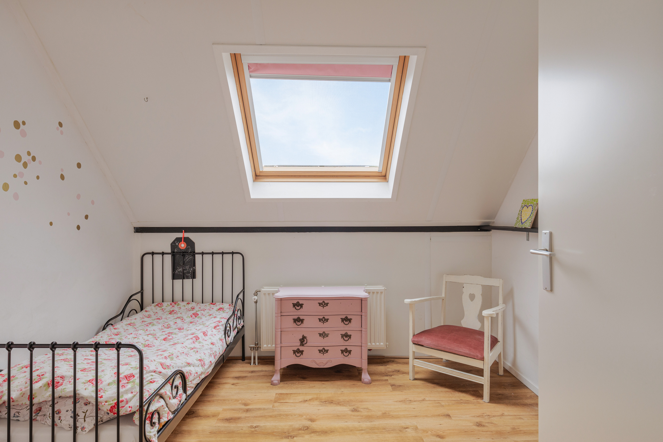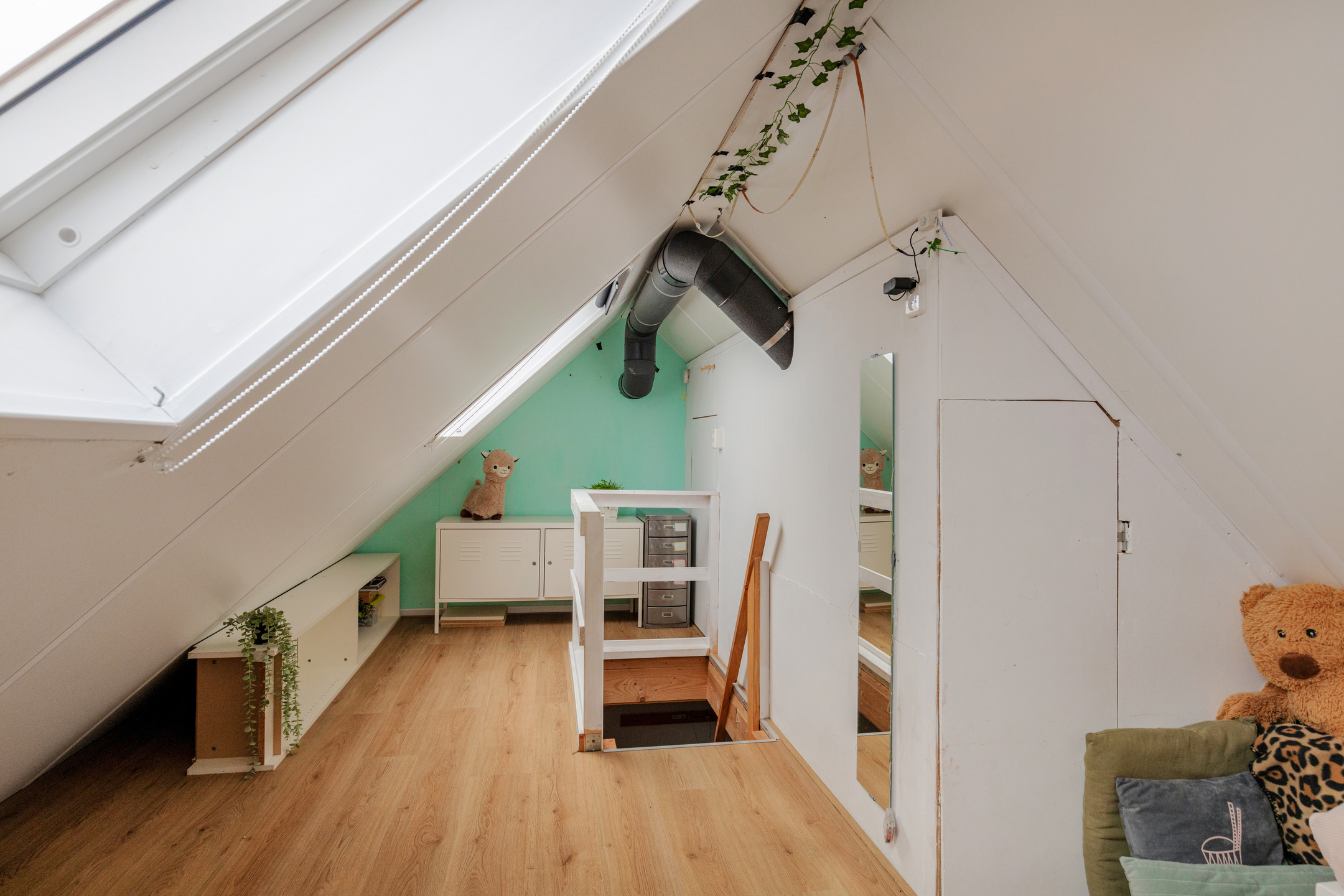 3e Verdieping: open zolderruimte met twee dakramen en vaste kast. Deze ruimte is op dit moment in gebruik als extra slaapkamer.