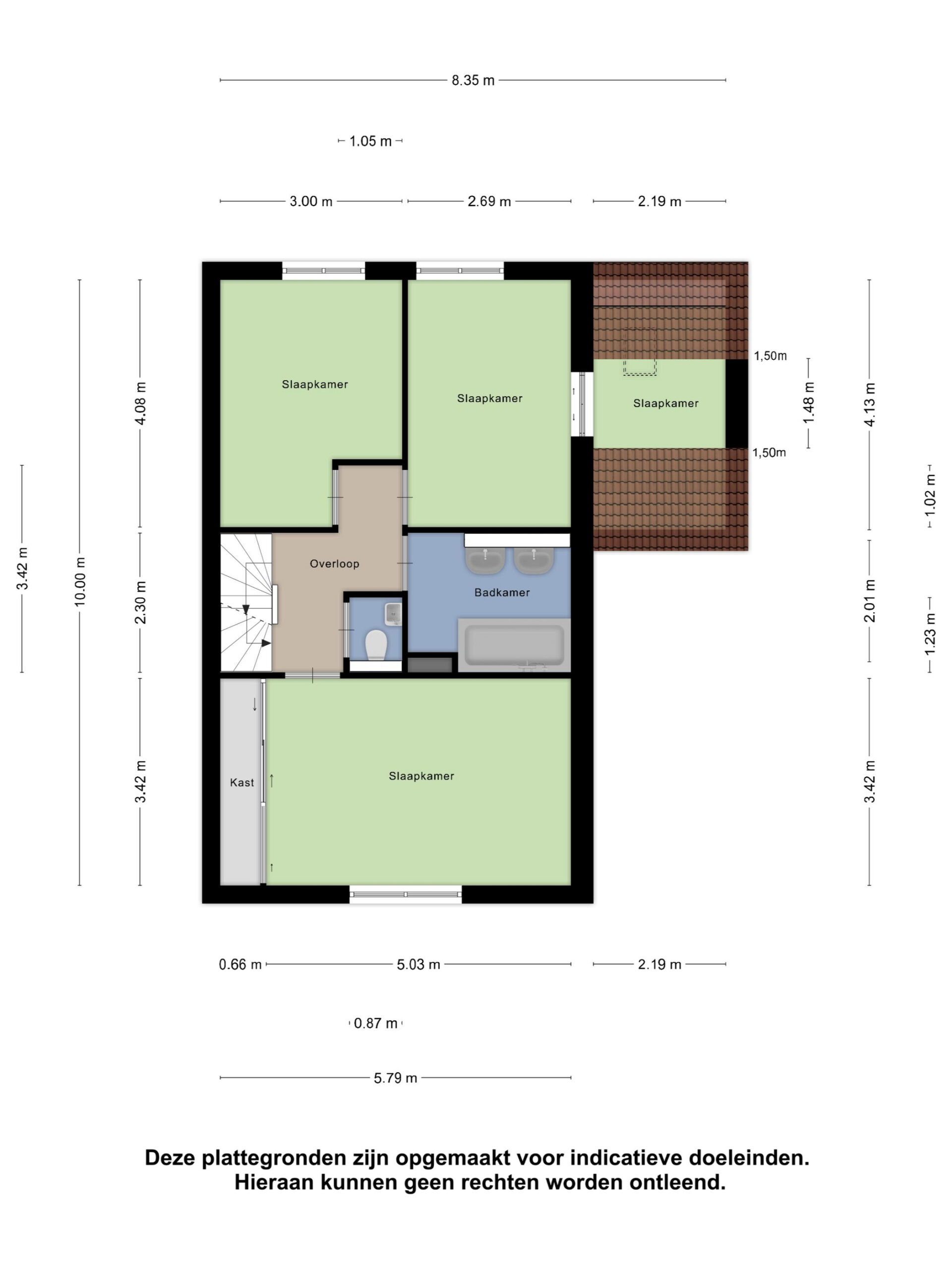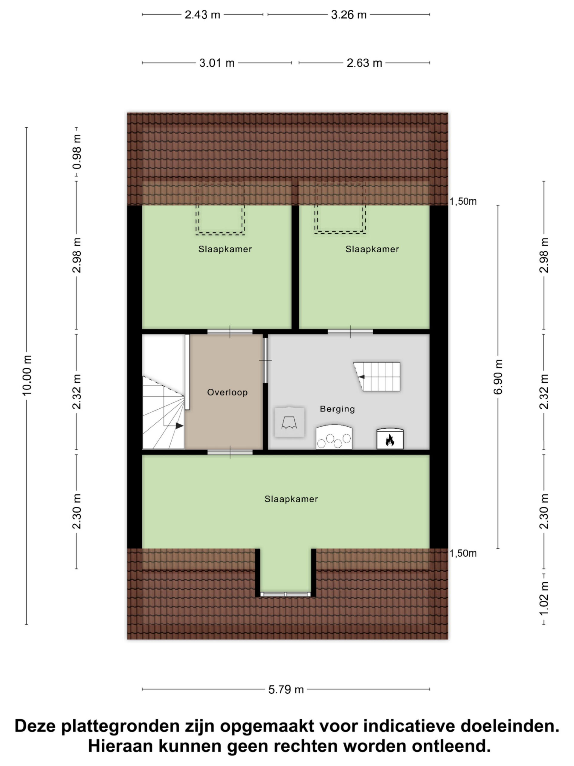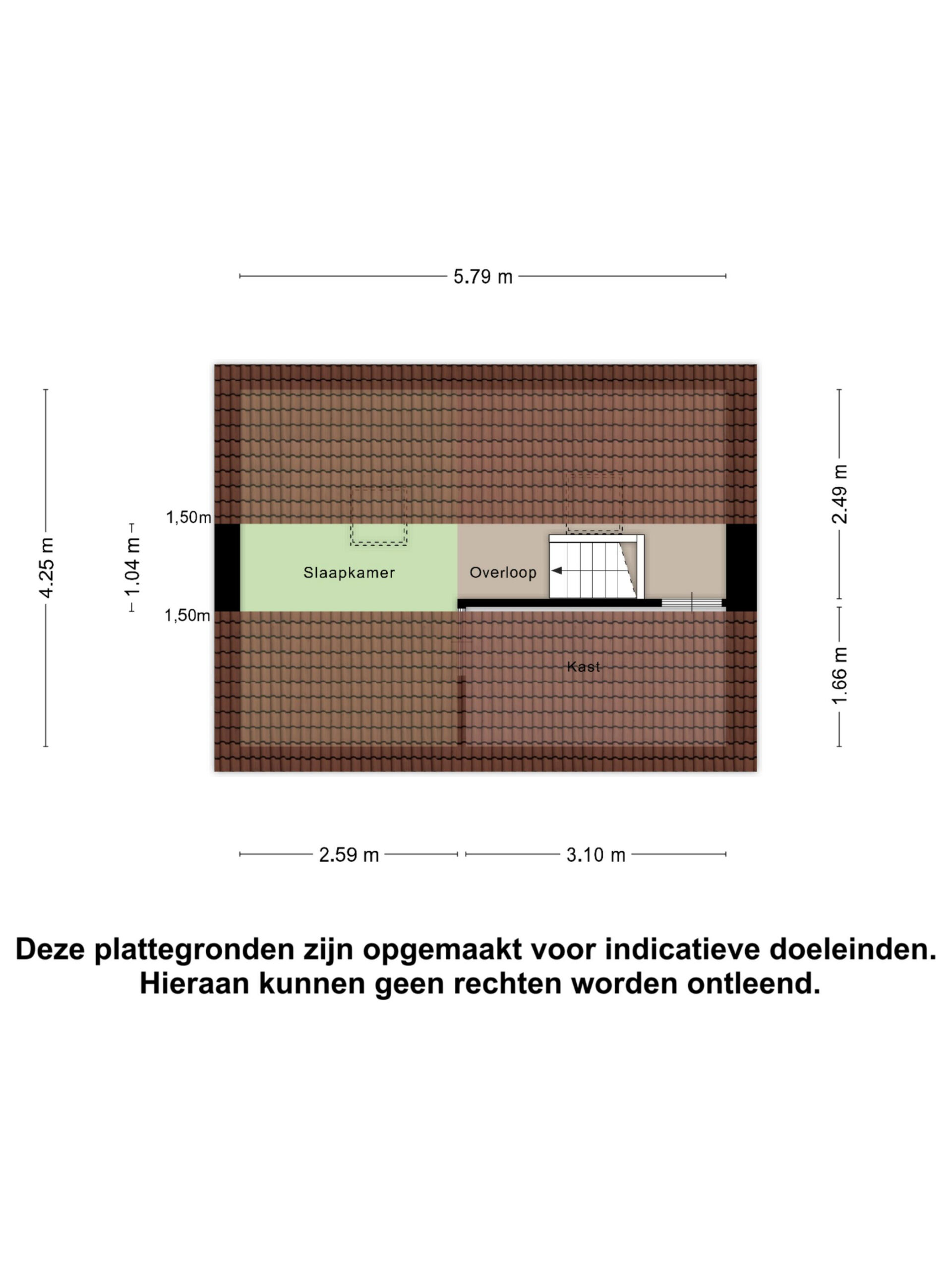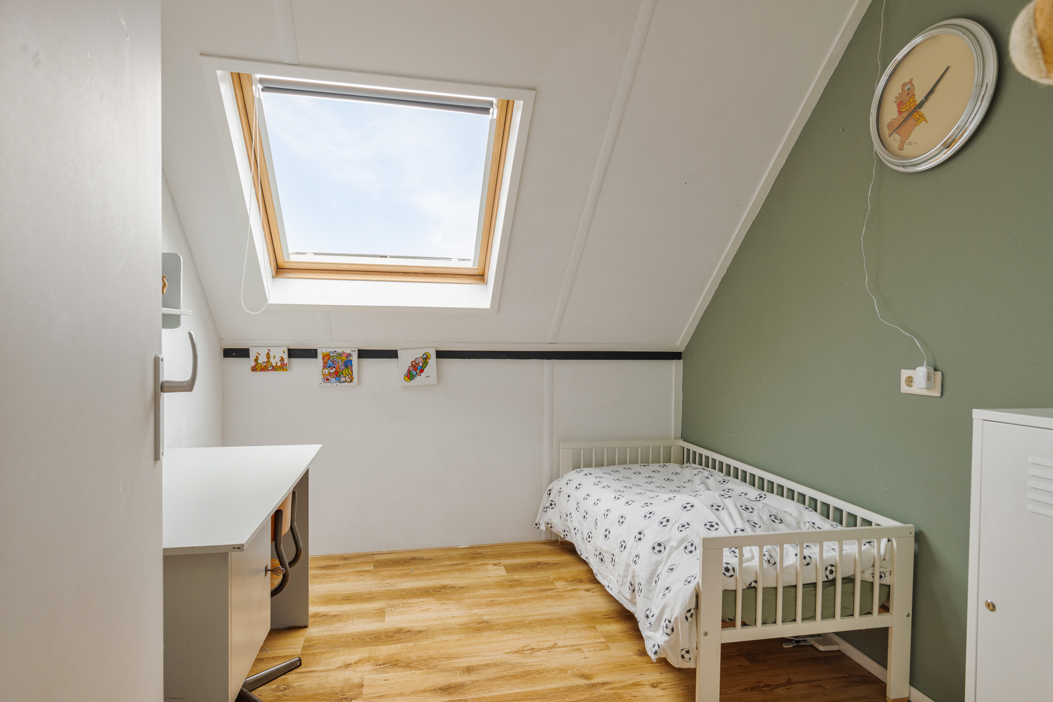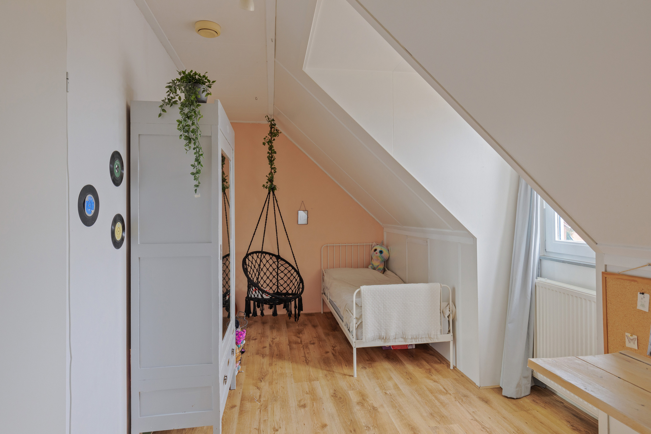 3e Verdieping: open zolderruimte met twee dakramen en vaste kast. Deze ruimte is op dit moment in gebruik als extra slaapkamer.