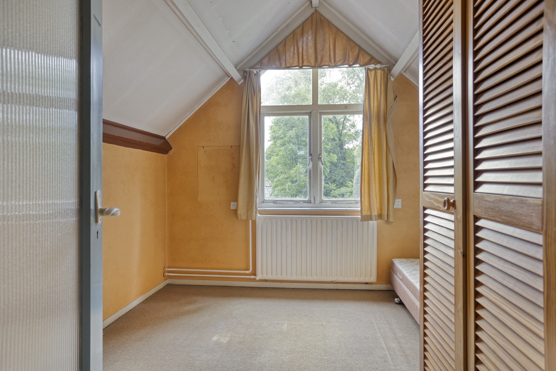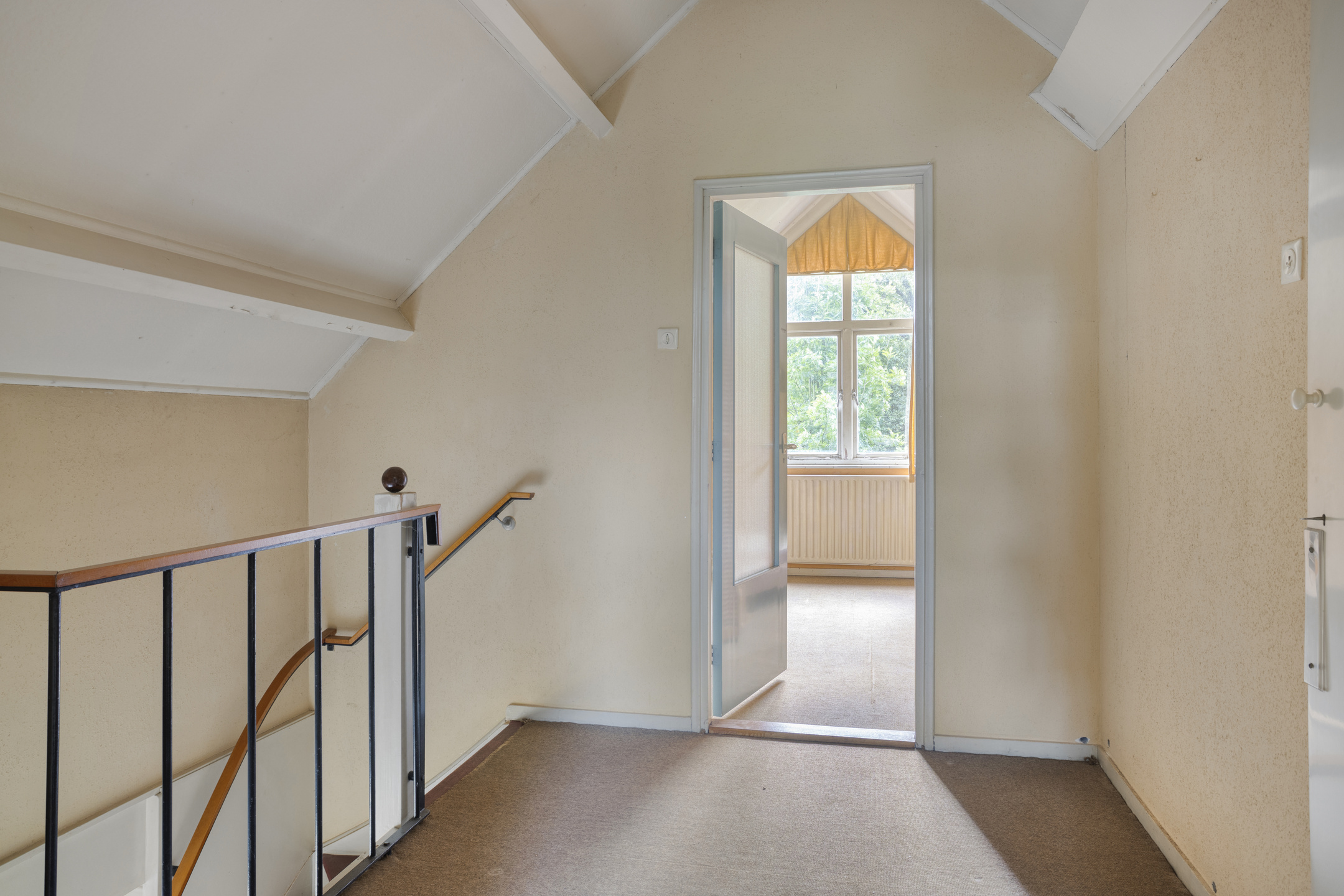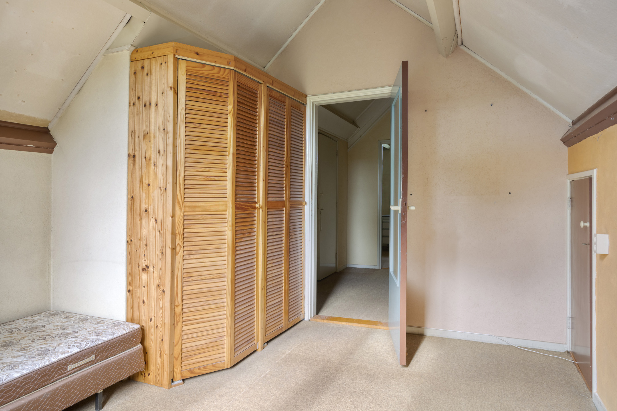 1e Verdieping: ruime overloop met berging. Twee slaapkamers ter grootte van circa 10 m² en 11 m², beide met bergruimte achter de knieschotten. De kamer aan de achterzijde beschikt tevens over een wastafel.