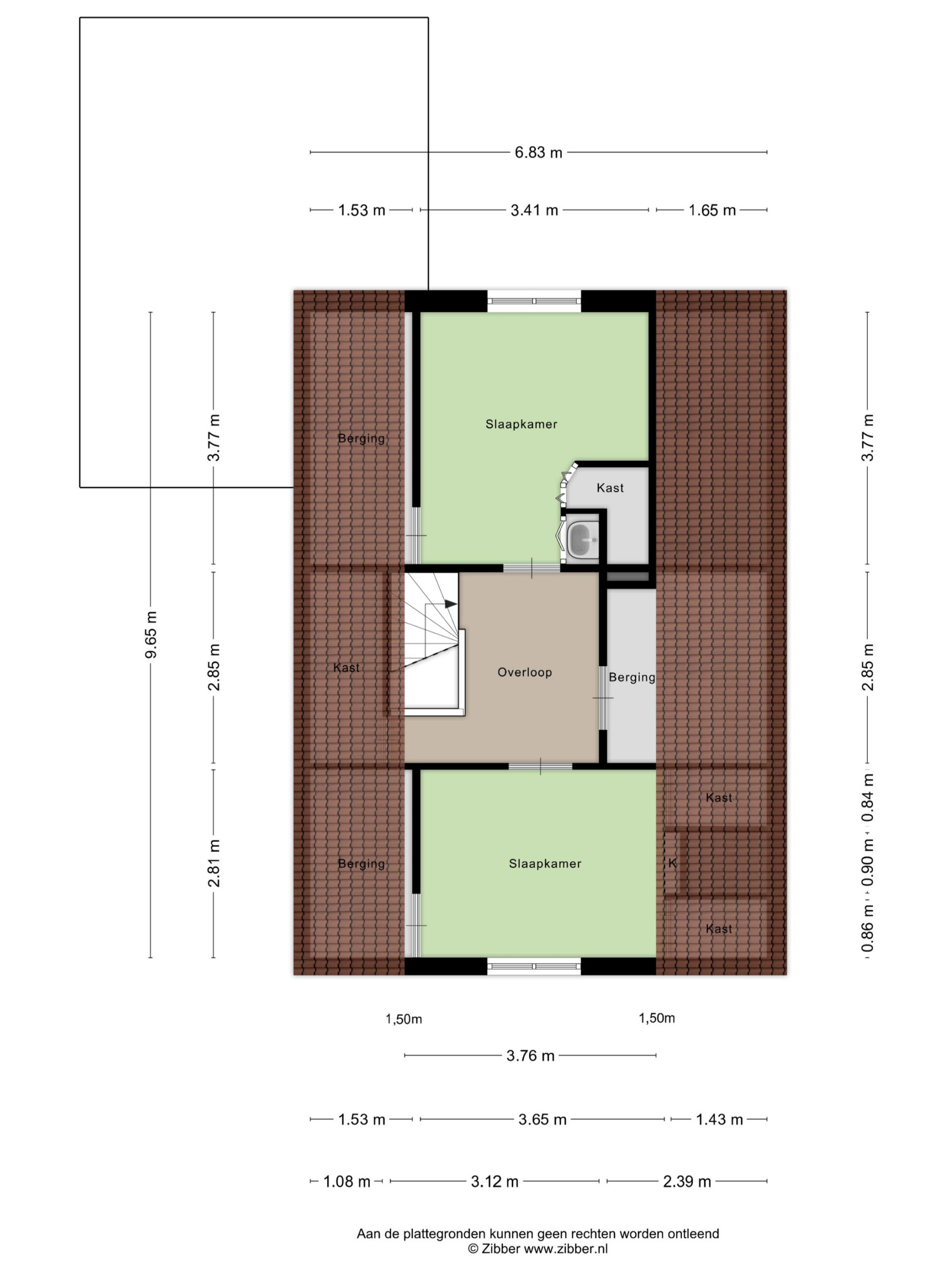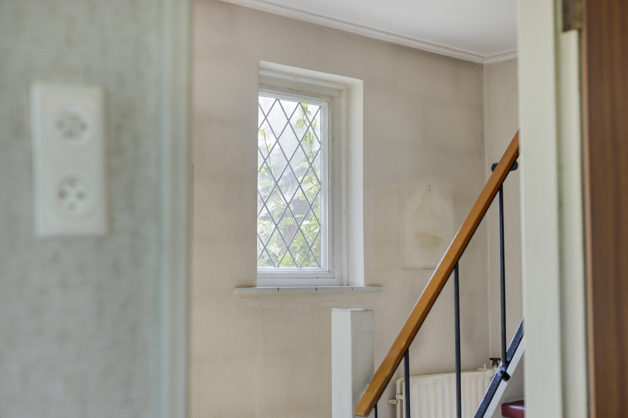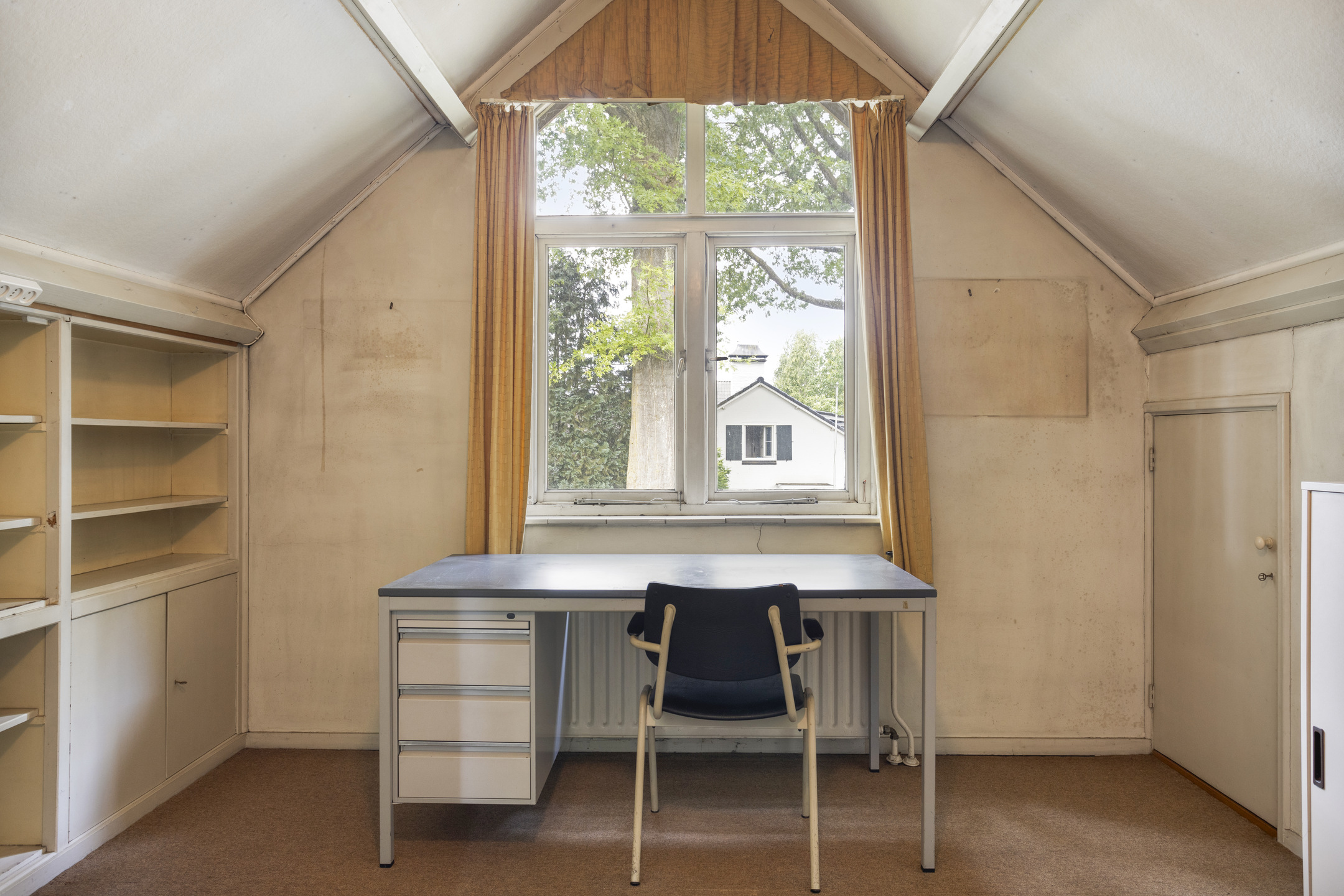 1e Verdieping: ruime overloop met berging. Twee slaapkamers ter grootte van circa 10 m² en 11 m², beide met bergruimte achter de knieschotten. De kamer aan de achterzijde beschikt tevens over een wastafel.