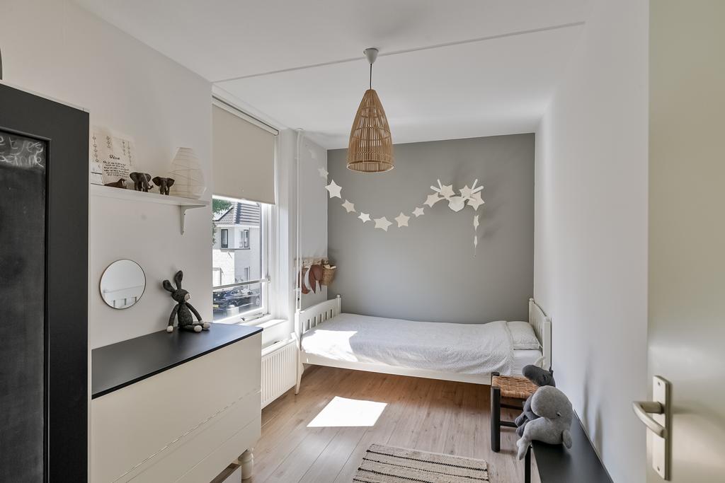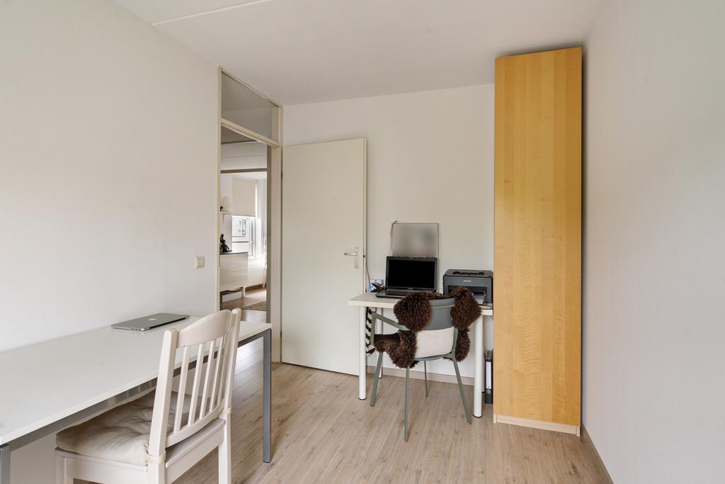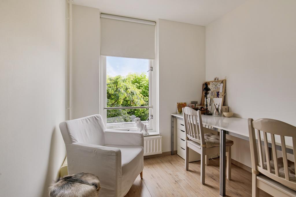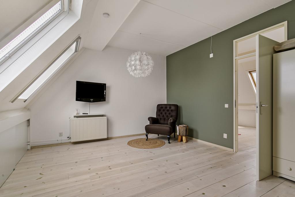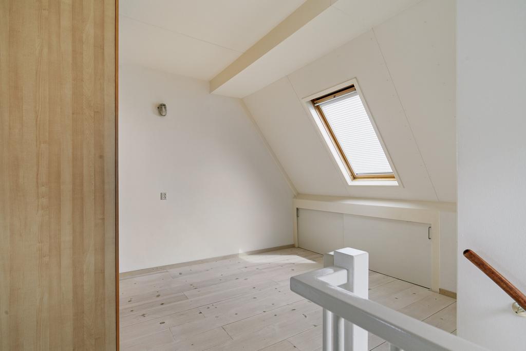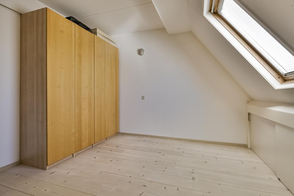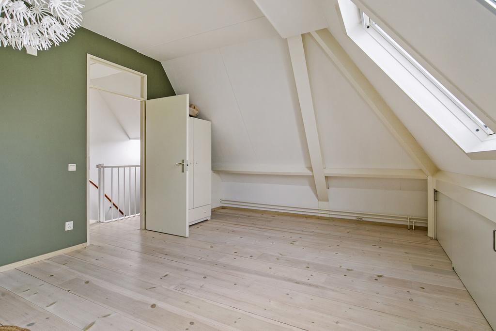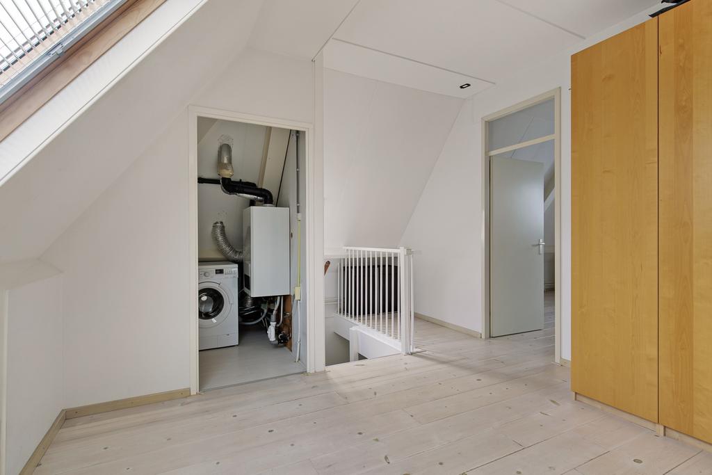 2e Verdieping met Amerikaans grenen vloer: ruime overloop/voorzolder met dakraam, bergruimte achter de knieschotten en aparte berging t.b.v. de cv-installatie en wasapparatuur. Vierde slaapkamer ter grootte van circa 16 m² met 2 dakramen.