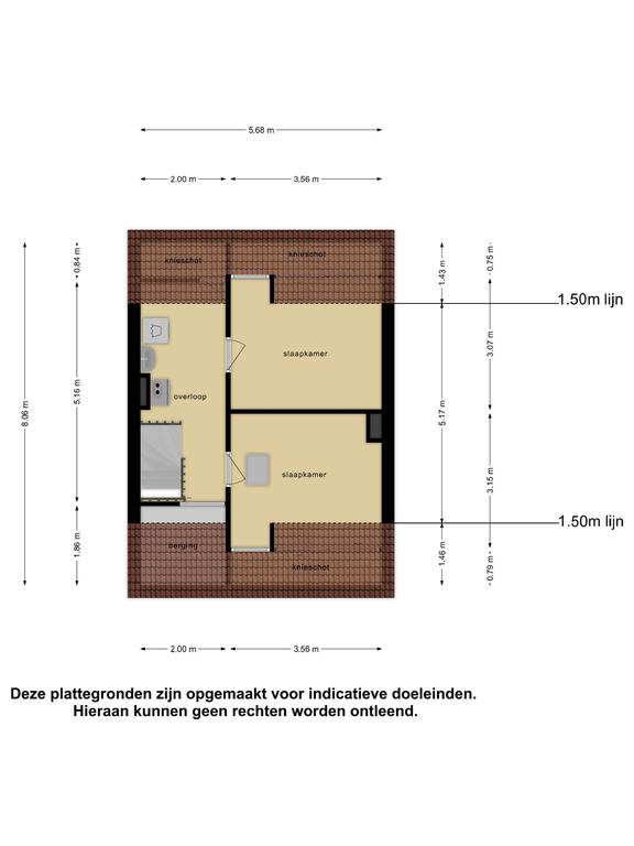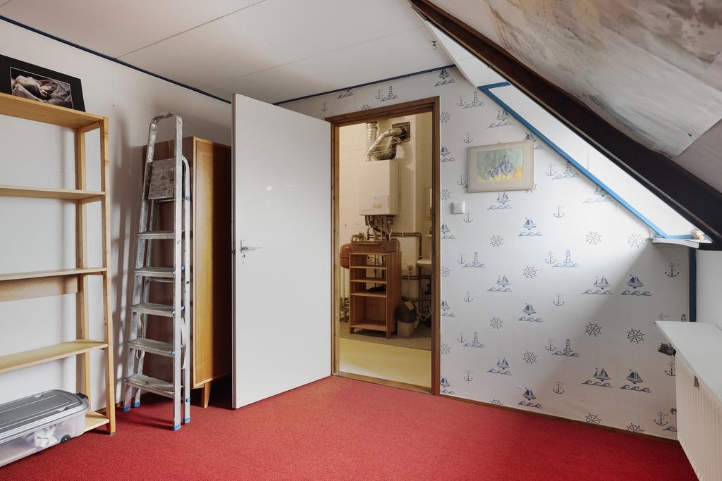 2e Verdieping: overloop/voorzolder met cv-opstelplaats, zonneboiler en wasmachine-aansluiting. Twee slaapkamers, beiden ter grootte van circa 9 m², voorzien van dakkapel.