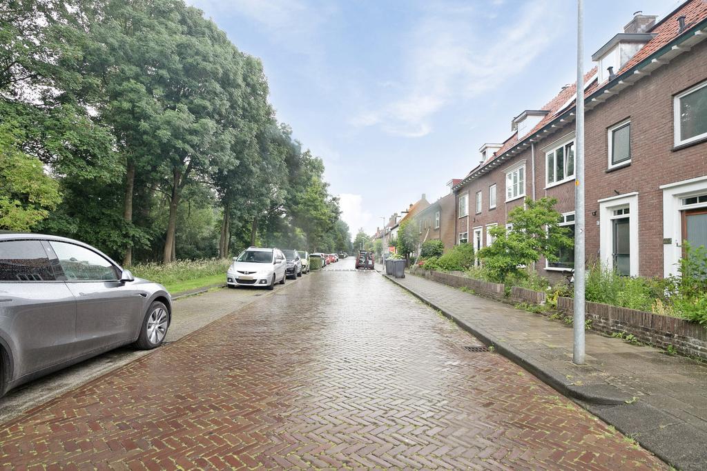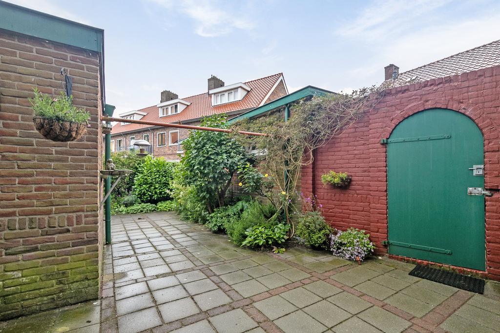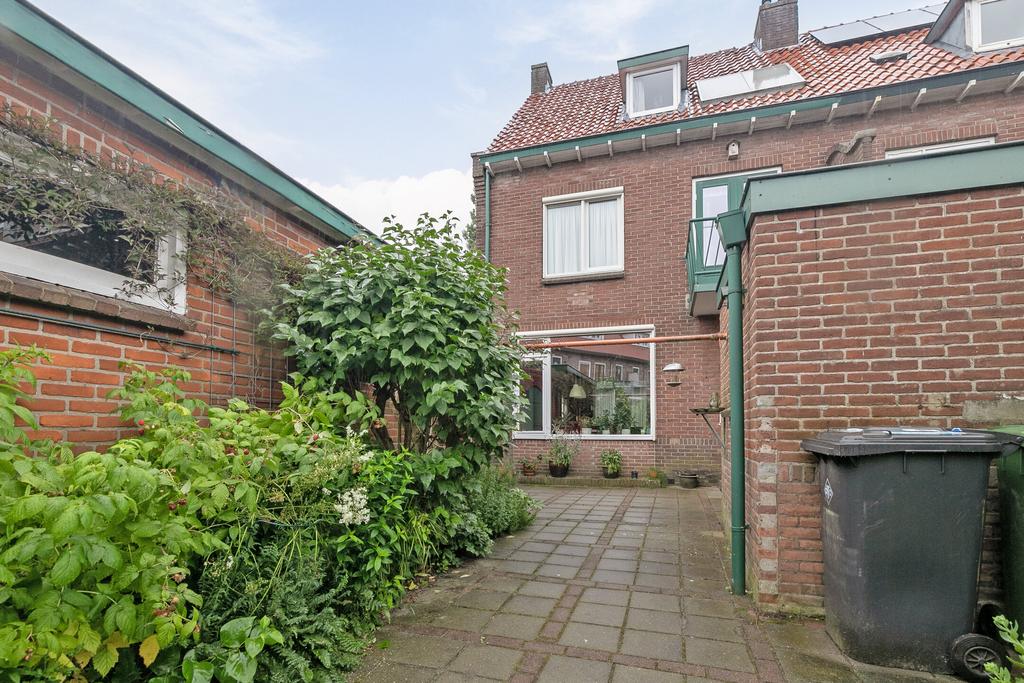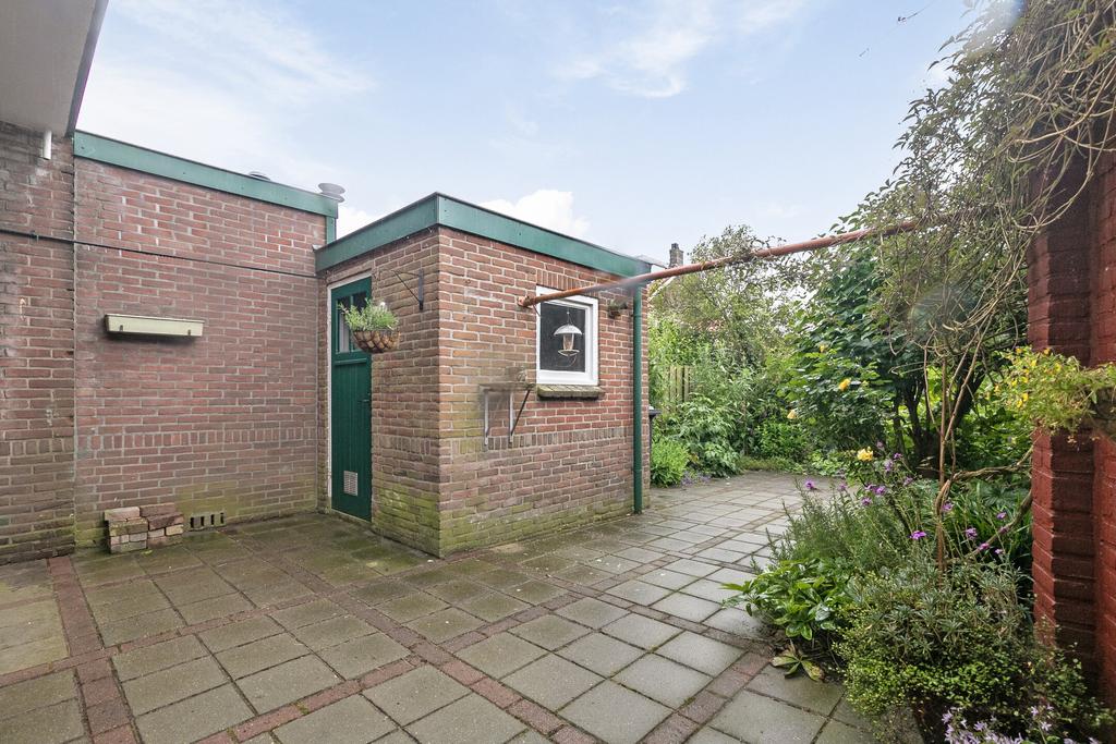 Via de oprit te bereiken achtertuin met bestrating, borders en stenen bergschuur. Ook beschikt de woning over een vrijstaande garage ter grootte van circa 21 m². Parkeren is tevens mogelijk in de straat op de openbare parkeervoorzieningen. Op de openbare weg, tegenover de woning, is een laadpaal aanwezig.