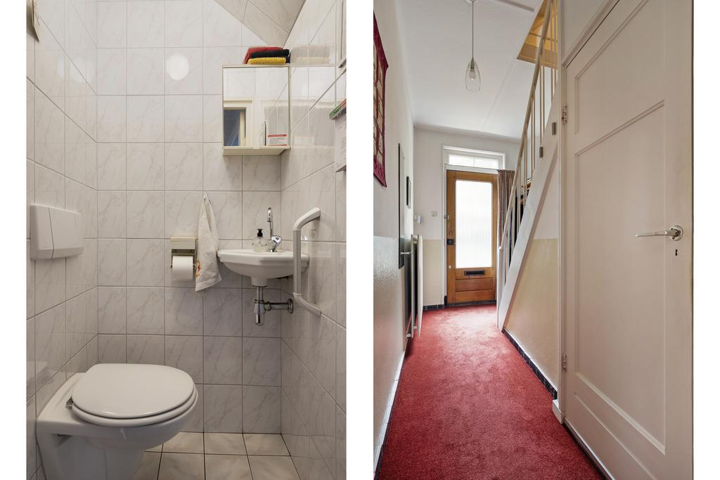 Begane grond: entree, hal met trapopgang naar de 1e verdieping en toilet voorzien van wandcloset en fonteintje. Ruime doorzonwoonkamer ter grootte van circa 29 m², voorzien van parketvloer. Dichte keuken met tuindeur, voorzien van inductiekookplaat, afzuigkap, combi-oven, koelkast en vaatwasser.